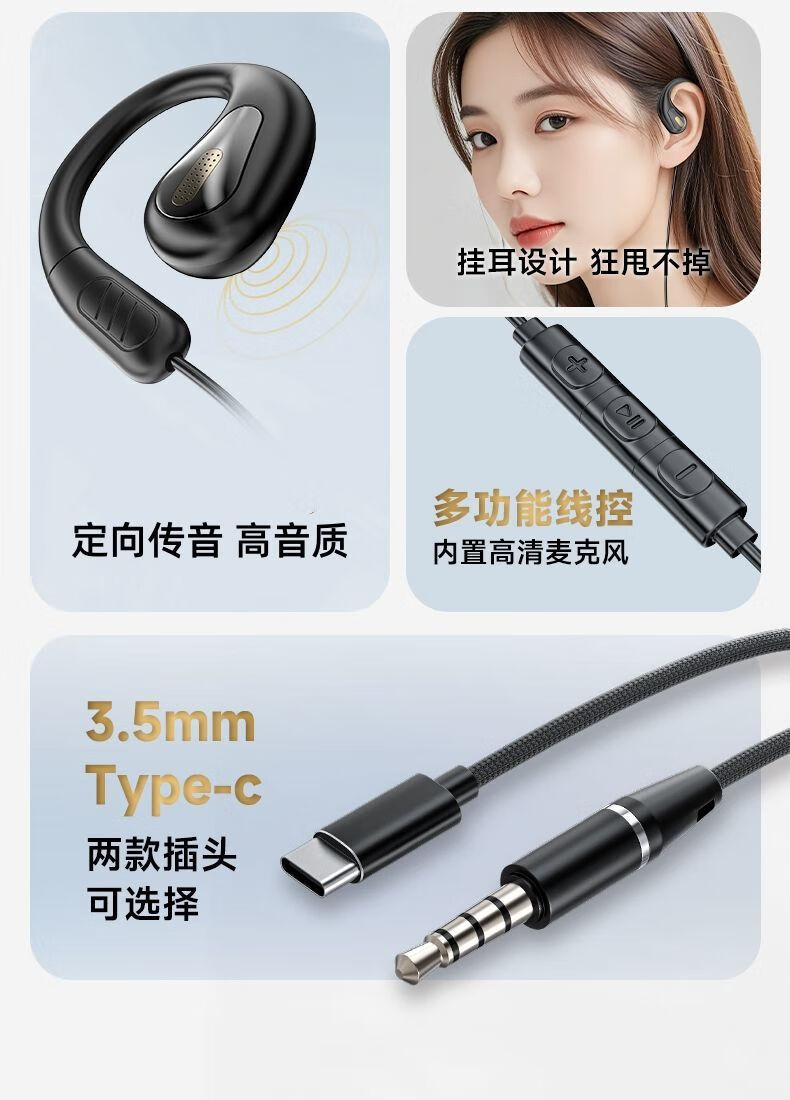 科沃(KOVOL)【2025最新款】电脑有线耳机挂耳式骨传导概念不入耳运动跑步头戴式USB电脑手机笔记本3.5mm耳麦肤