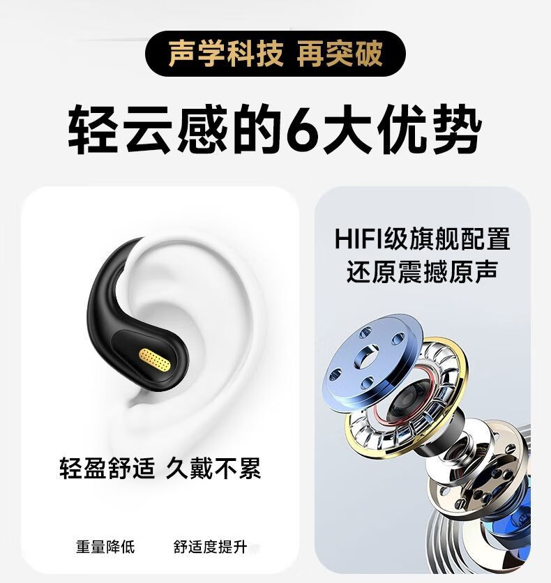 山水(SANSUI)【久戴也舒适】W90蓝牙耳机不入耳开放式骨传导概念无线耳夹式夹耳运动适用于华为小米苹果白