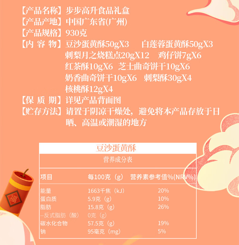 广州酒家 步步高升食品礼盒930g 广式老字号饼酥糕点曲奇饼干团购福利送礼