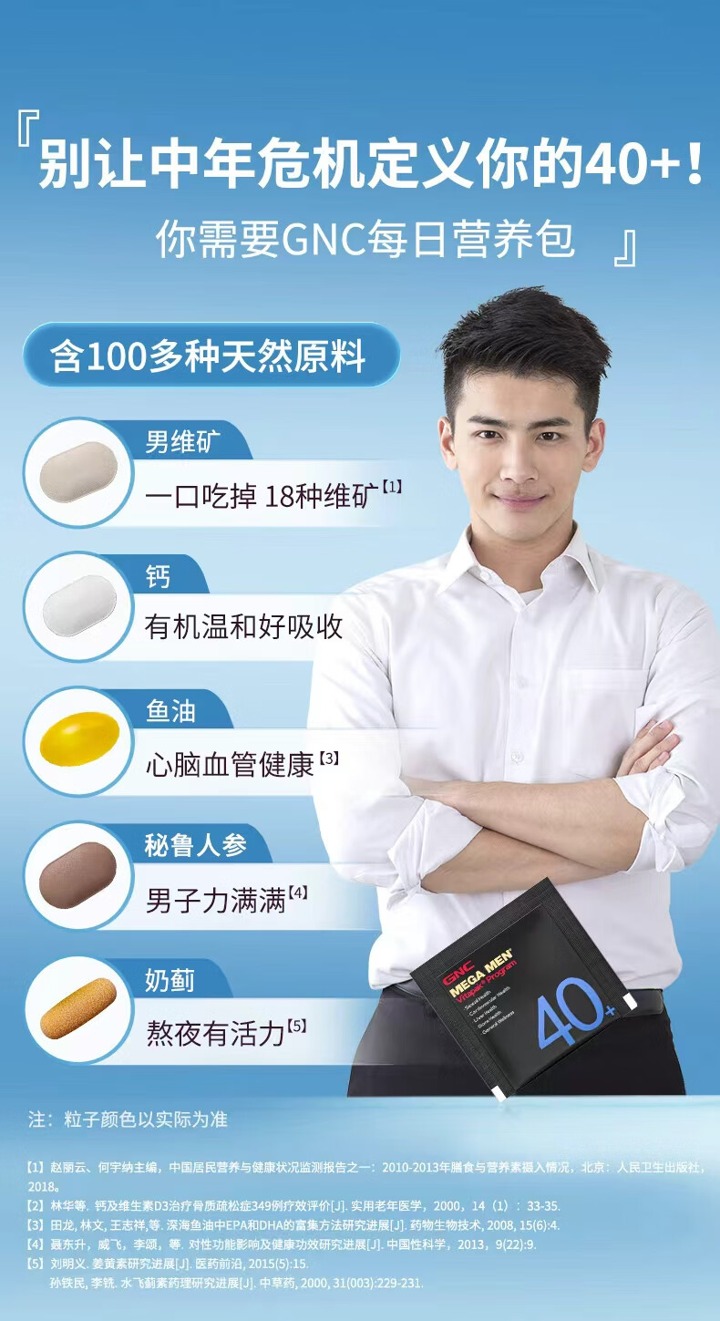 GNC健安喜男士营养包40+复合维生素b族鱼油奶蓟vc维生素d保健品30包
