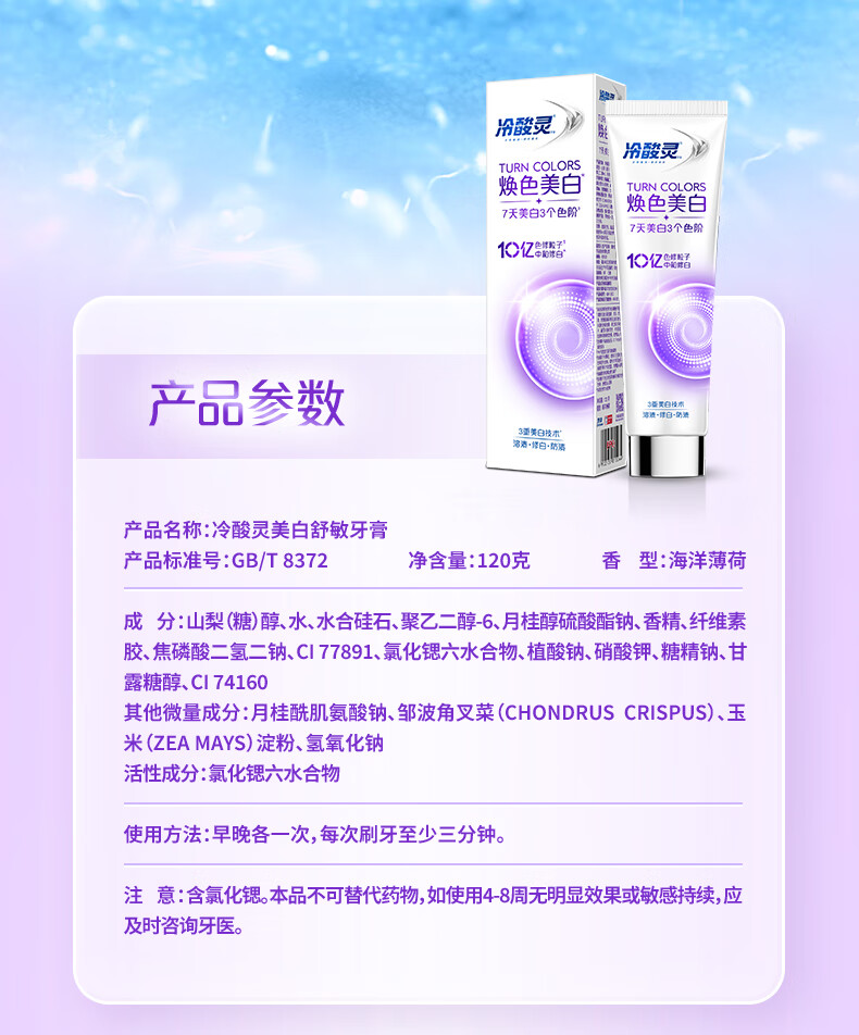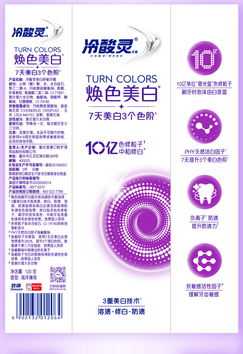 冷酸灵色修焕色美白舒敏牙膏120g 防牙渍抗敏感 清新口气 【送家政卡】