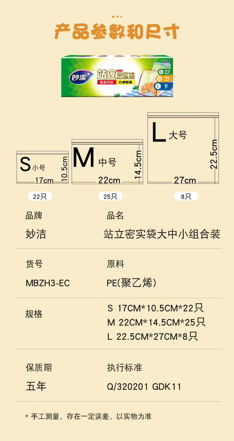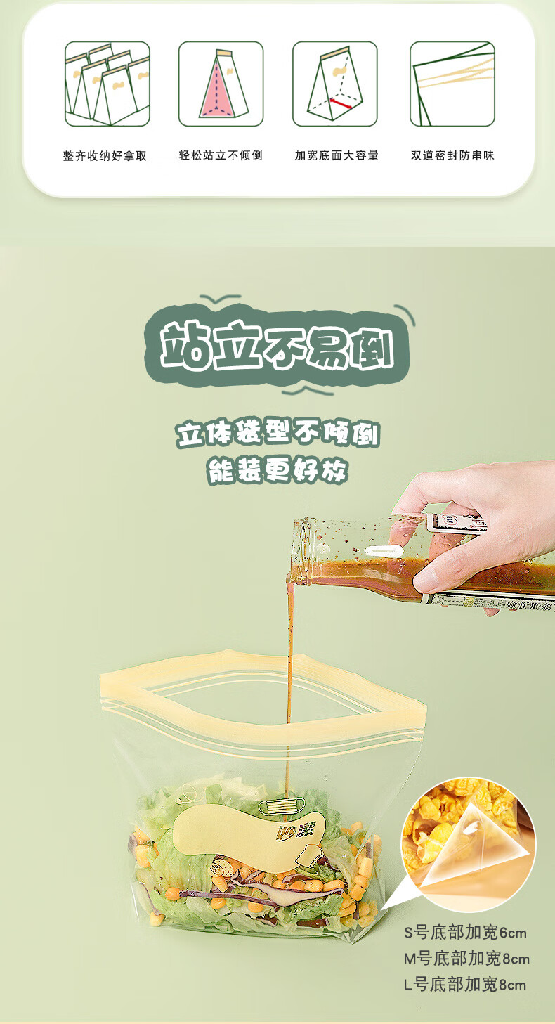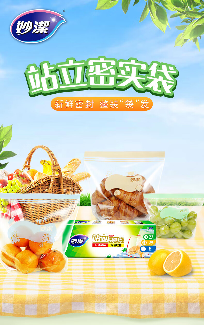 妙洁 站立密封袋 大中小组合共55只 盒装冰箱适用自封袋
