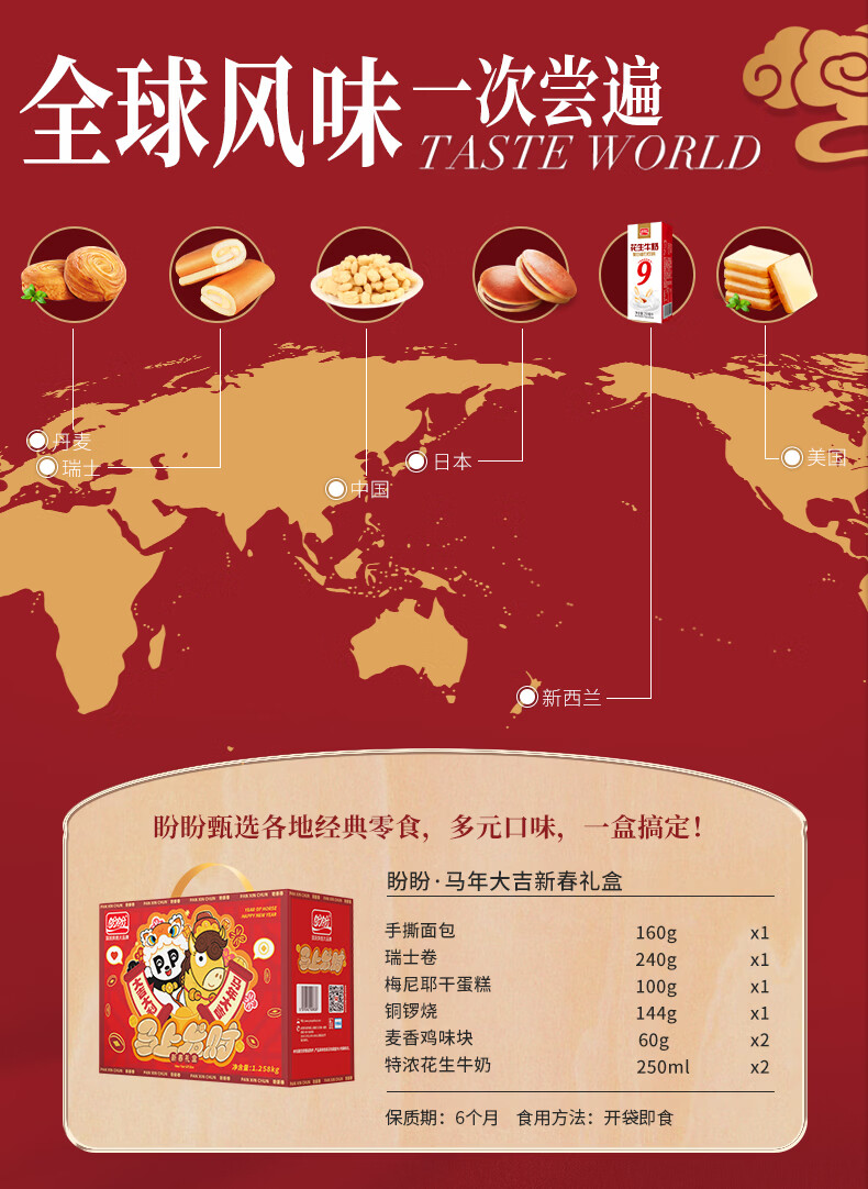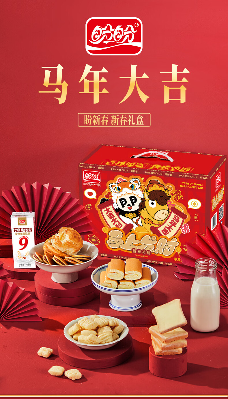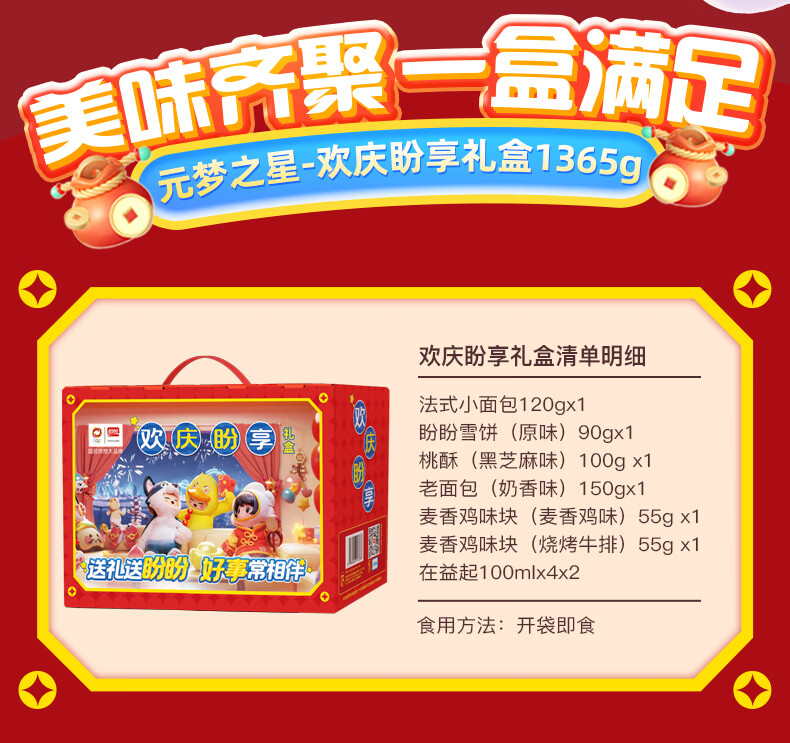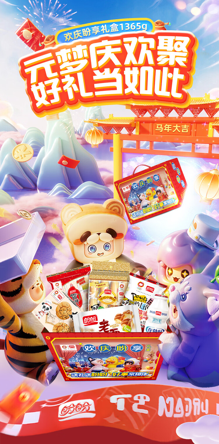 盼盼年货节马年礼盒 休闲零食糕点组合整箱新年送礼礼盒走亲访友礼物 欢庆盼享礼盒1365g【元梦之星联名】