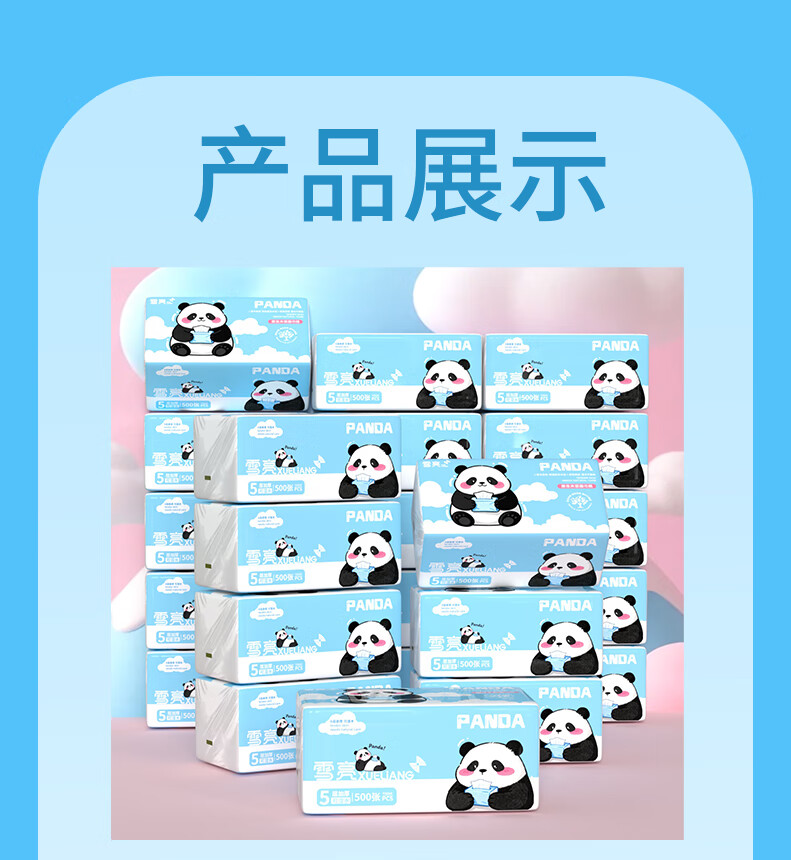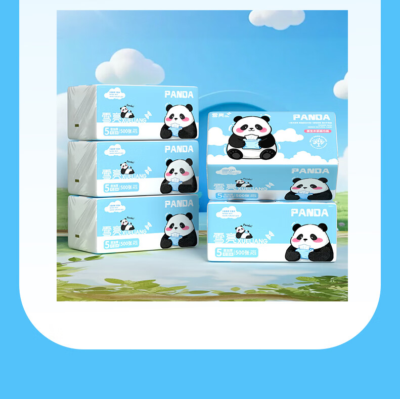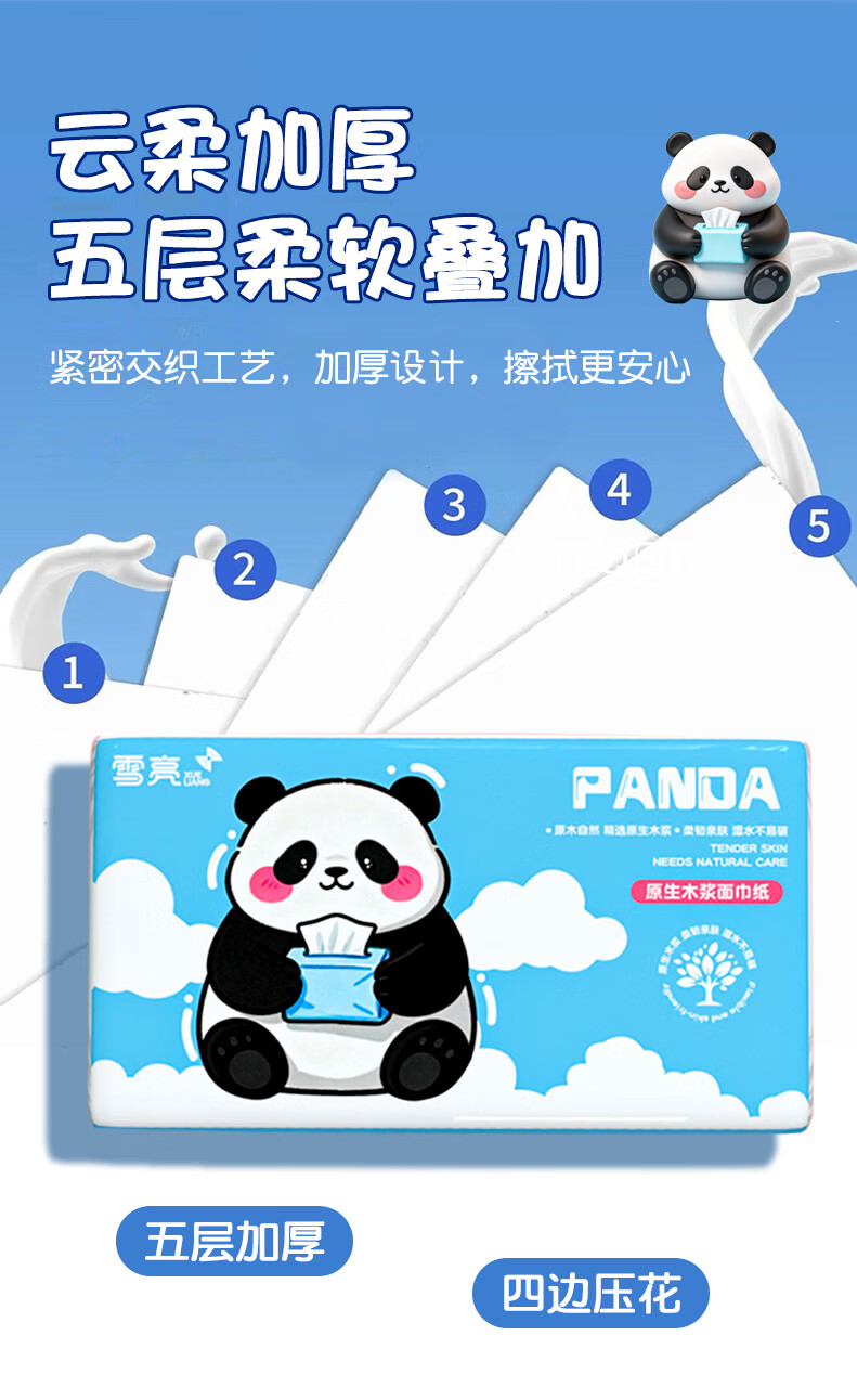 雪亮500张大包抽纸优等品5层加厚纸巾大尺寸面巾纸餐巾纸可湿水卫生纸 5层 500张*6包