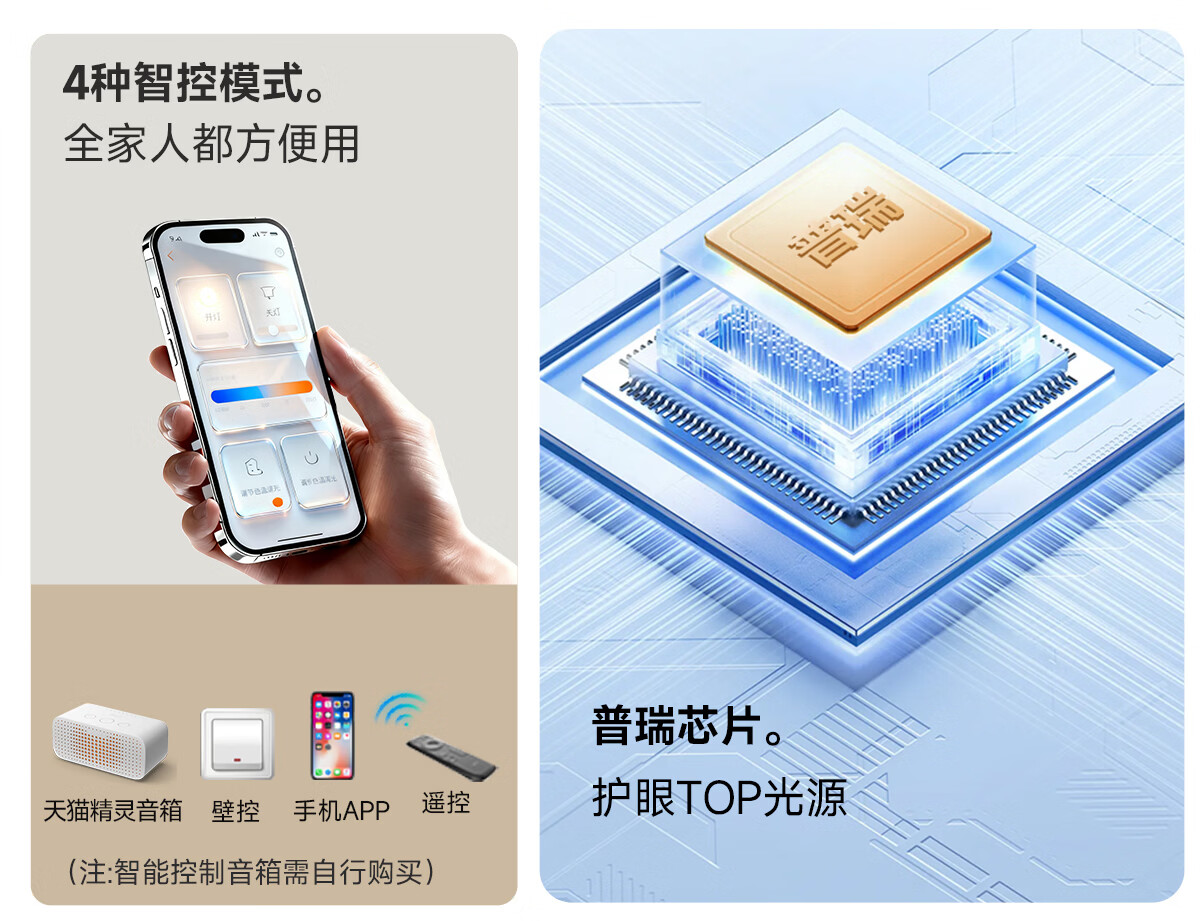 欧普照明(OPPLE)客厅灯主灯大灯高显色吸顶灯现代简约卧室一体灯具套餐APP智控 B2智控调光【2室2厅-4灯】