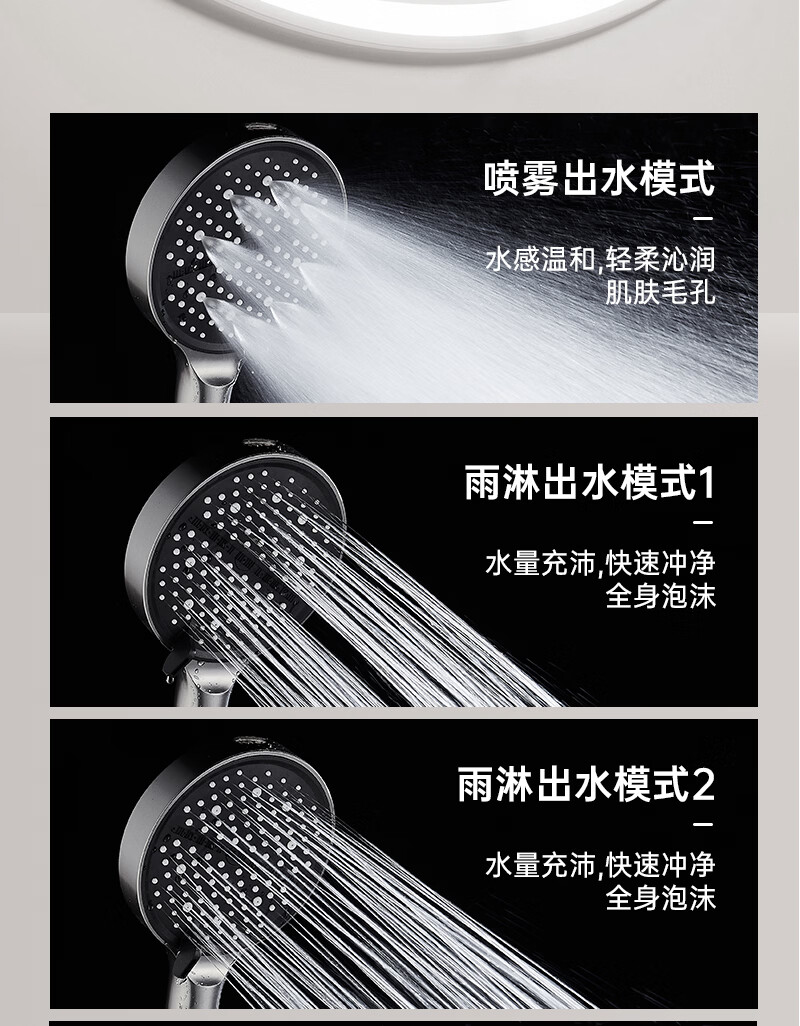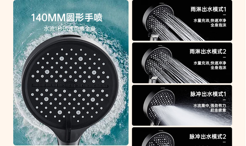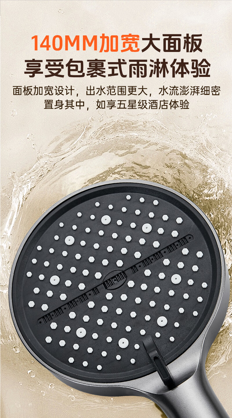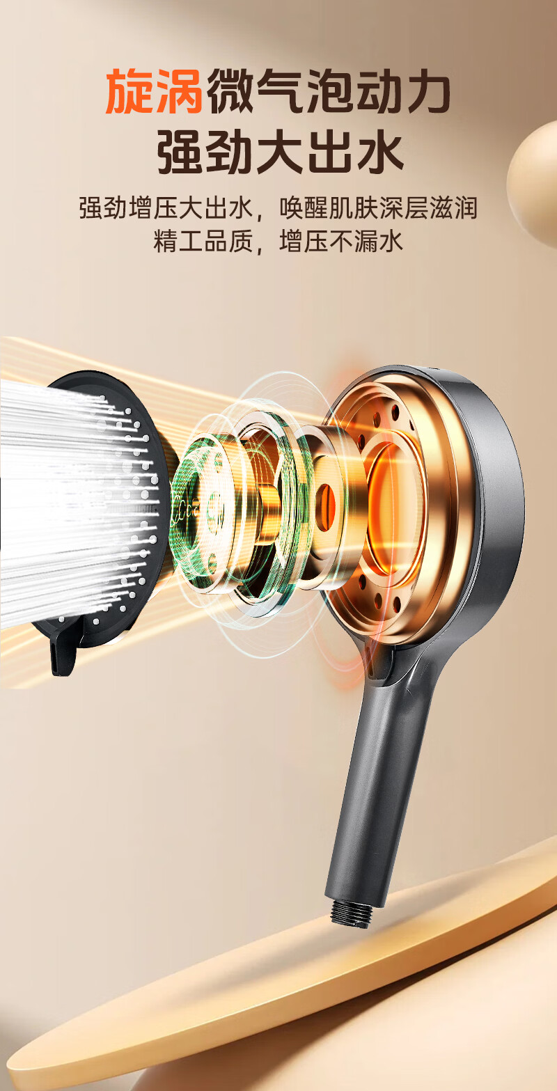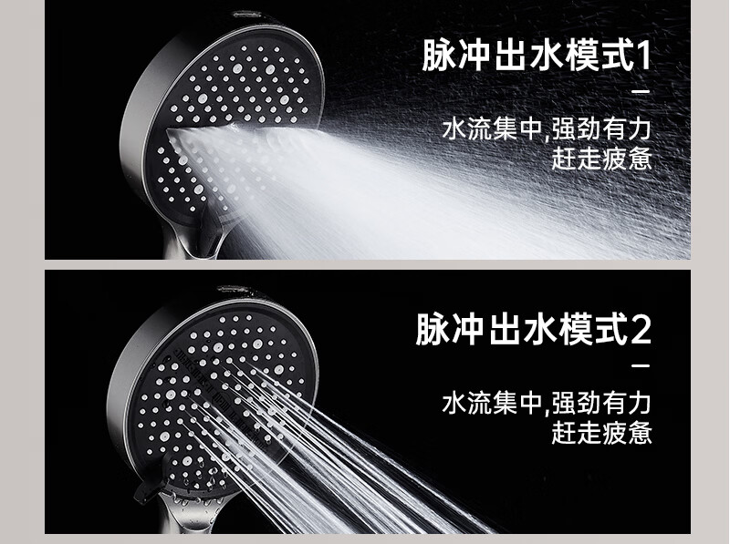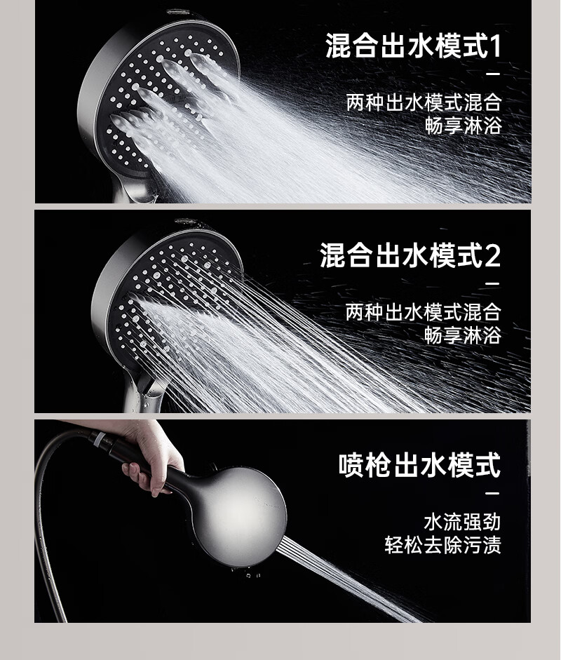 科倍洁超强增压花洒喷头家用淋浴头浴室热水器洗澡加压喷淋头莲蓬头套装 【典雅黑】增压加强版8档调+1.5米防爆软管