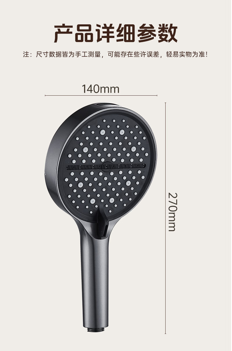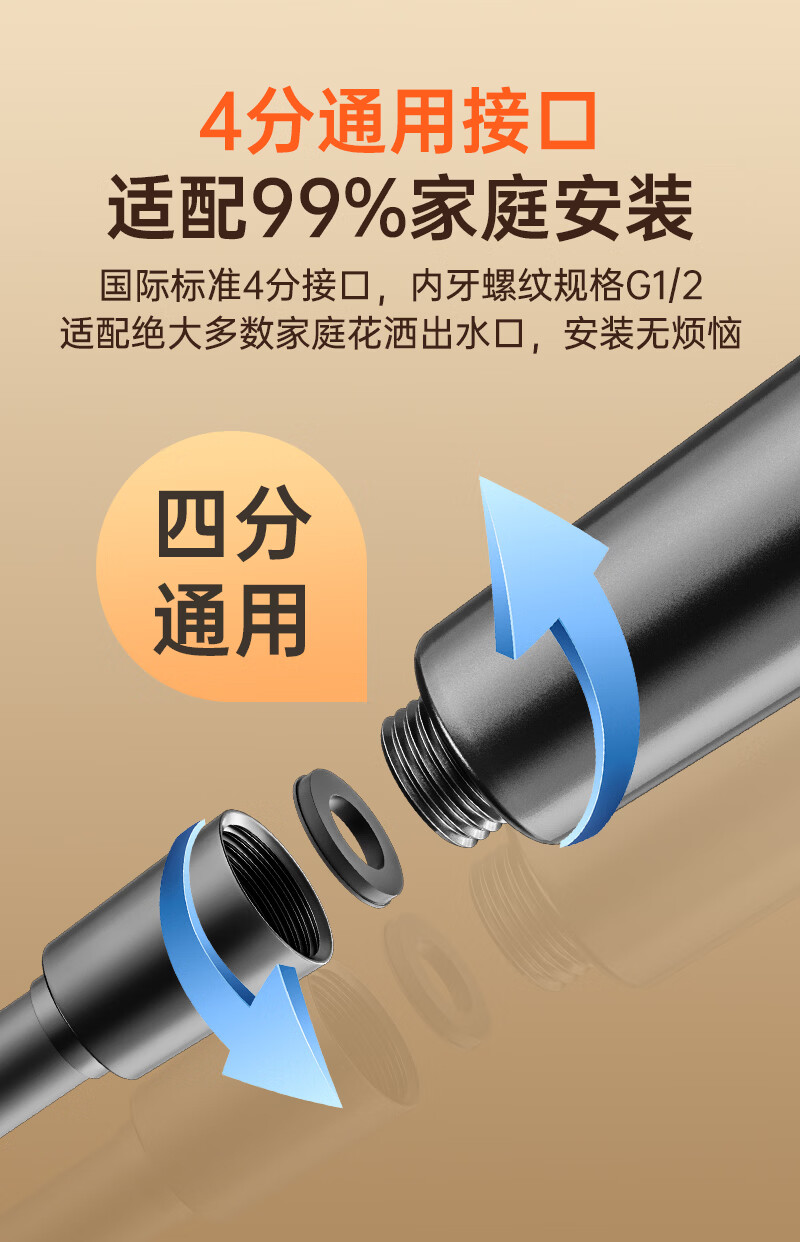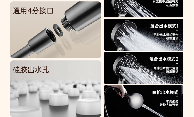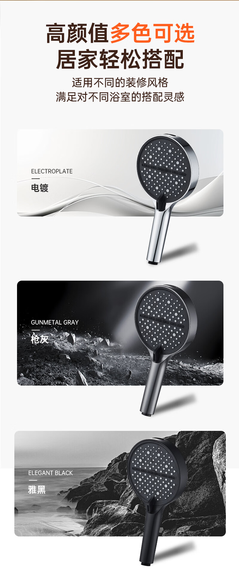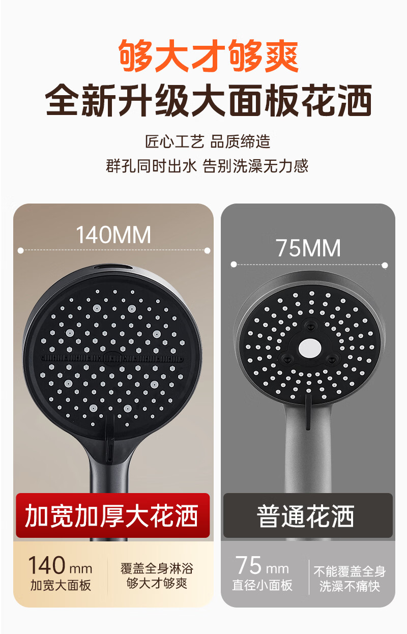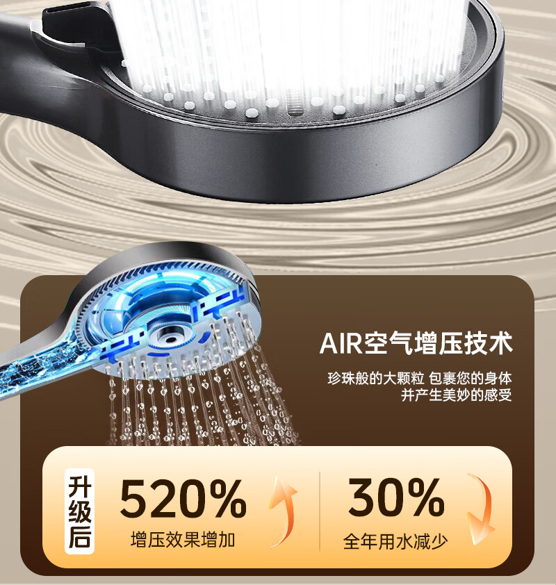 科倍洁超强增压花洒喷头家用淋浴头浴室热水器洗澡加压喷淋头莲蓬头套装 【典雅黑】增压加强版8档调+1.5米防爆软管