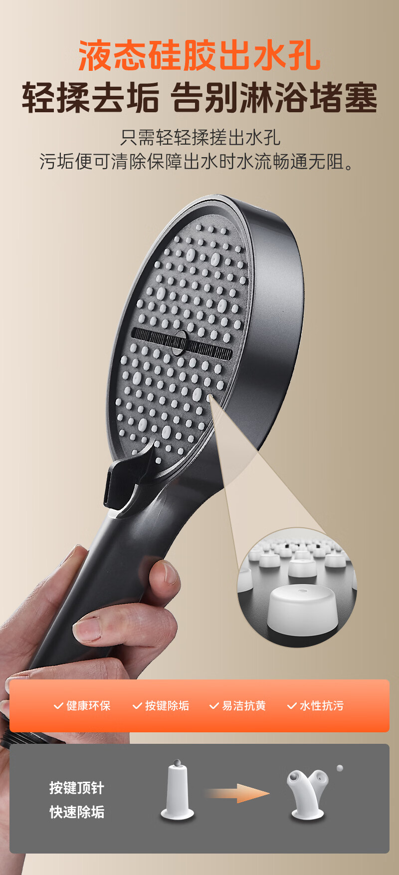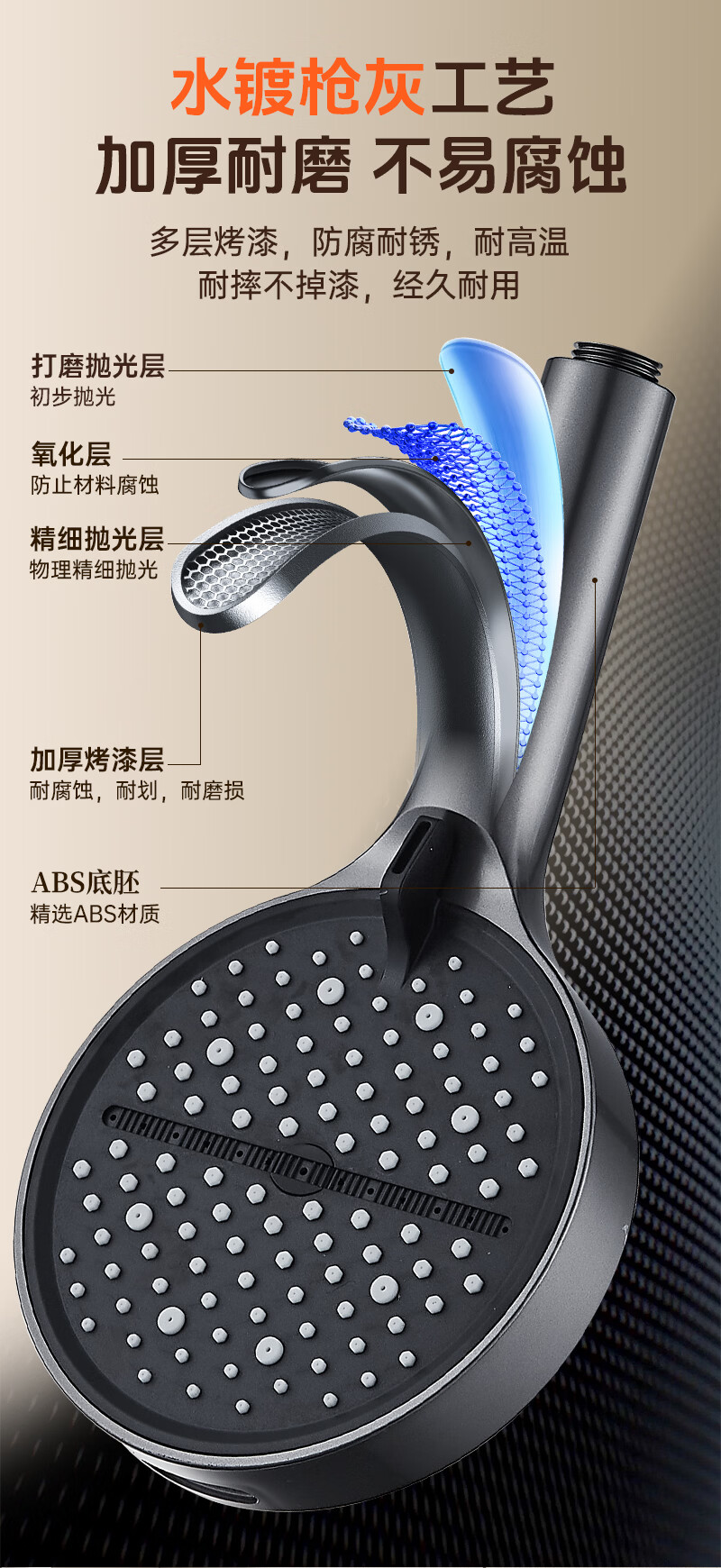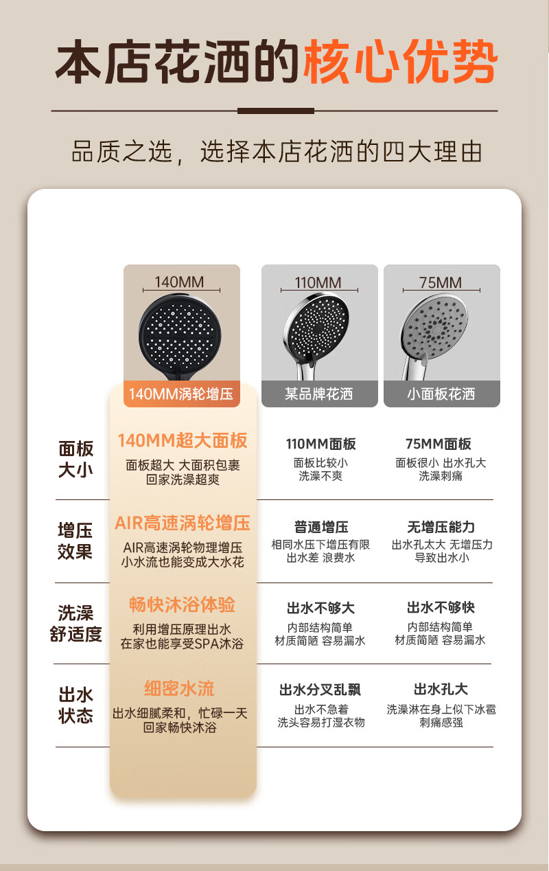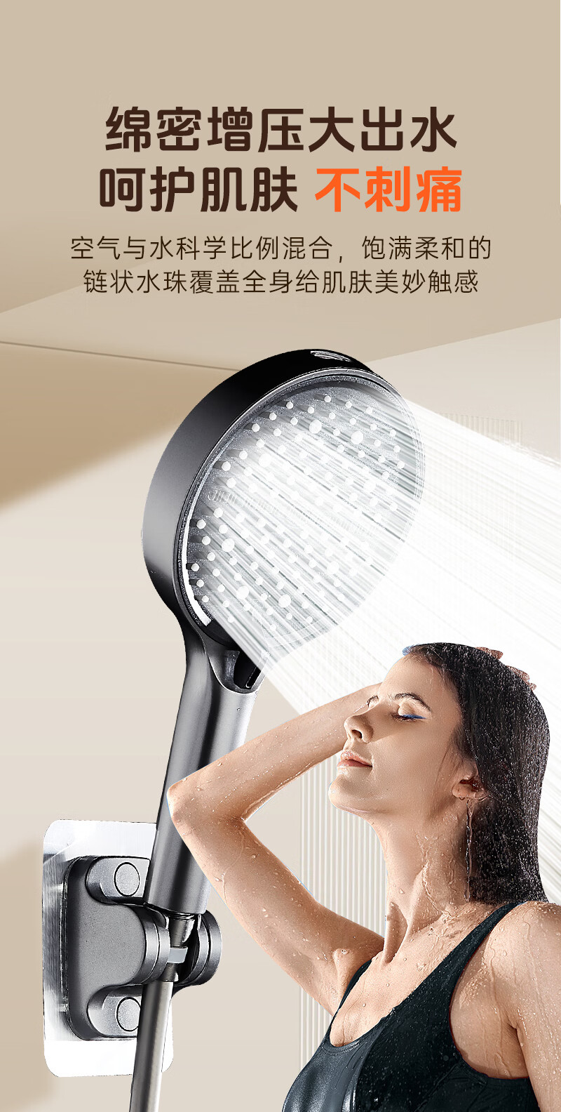 科倍洁超强增压花洒喷头家用淋浴头浴室热水器洗澡加压喷淋头莲蓬头套装 【典雅黑】增压加强版8档调+1.5米防爆软管
