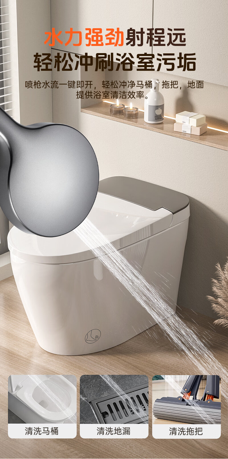 家文化(JIAWENHUA)老人坐式恒温淋浴器卫生间浴室淋浴椅多功能壁挂式淋浴凳花洒扶手 等腰梯形淋浴器月光白(分体双淋浴臂+手持)
