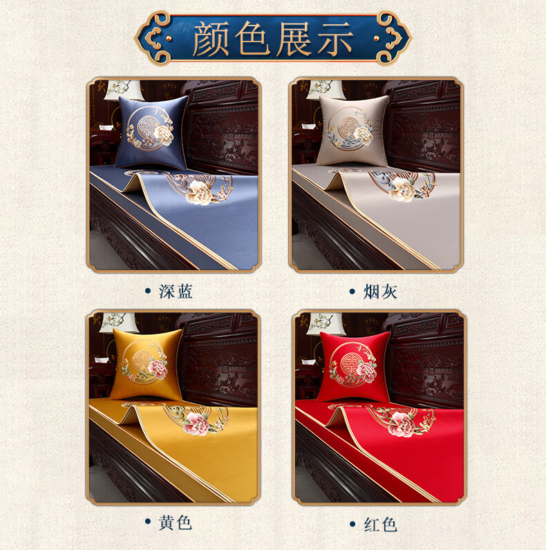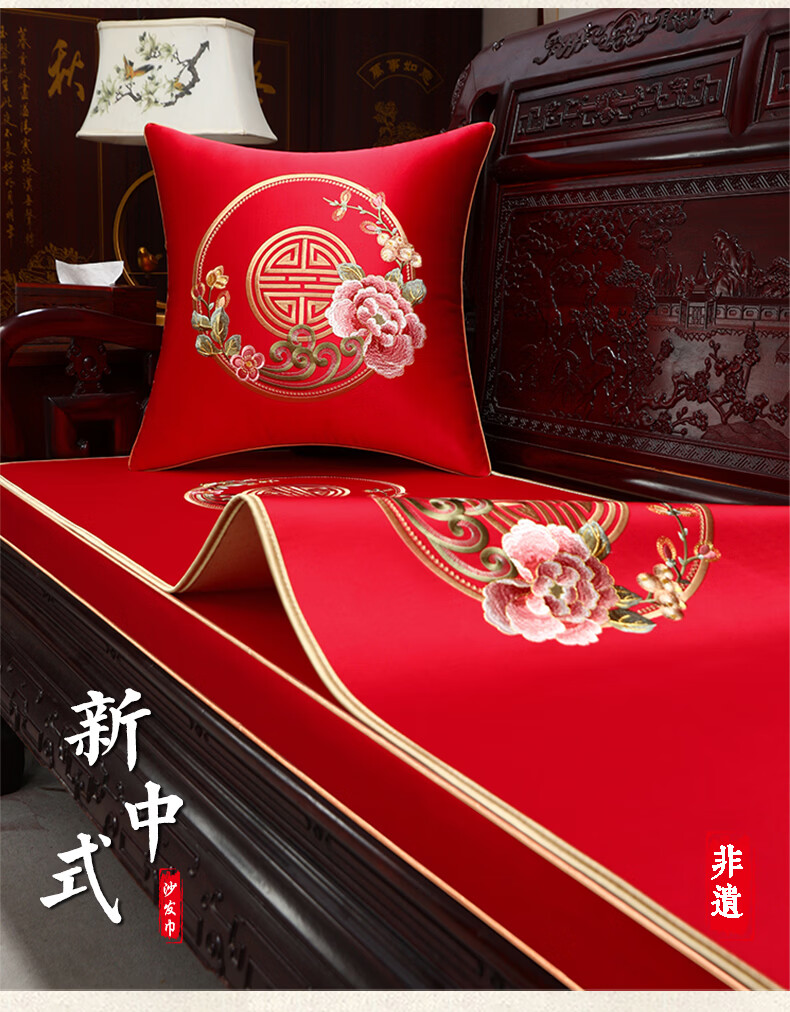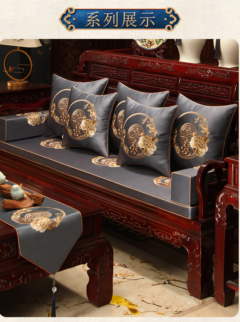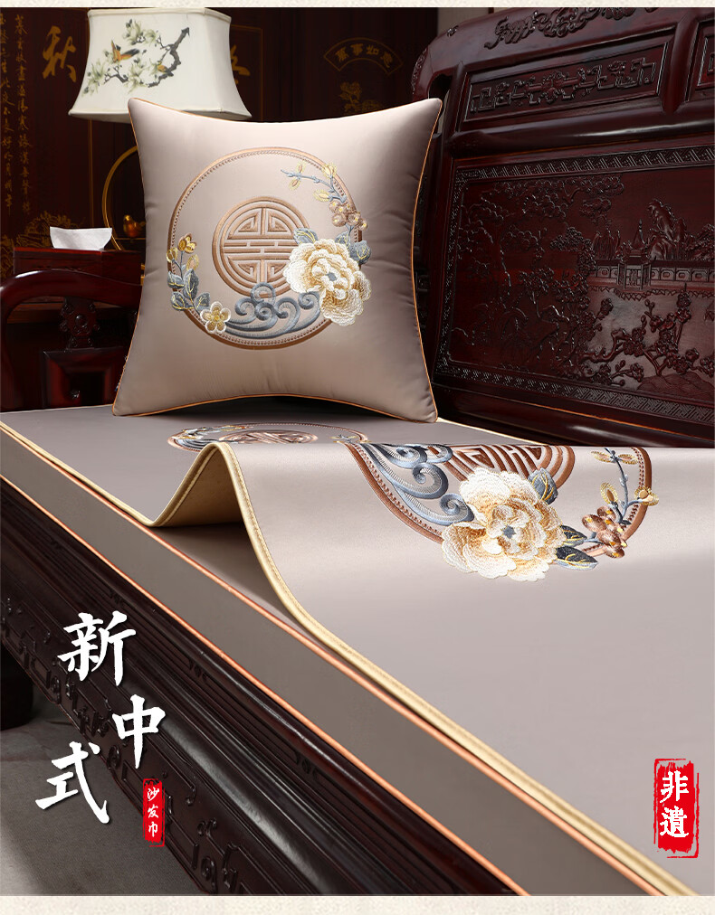大唐梦单人沙发盖布中式红木沙发垫子四季通用沙发巾高档罗汉床座垫定制 花想容 高精密 深蓝【刺绣/防水/防滑】 60cm*60cm【单人坐垫/靠背巾/扶手巾】不含芯