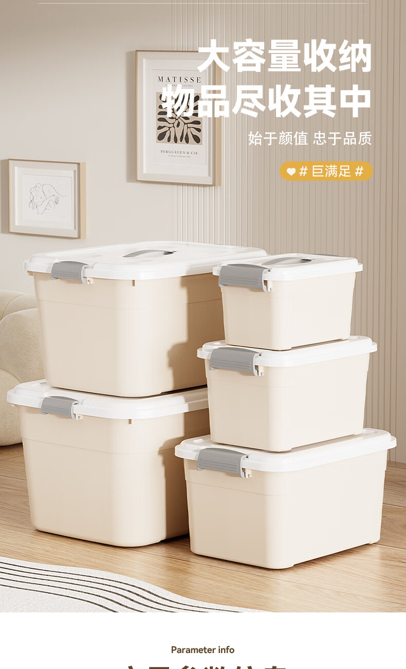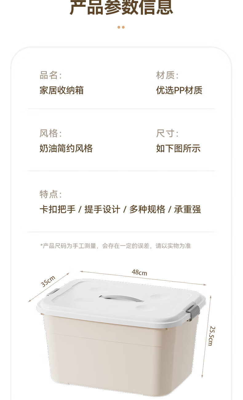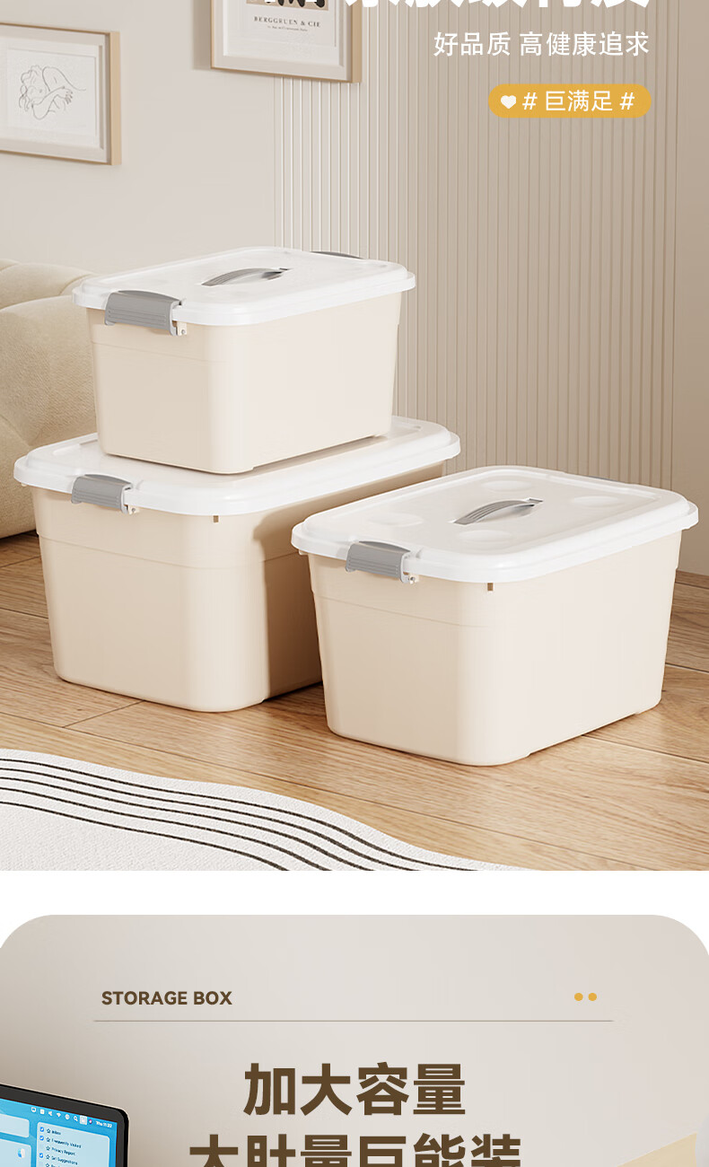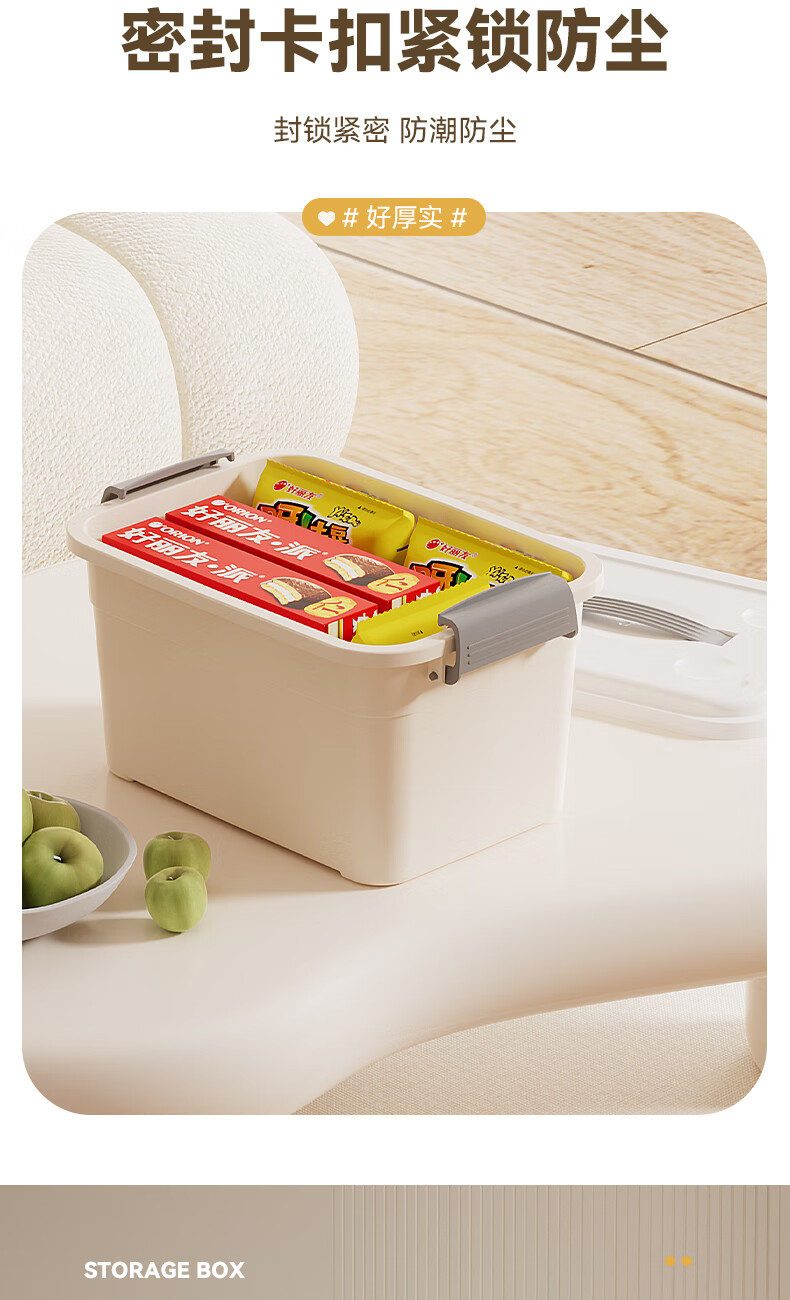 京东物流 桌面长方形收纳筐厨房杂物家用收纳盒塑料玩具零食整理 奶油色特大号 34*24*12.5cm