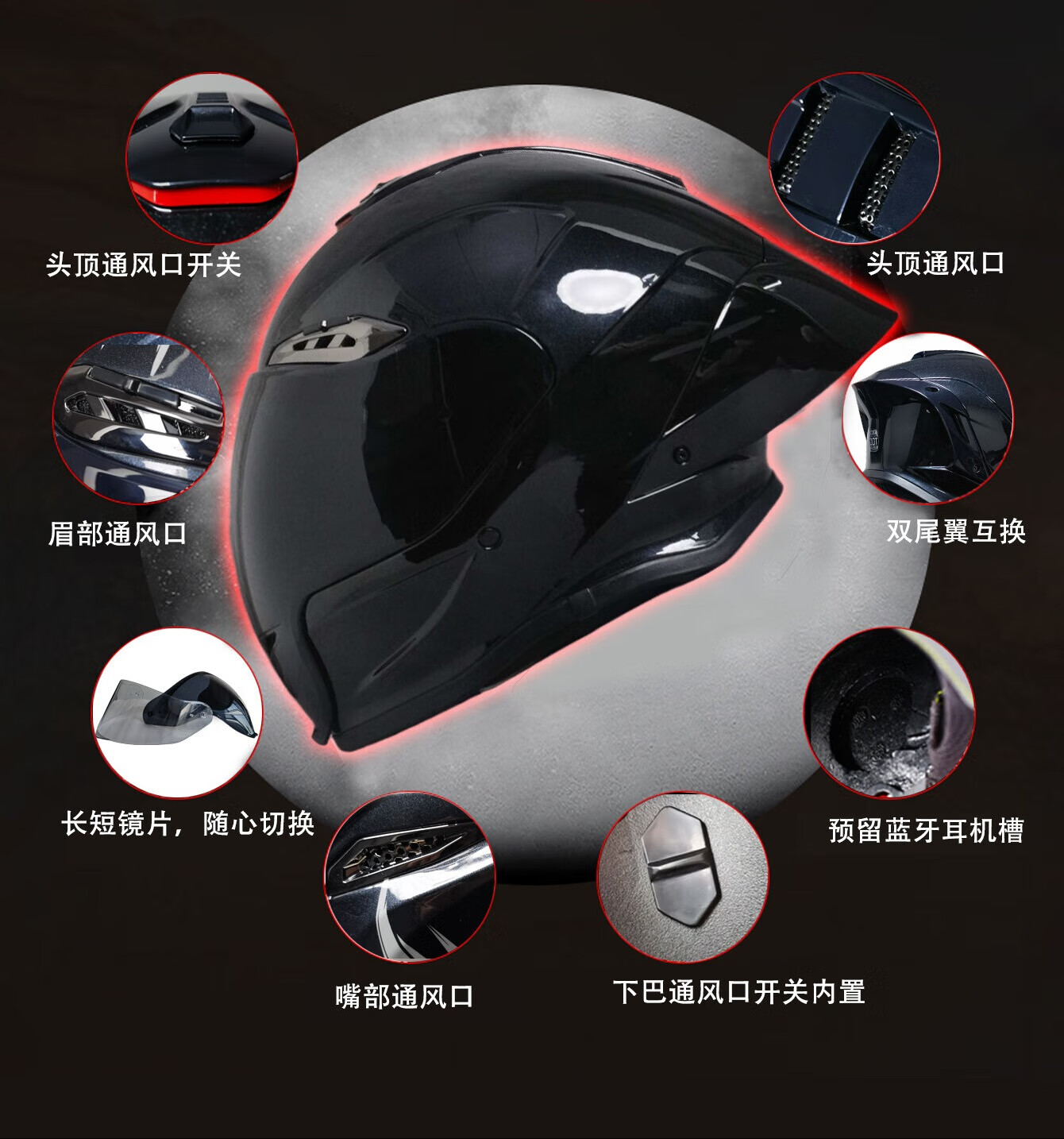 NBTK全盔大码大头围后大尾翼赛盔r50仿赛街车巡航摩托车春秋3CDOT头盔 特大星空黑+透明短镜片+黑茶长镜 4XL(66-68CM)
