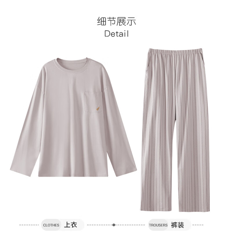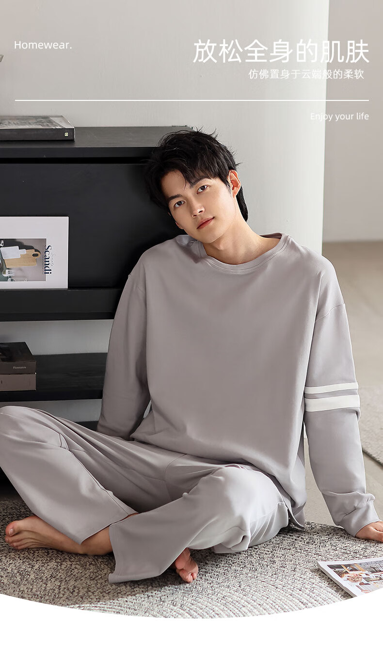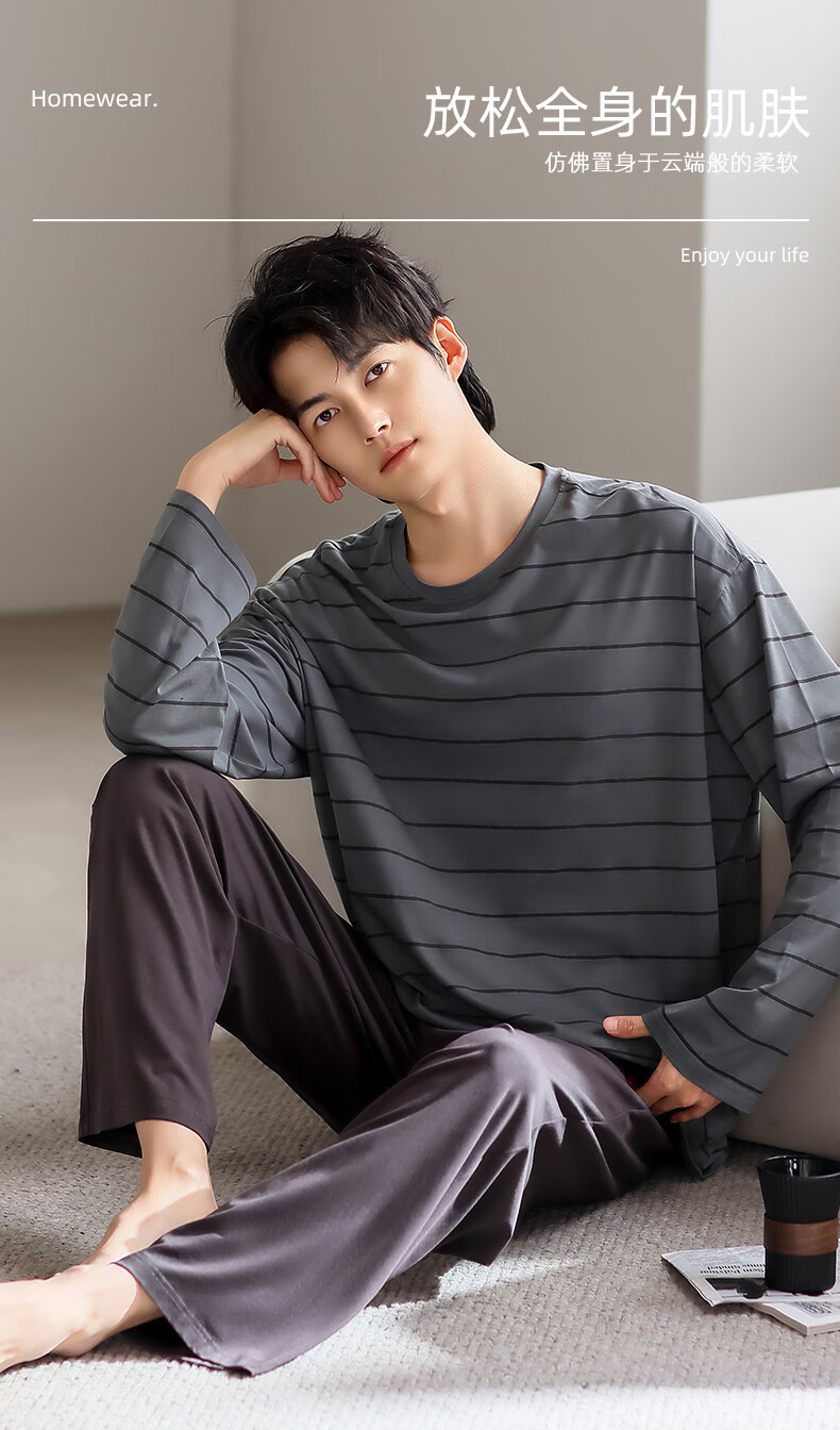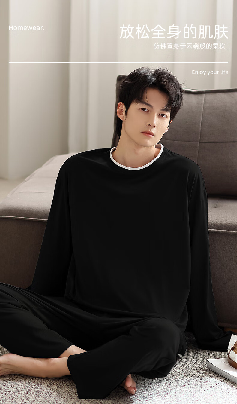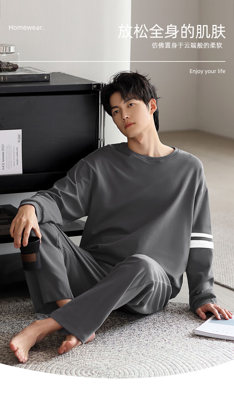 洁丽雅睡衣男士秋季薄款男生莫代尔凉长袖青少年大码舒适睡裤家居服套装 【长袖长裤】深灰色套头套装 L 【建议100-130斤】