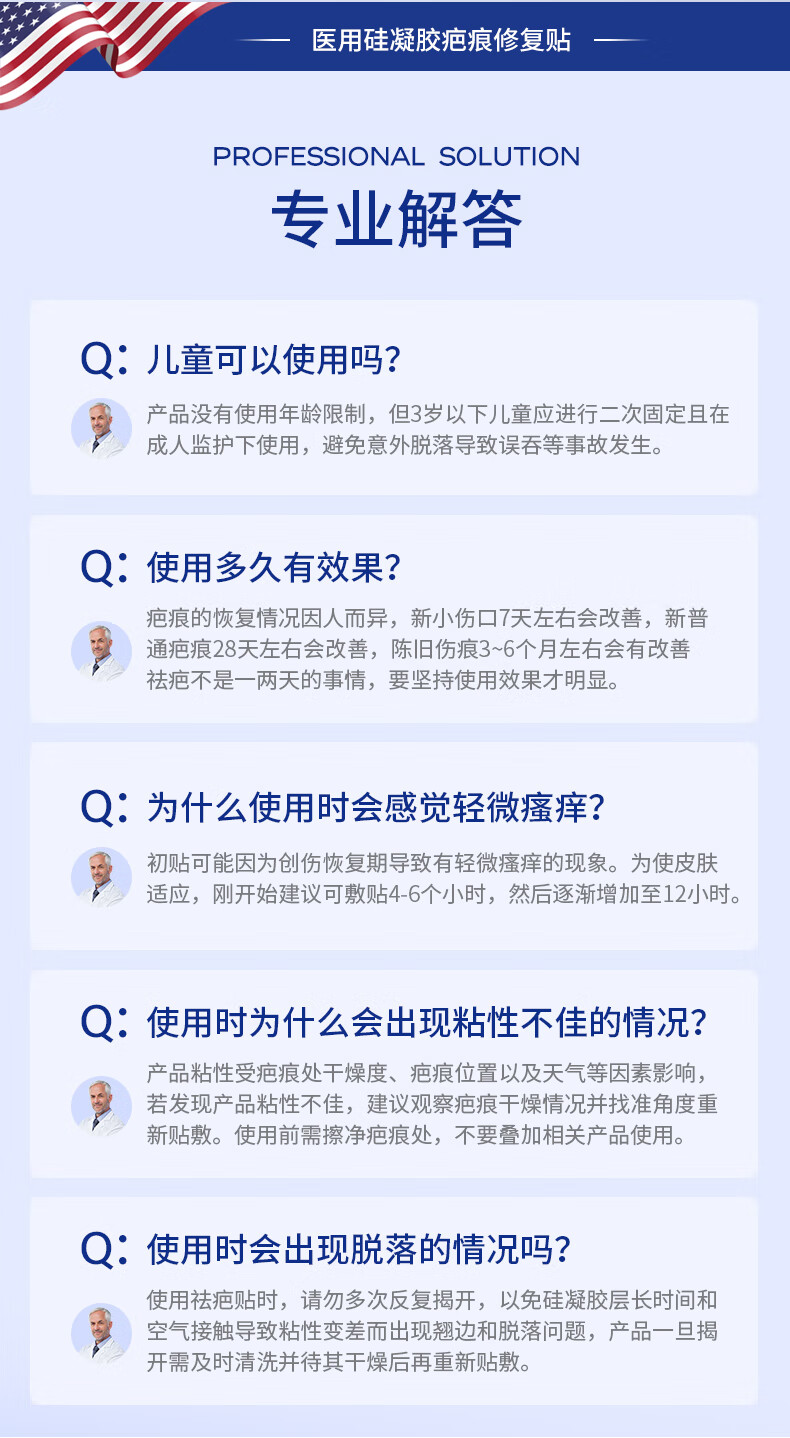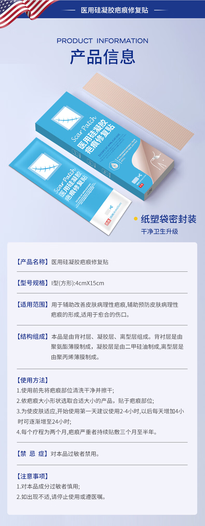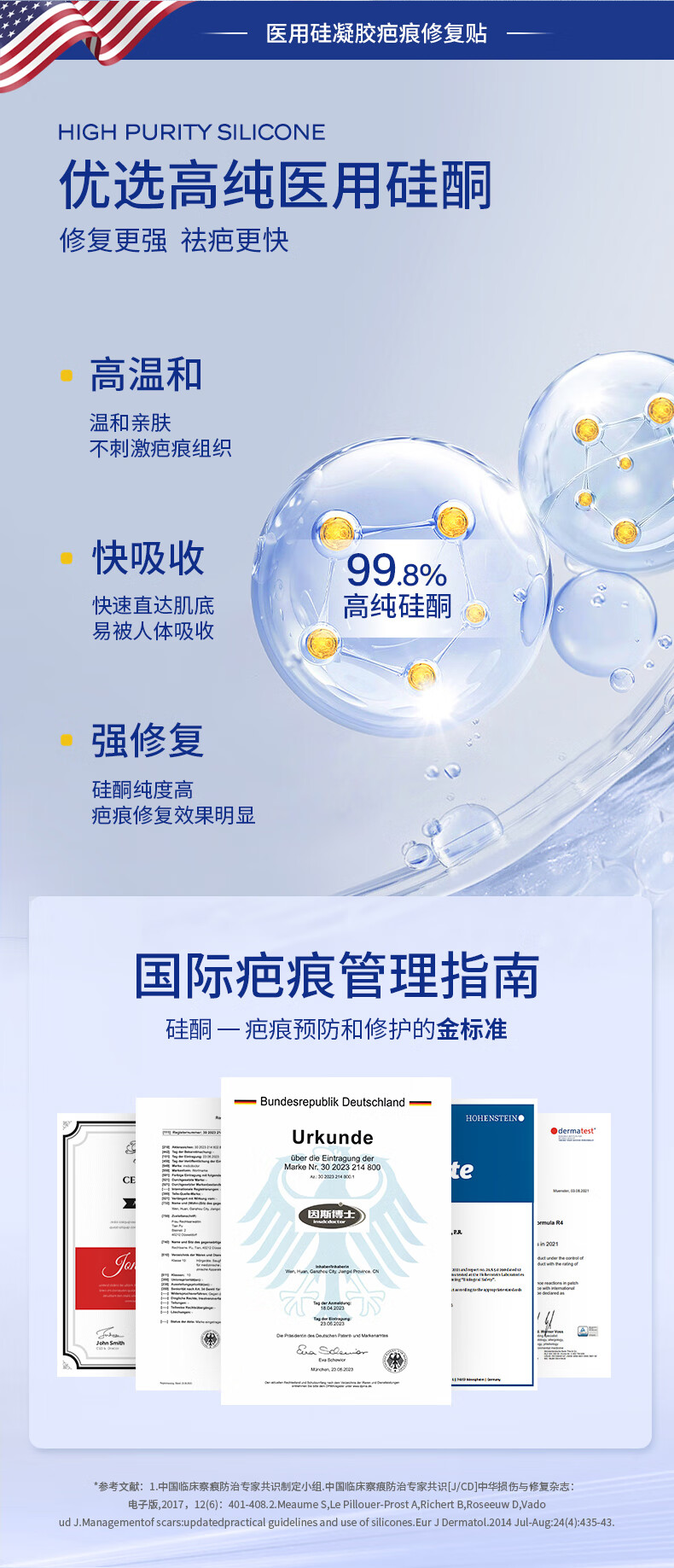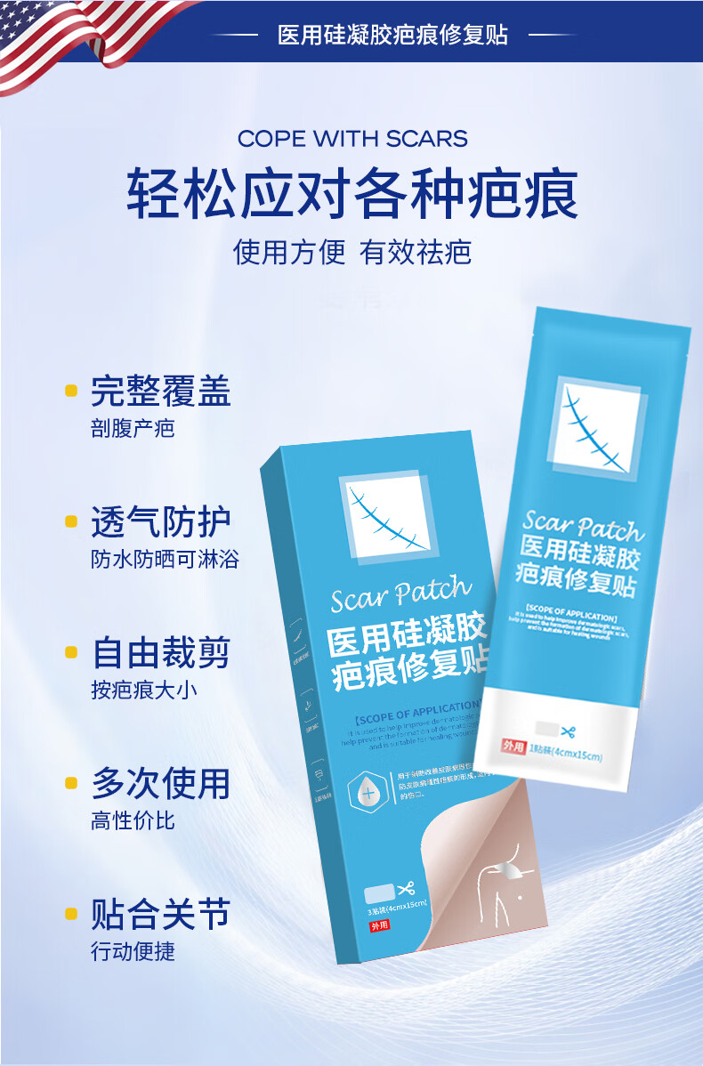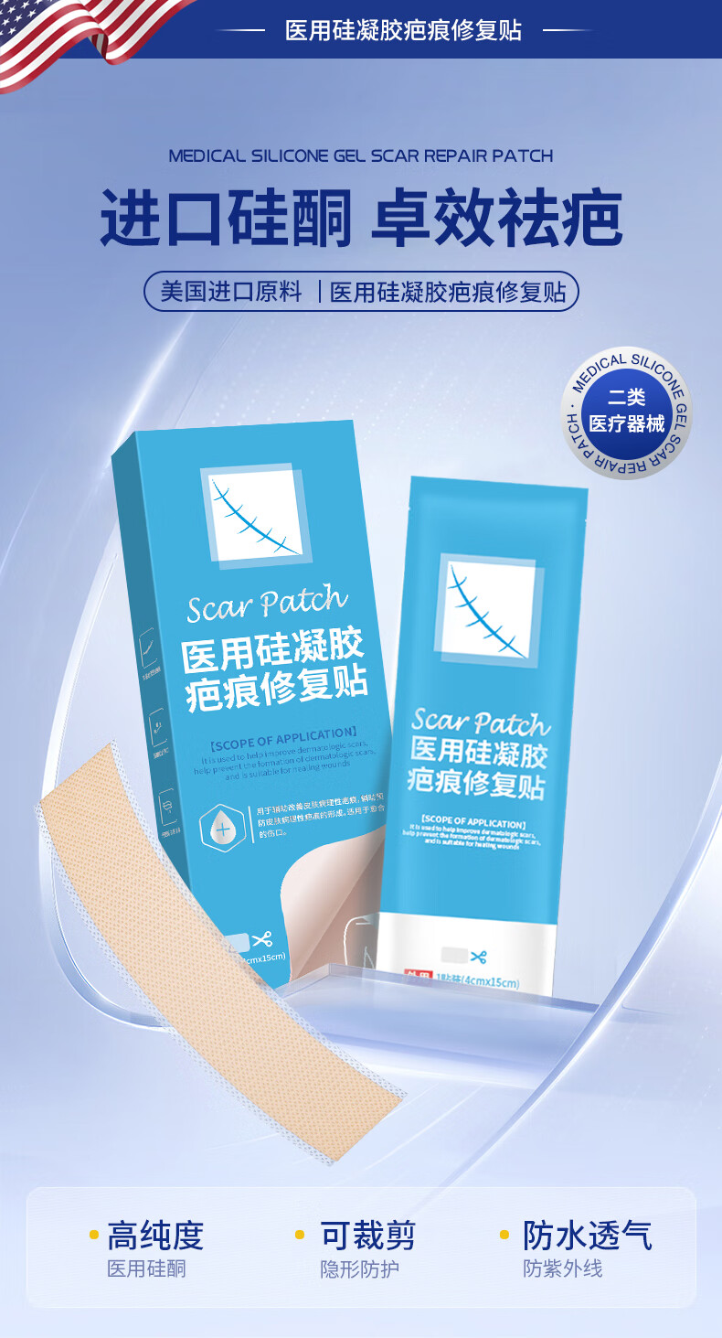 御夫清美国进口疤克源头医用硅酮疤痕贴刨剖腹产宫去祛疤痕专用修复