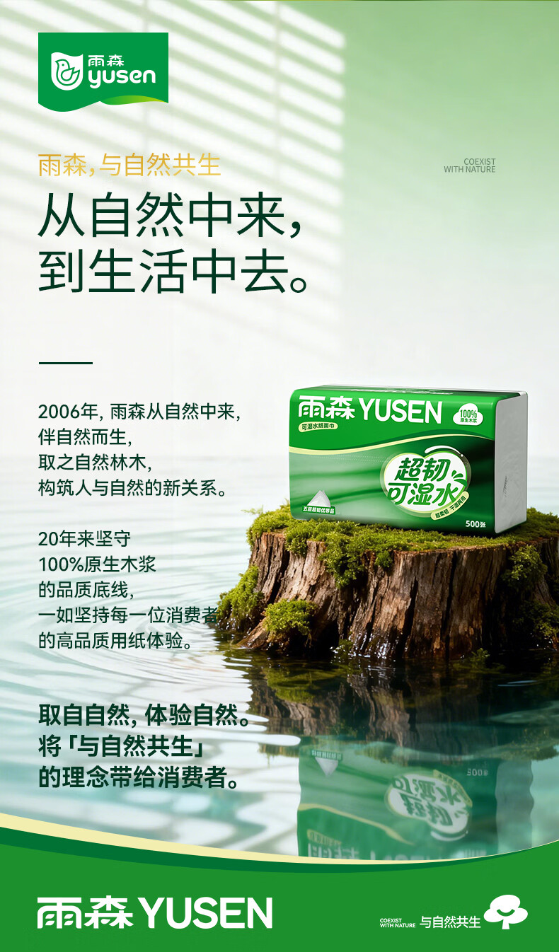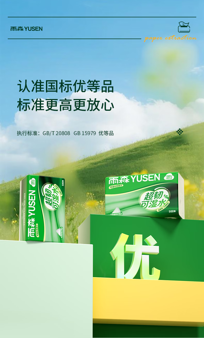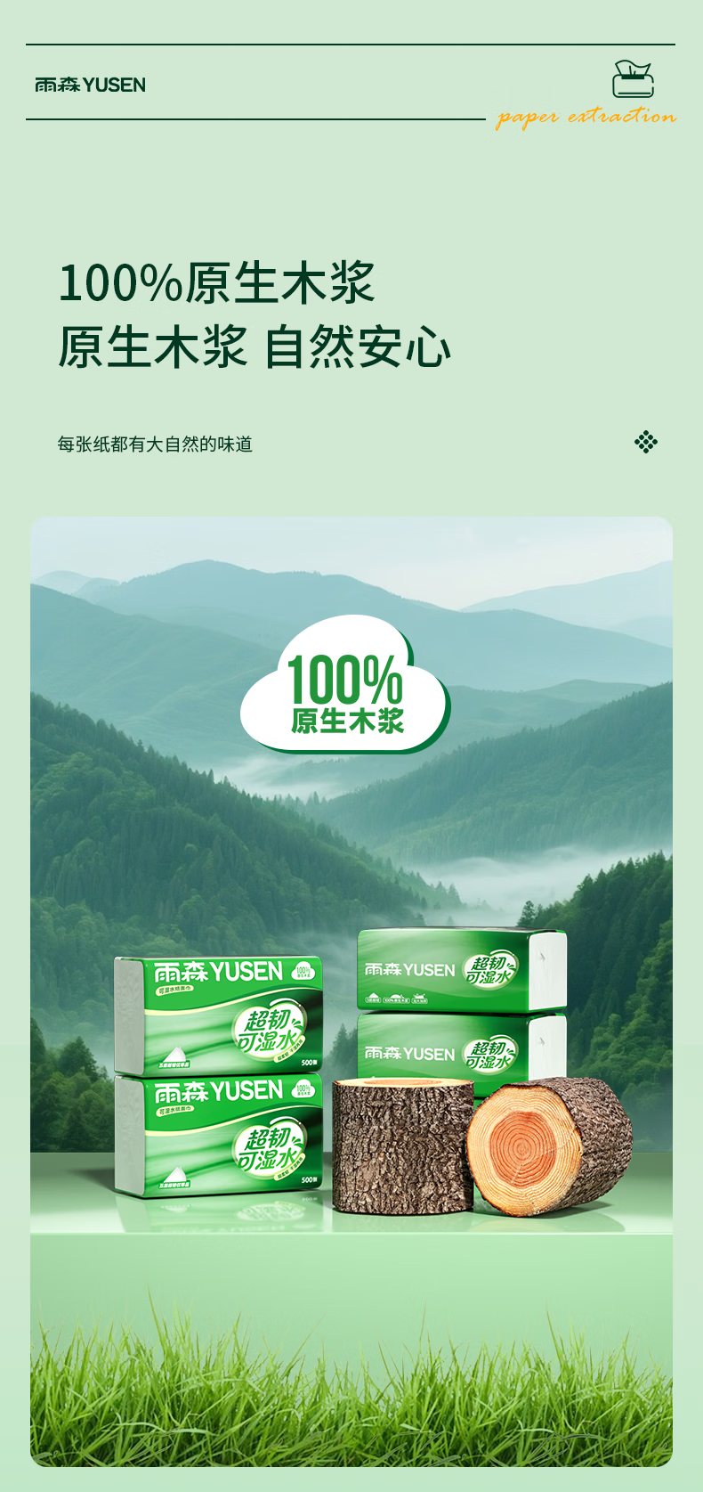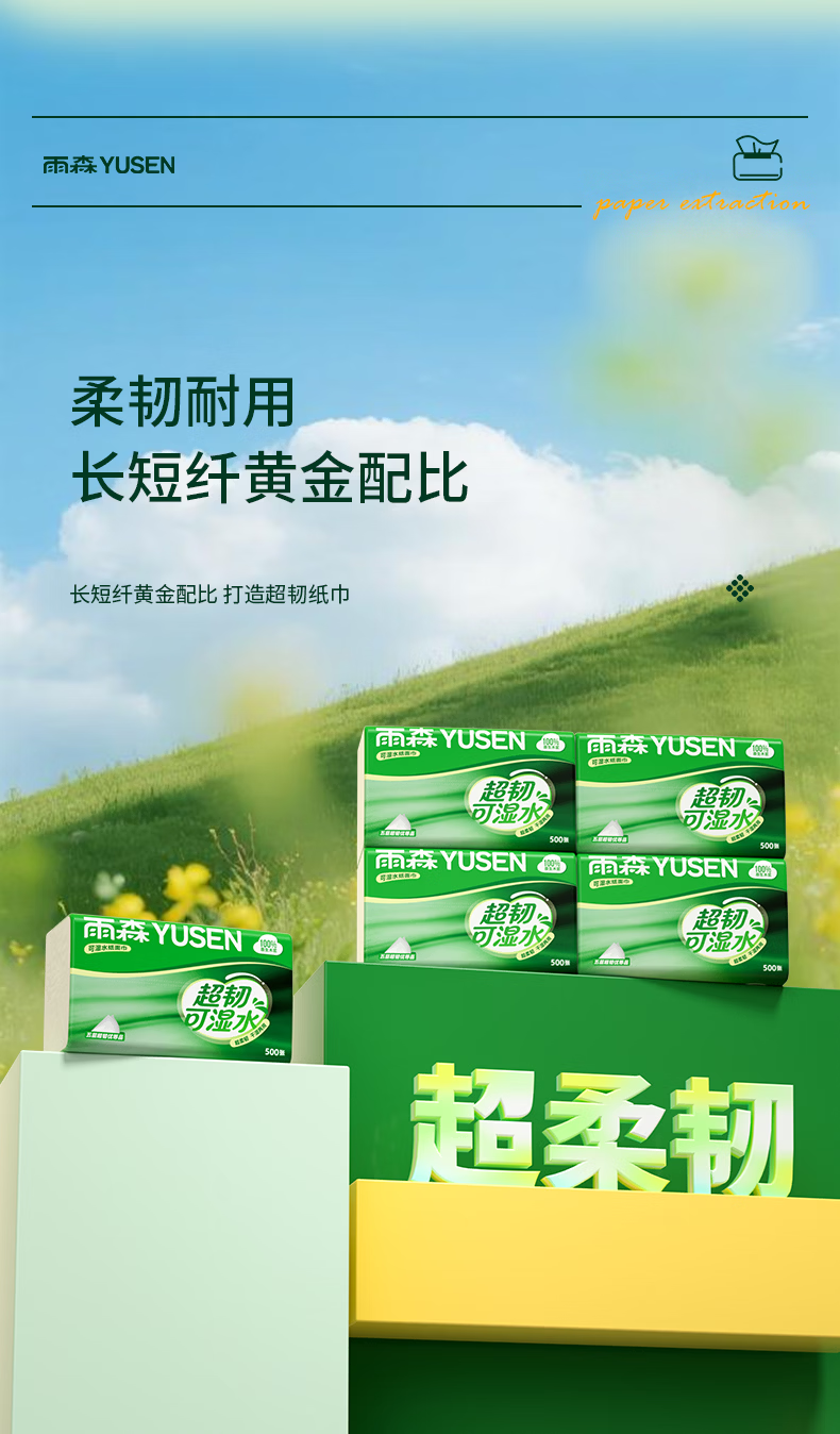 雨森超韧可湿水抽纸5层加厚家用抽纸餐巾纸100%原生木浆无荧光剂 5层 100抽*5包 【新品】