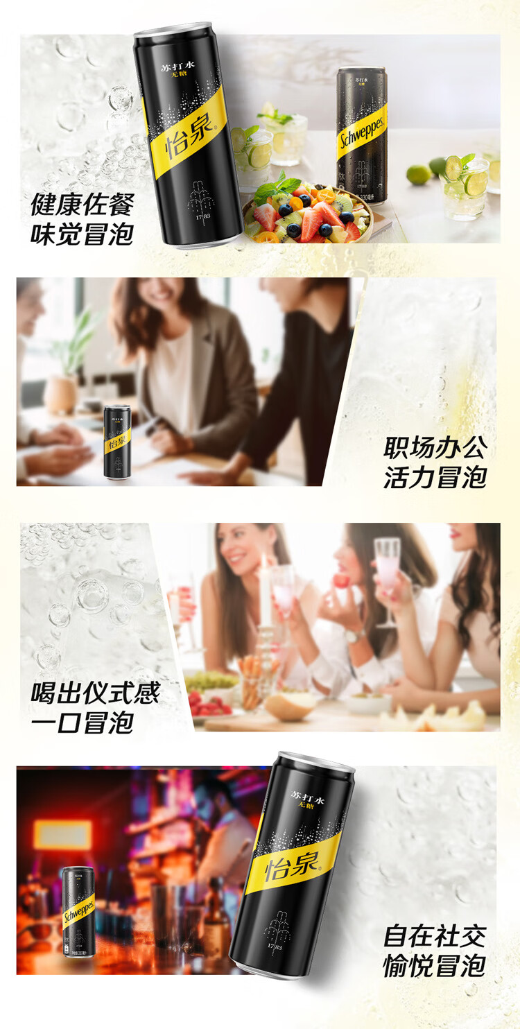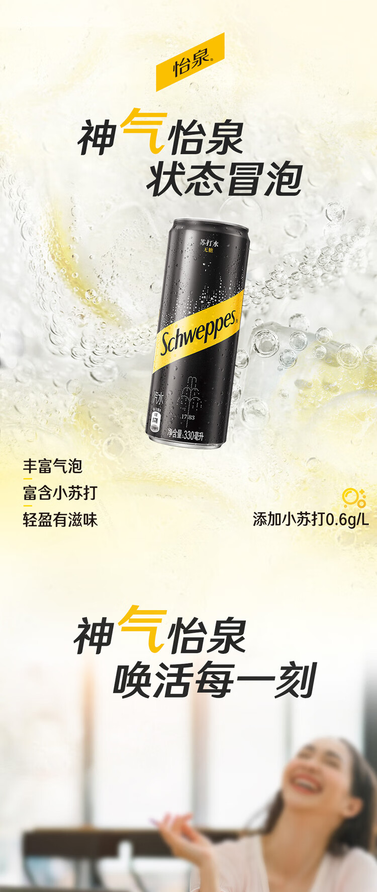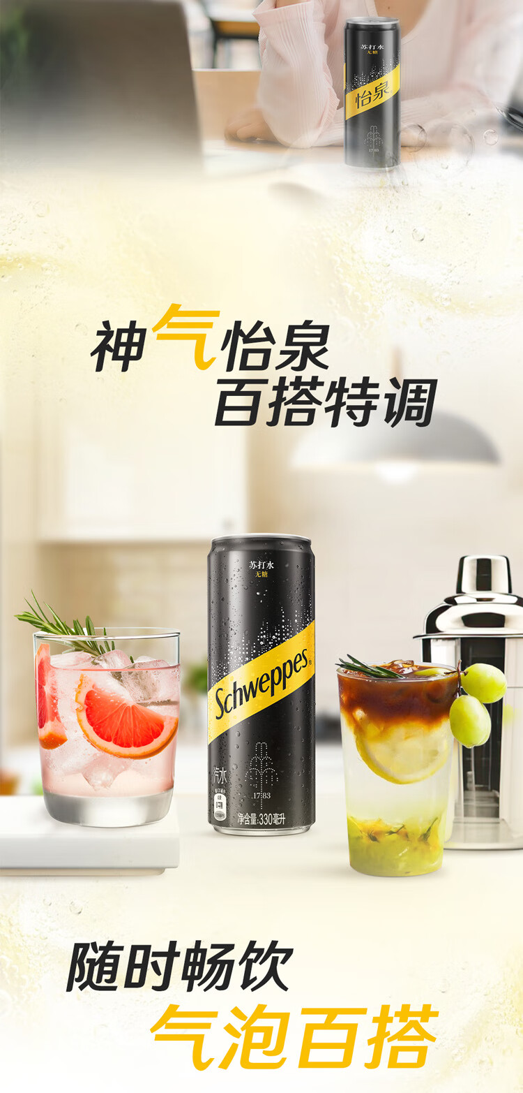 可口可乐(Coca-Cola)怡泉Schweppes 无糖零卡 苏打水汽水饮料 330ml*24罐 整箱装