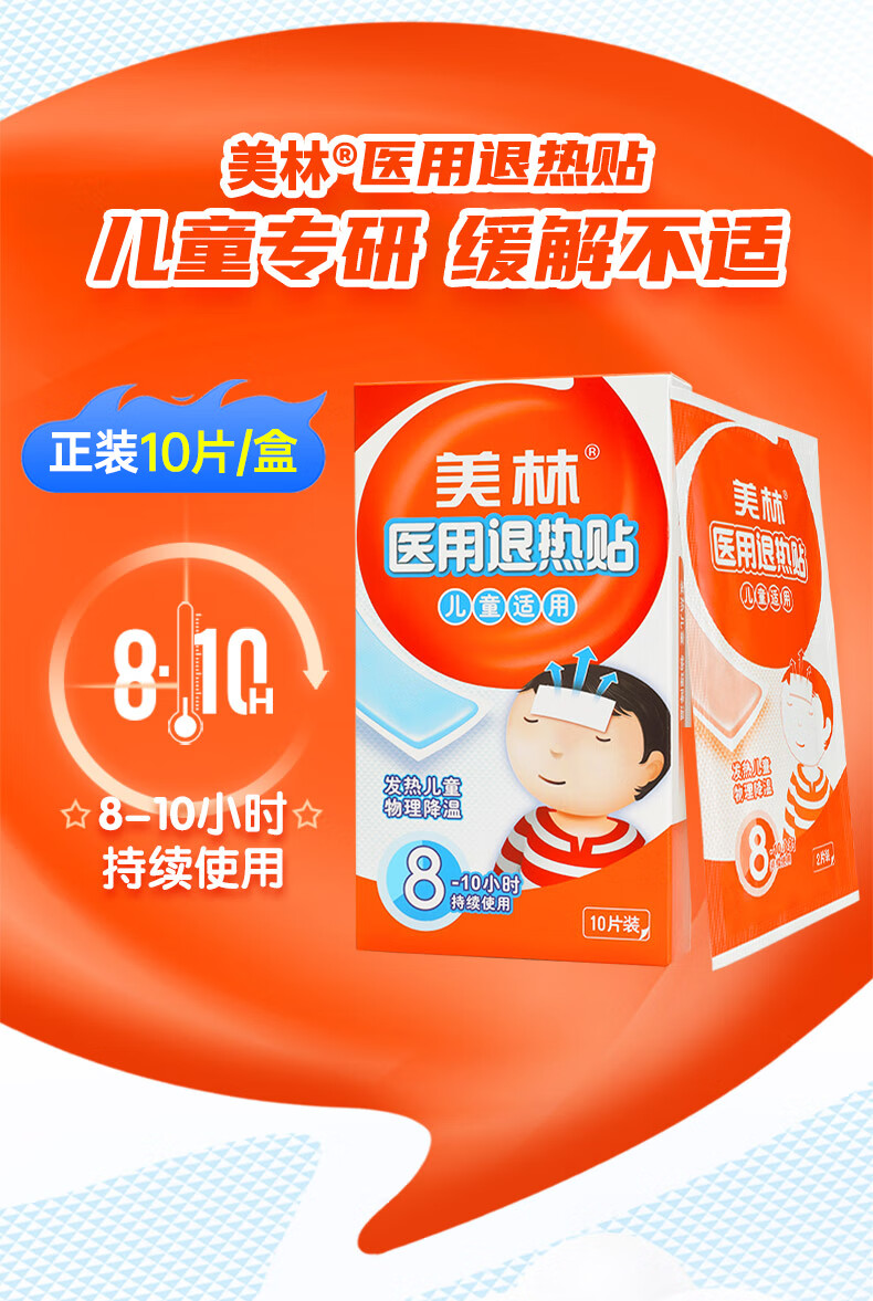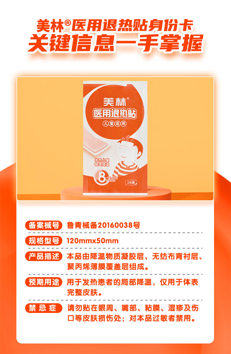 美林医用退热贴2片装儿童退烧贴婴儿冰宝贴小儿发热降温贴成人通用