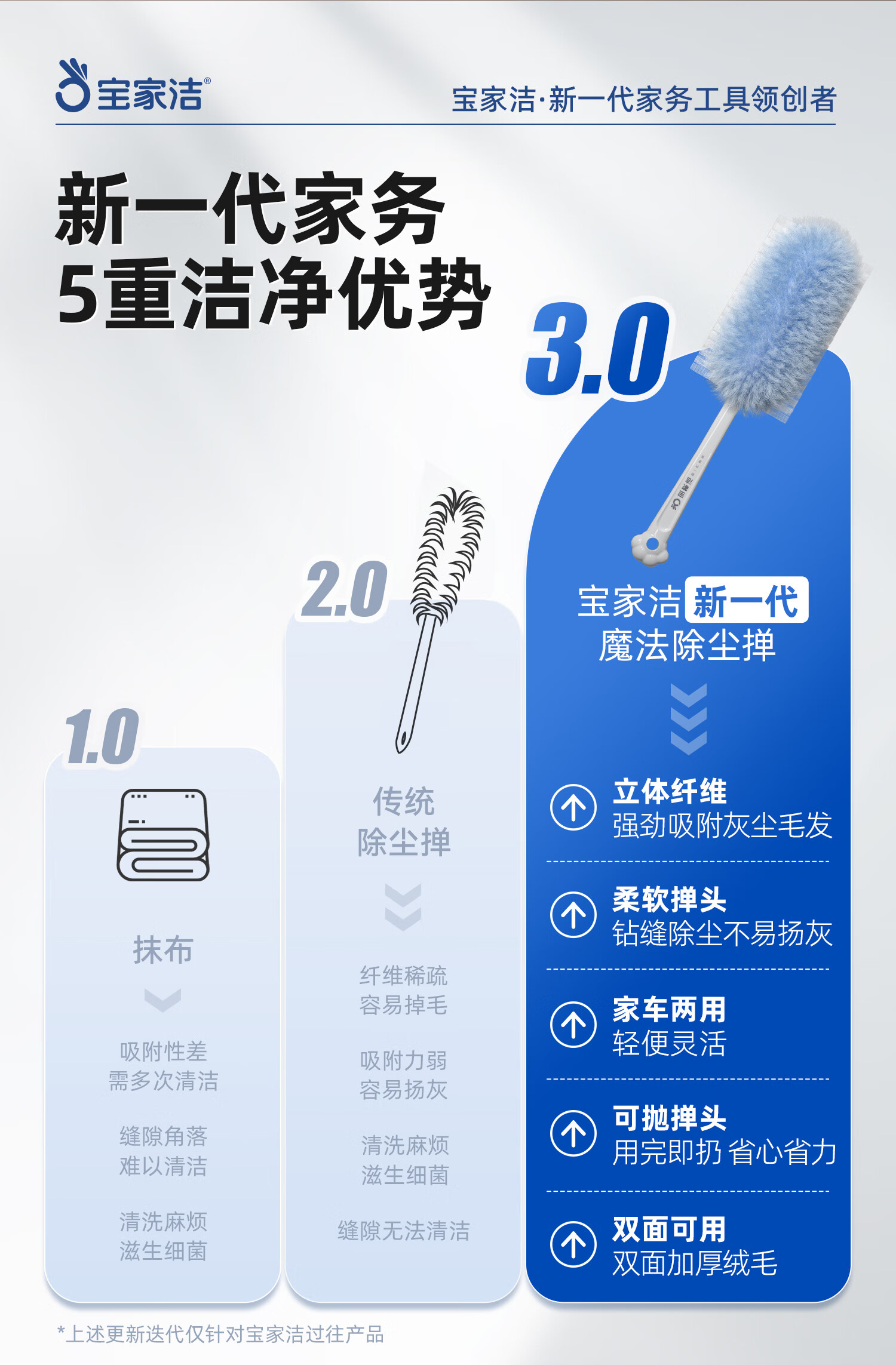 宝家洁静电除尘掸一次性家用车用鸡毛掸子清洁扫车擦灰吸灰扫灰神器