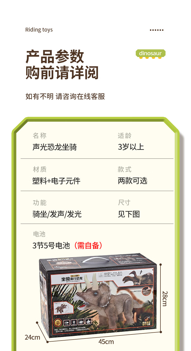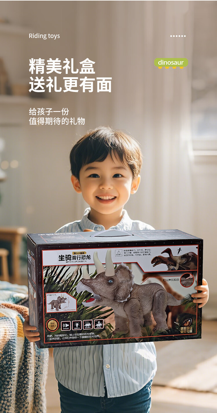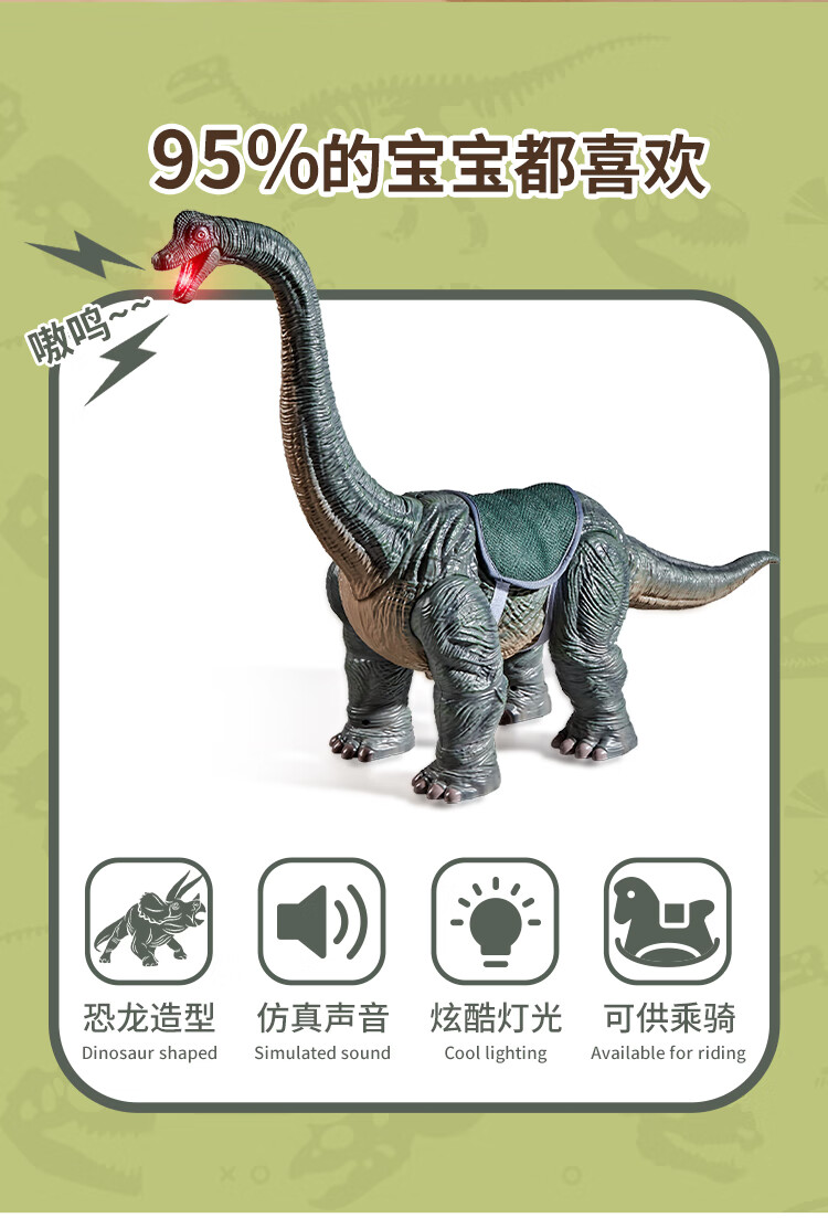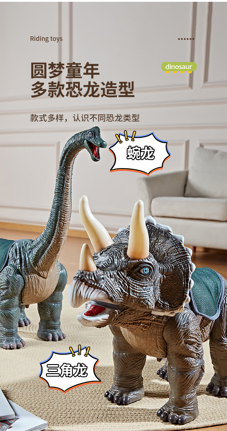 奥智嘉儿童玩具1-3岁特大号仿真可坐人电动恐龙滑行车男孩女孩新年礼物