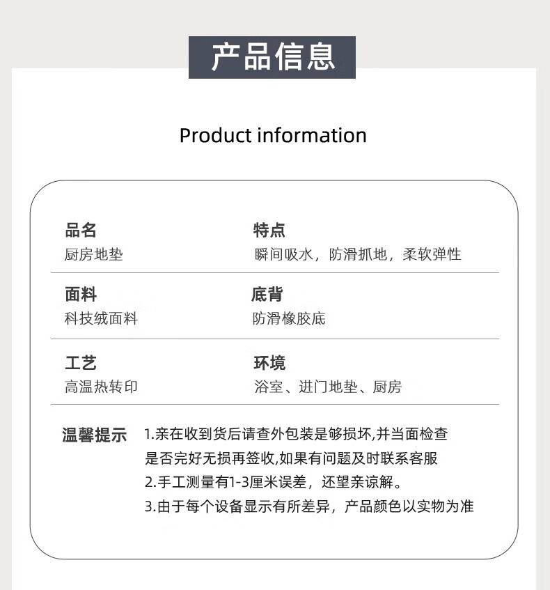 茵瀚厨房地垫防滑防油吸水长条垫子软科技绒耐脏蹭灰脚垫免洗可定制 人间值得 45cm*70cm +45cm*120cm