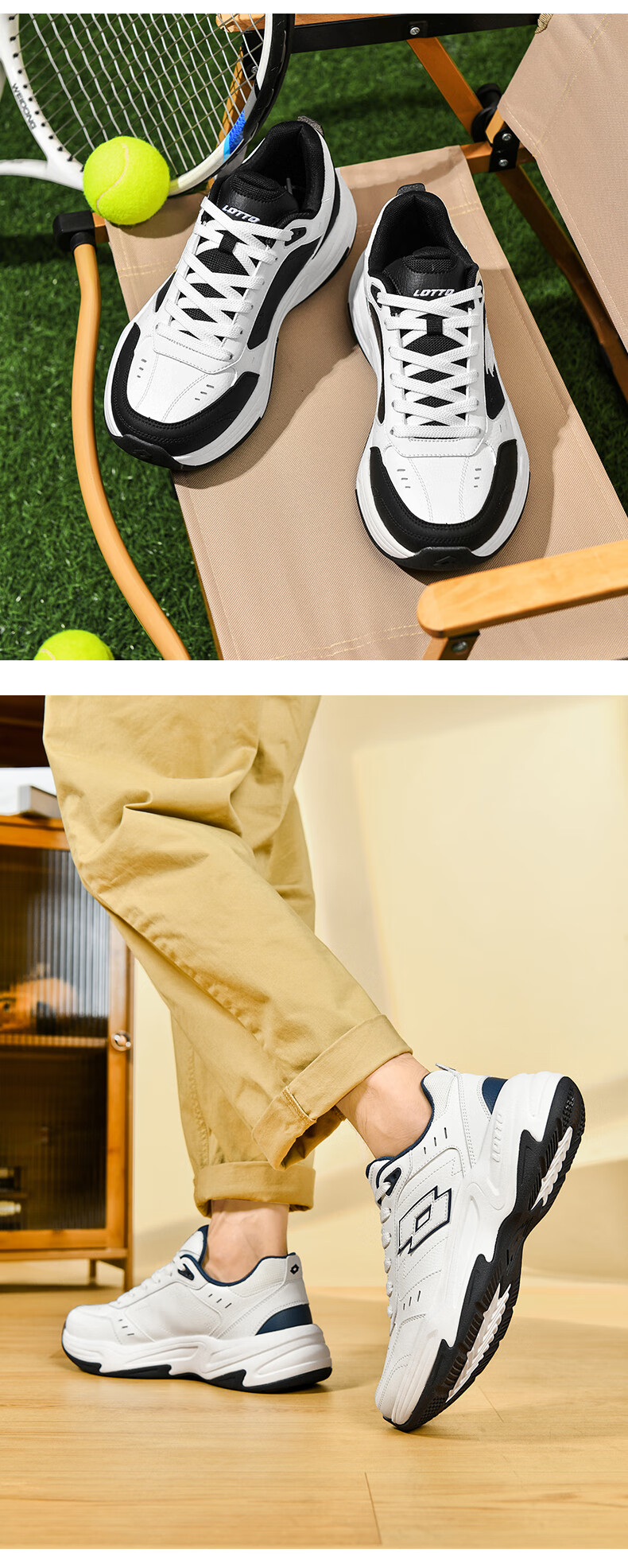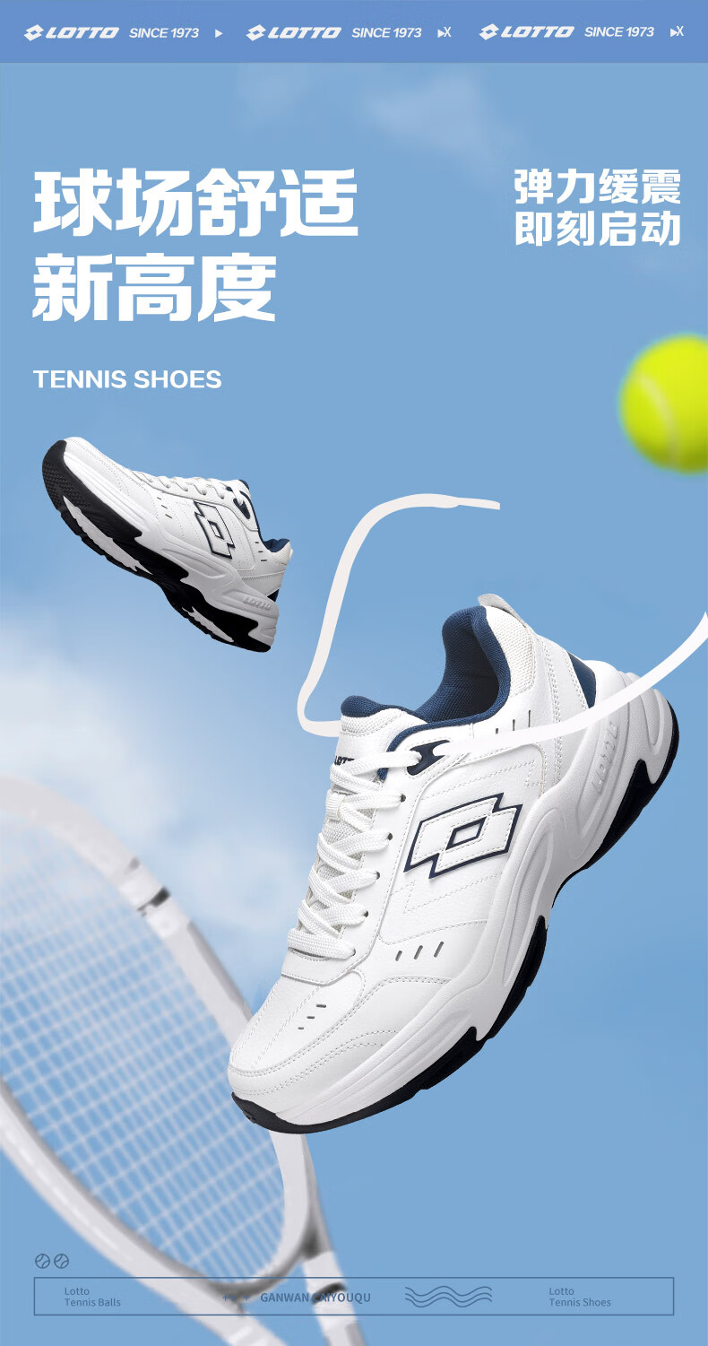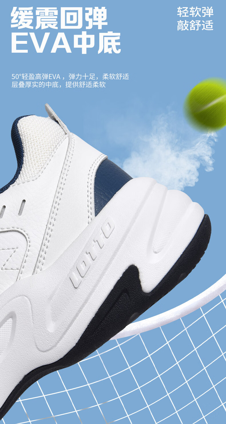 乐途(LOTTO)运动鞋男鞋春冬官方皮面男士跑步鞋防滑耐磨百搭网球休闲鞋子 白蓝色加绒(男款) 40