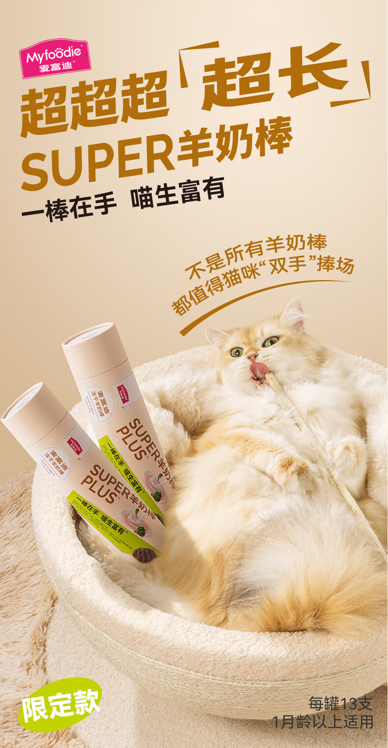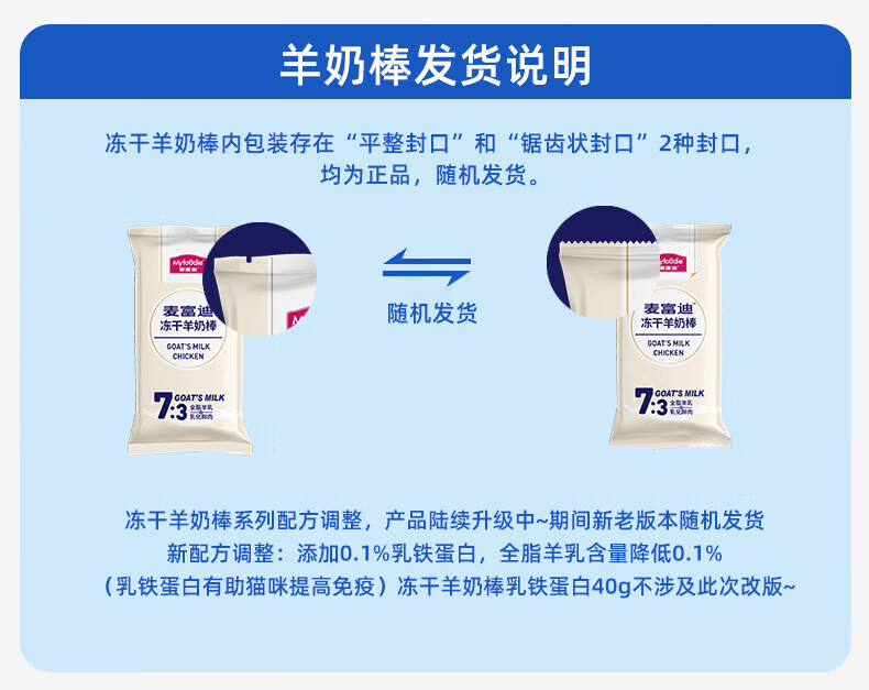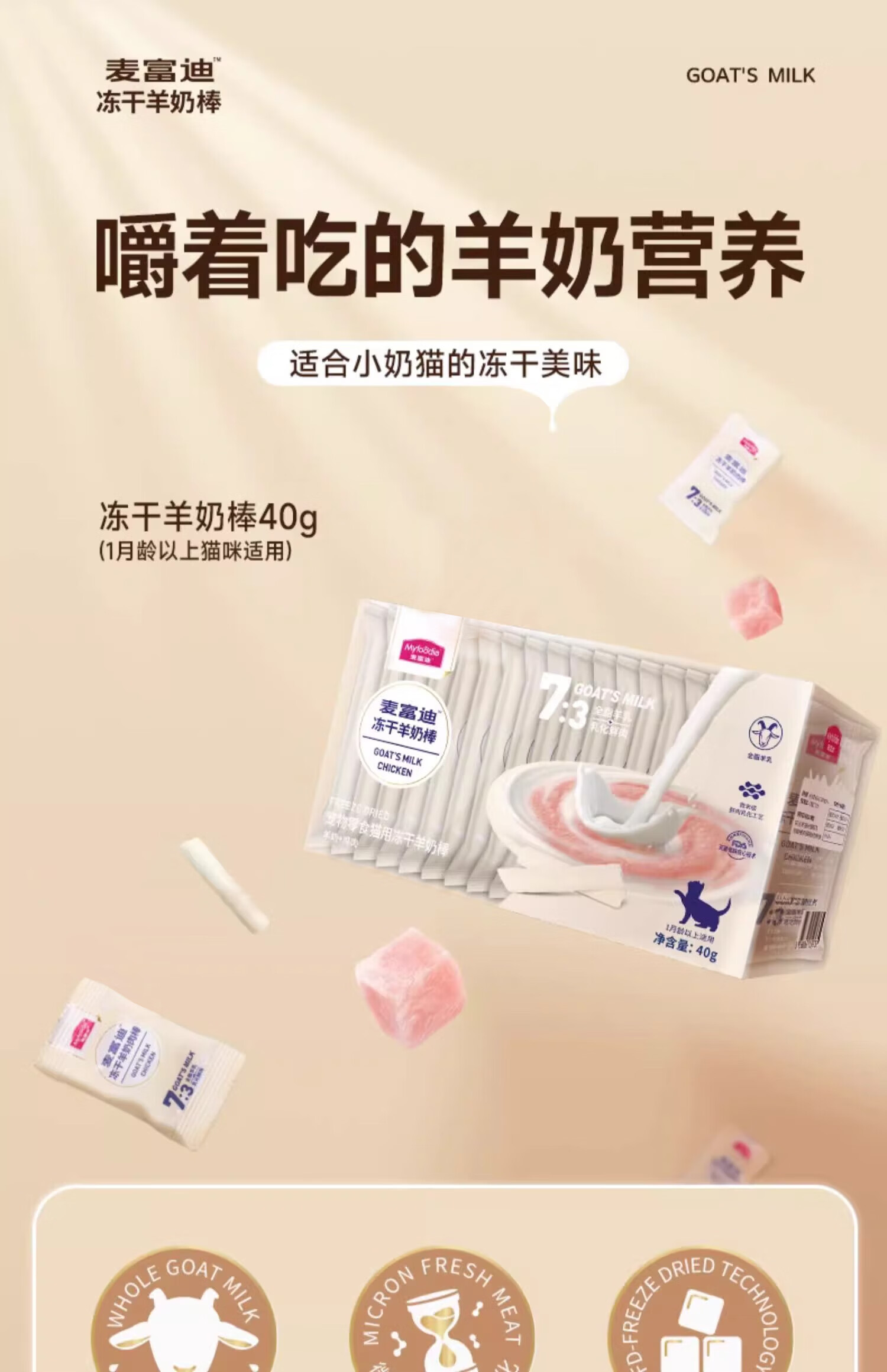 麦富迪 猫咪零食 冻干羊奶棒1-12月成猫幼猫通用肉奶搭配猫零食 【囤货装】混合6盒装240g