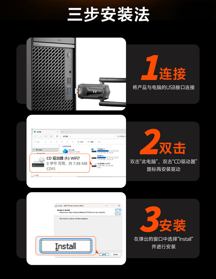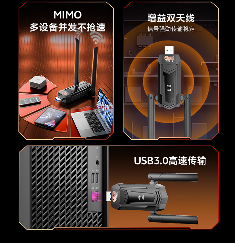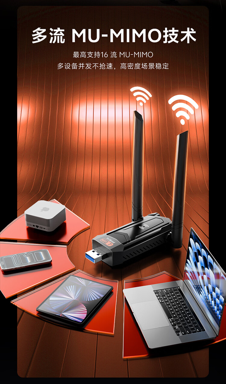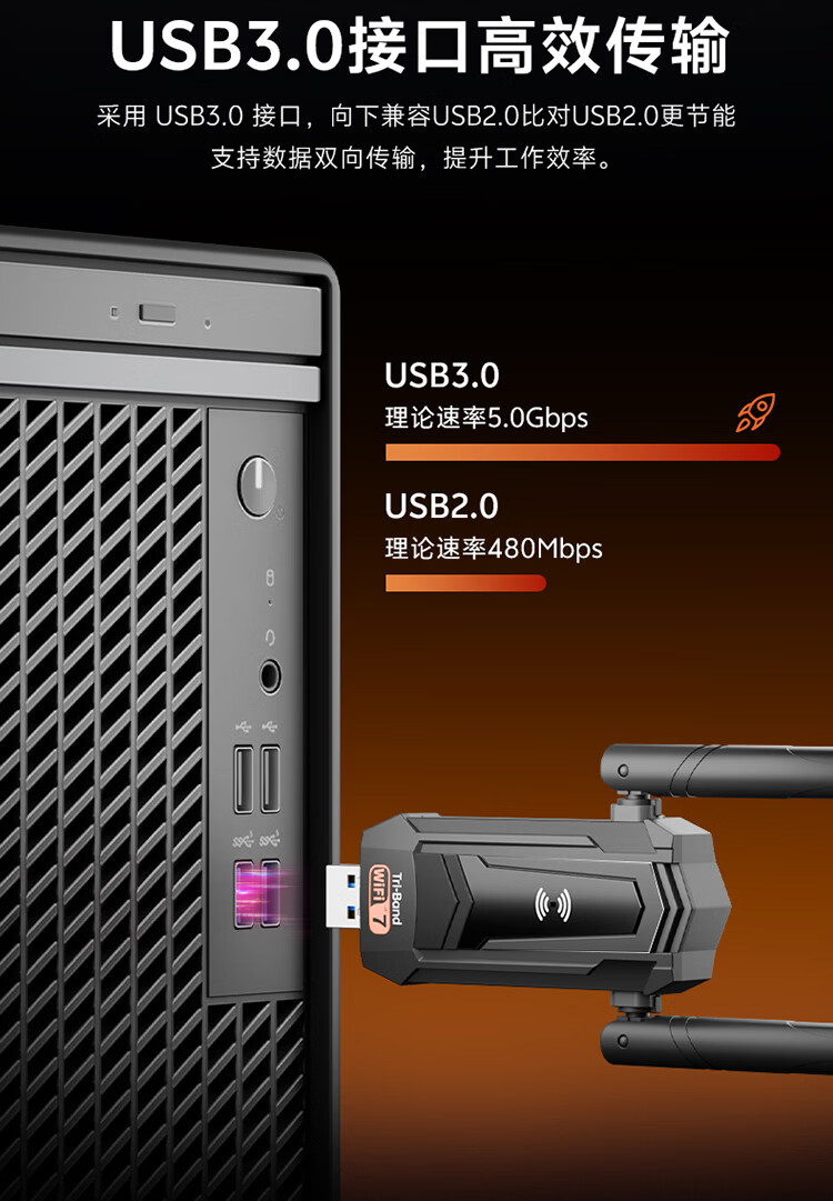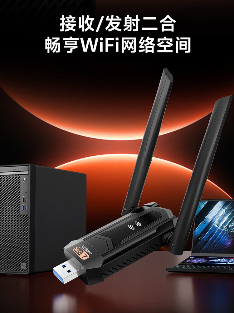 优籁特(ULT-unite)WiFi7千兆USB无线网卡台式机专用 电竞三频5G高速免驱usb3.0外置双天线wifi接收发射器笔记本通用 【WiFi7新品】BE6500/免驱安装