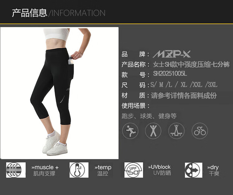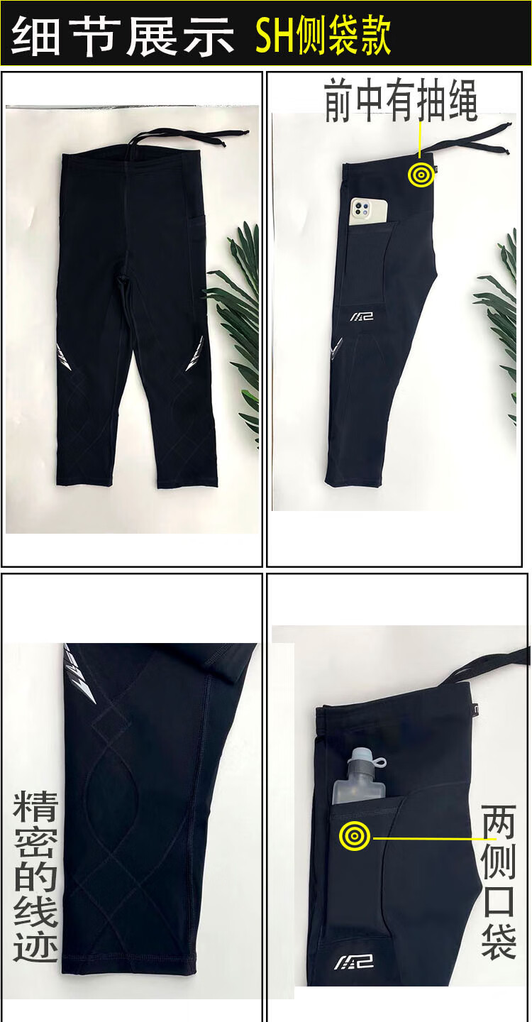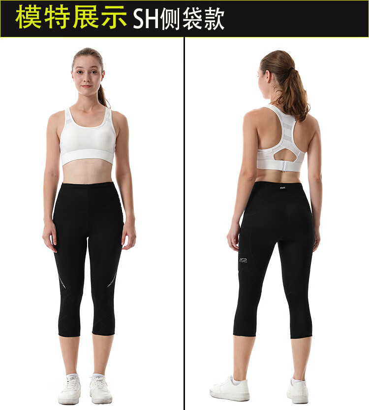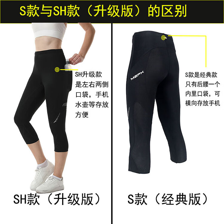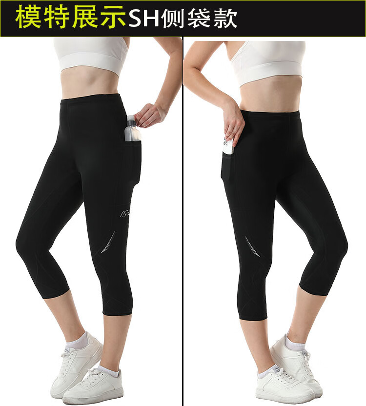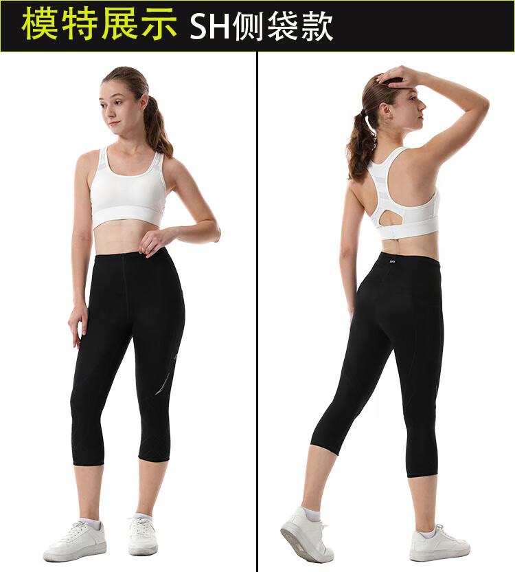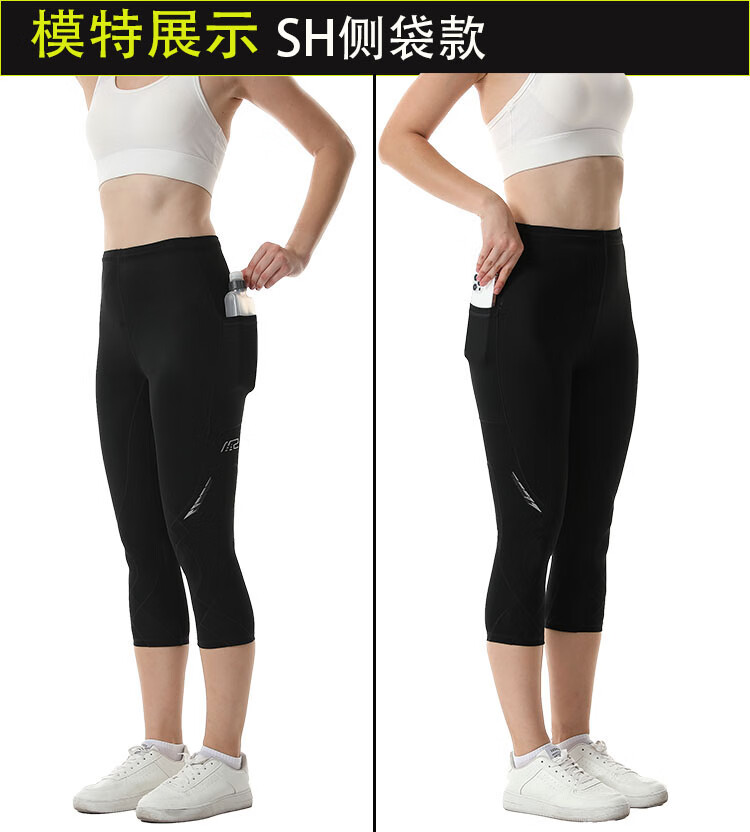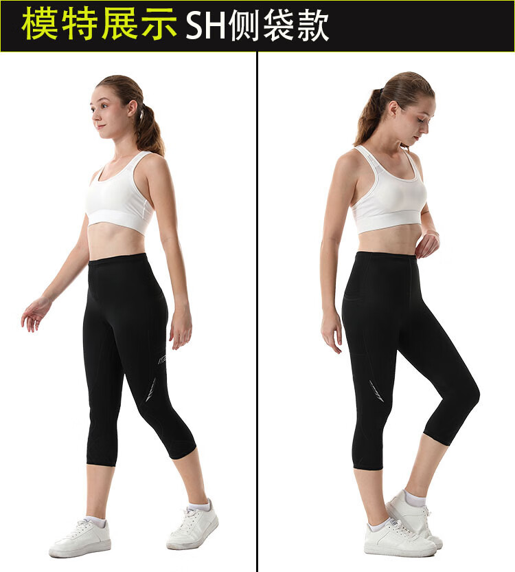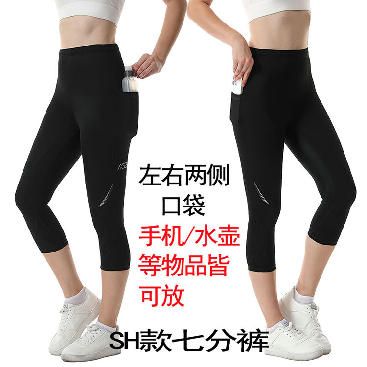 MZPX名泽品压缩短裤女SH七分运动马拉松跑步健身训练护膝腰透气紧身夏 女SH款七分裤(薄款)黑色 左右口袋 3XL 裤腰周长平量80cm
