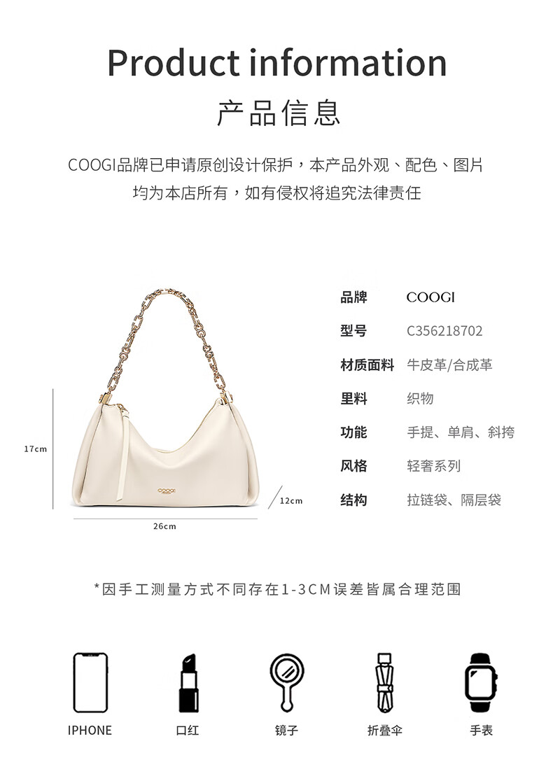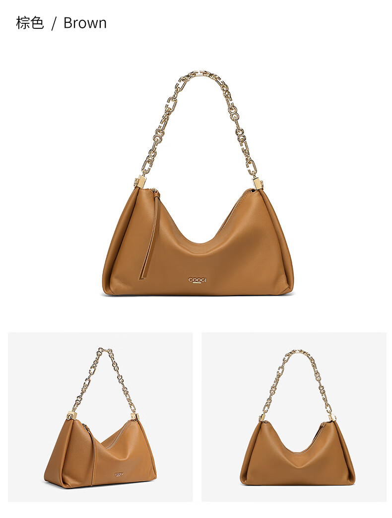 COOGI包包女包奢侈品牌2025新款女单肩斜挎包圣诞节礼物送女友老婆 棕色 26*12*17CM