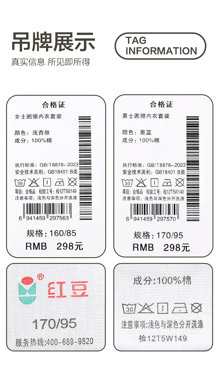 红豆(Hodo) 秋冬内衣秋衣秋裤纯棉套装纯色低圆领打底衫裤 女款牛油果绿 L 170/95
