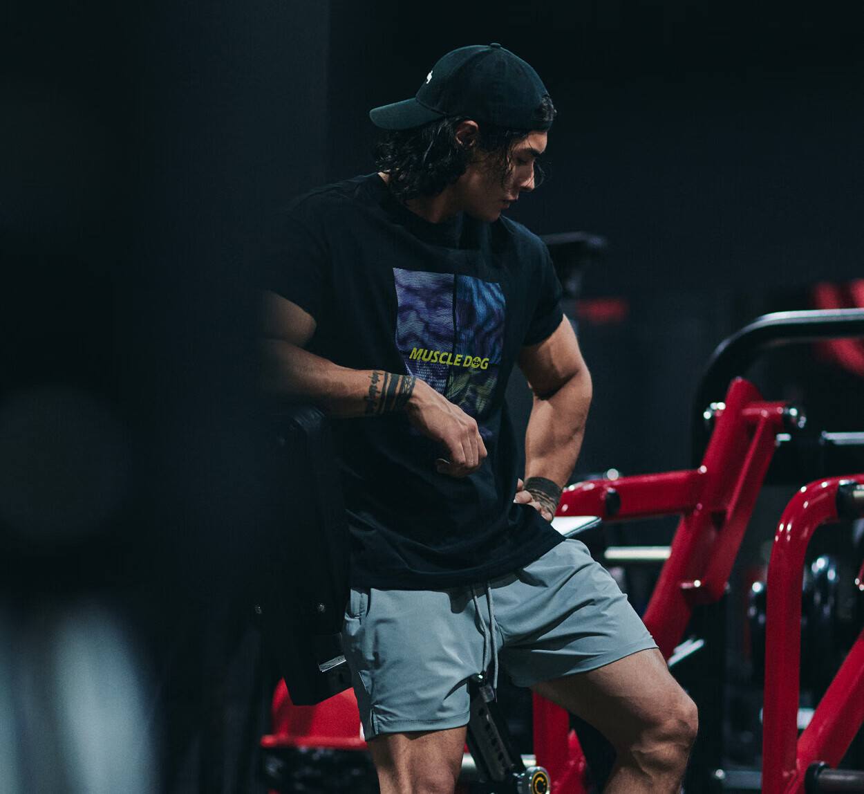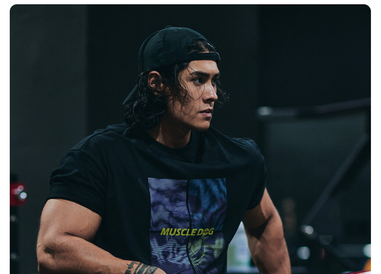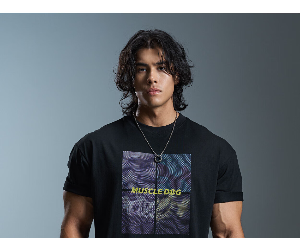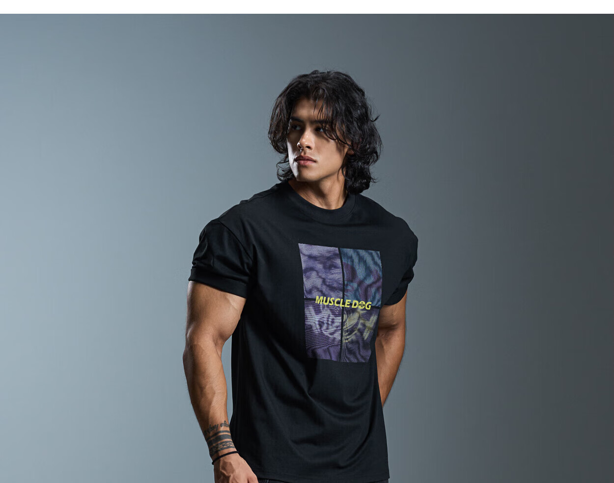 MUSCLE DOG肌肉狗 运动T恤男2025新款轻量7A抗菌皮UPF50印花短袖健身训练服 深灰色 3XL