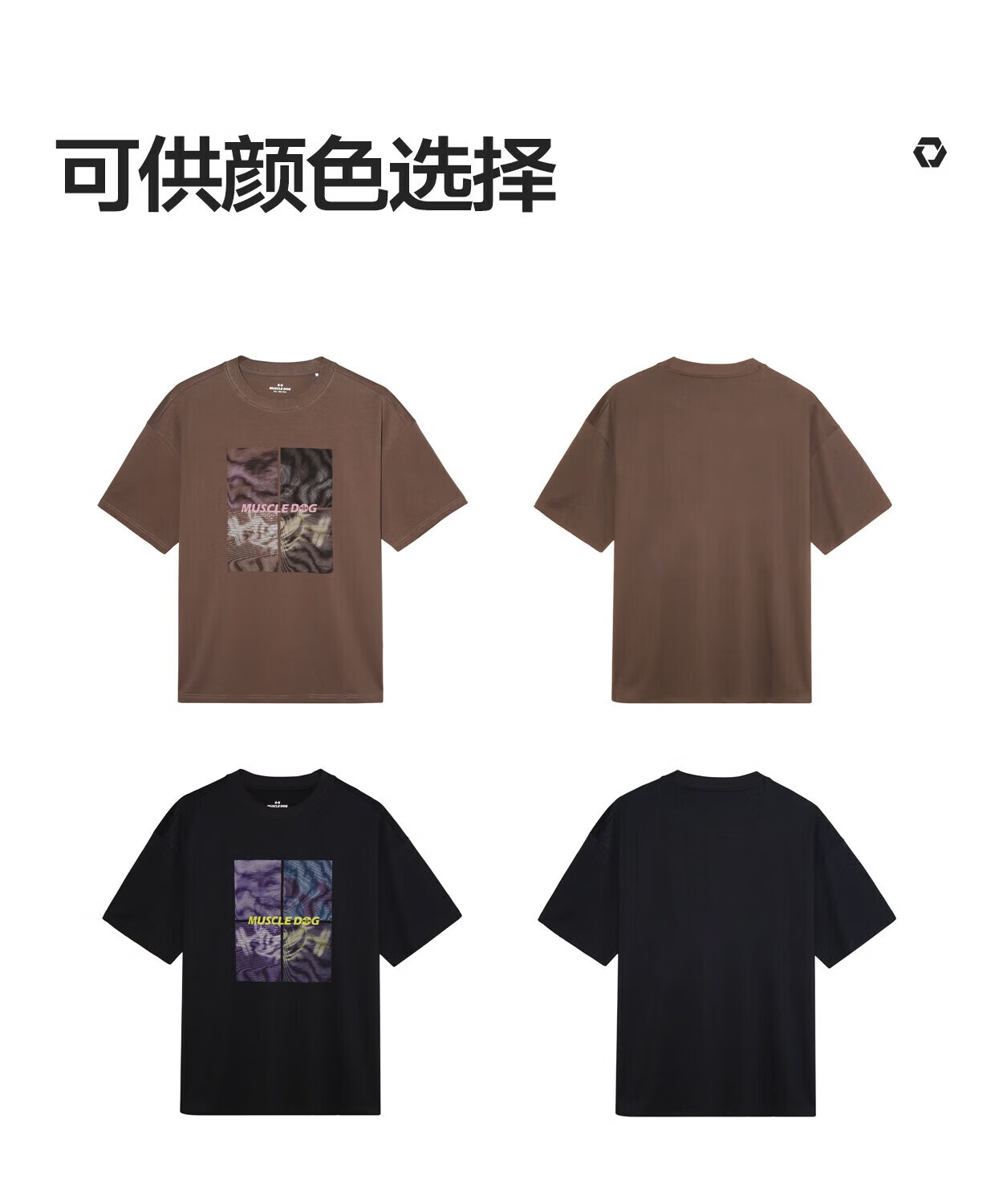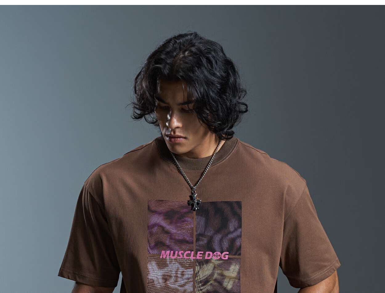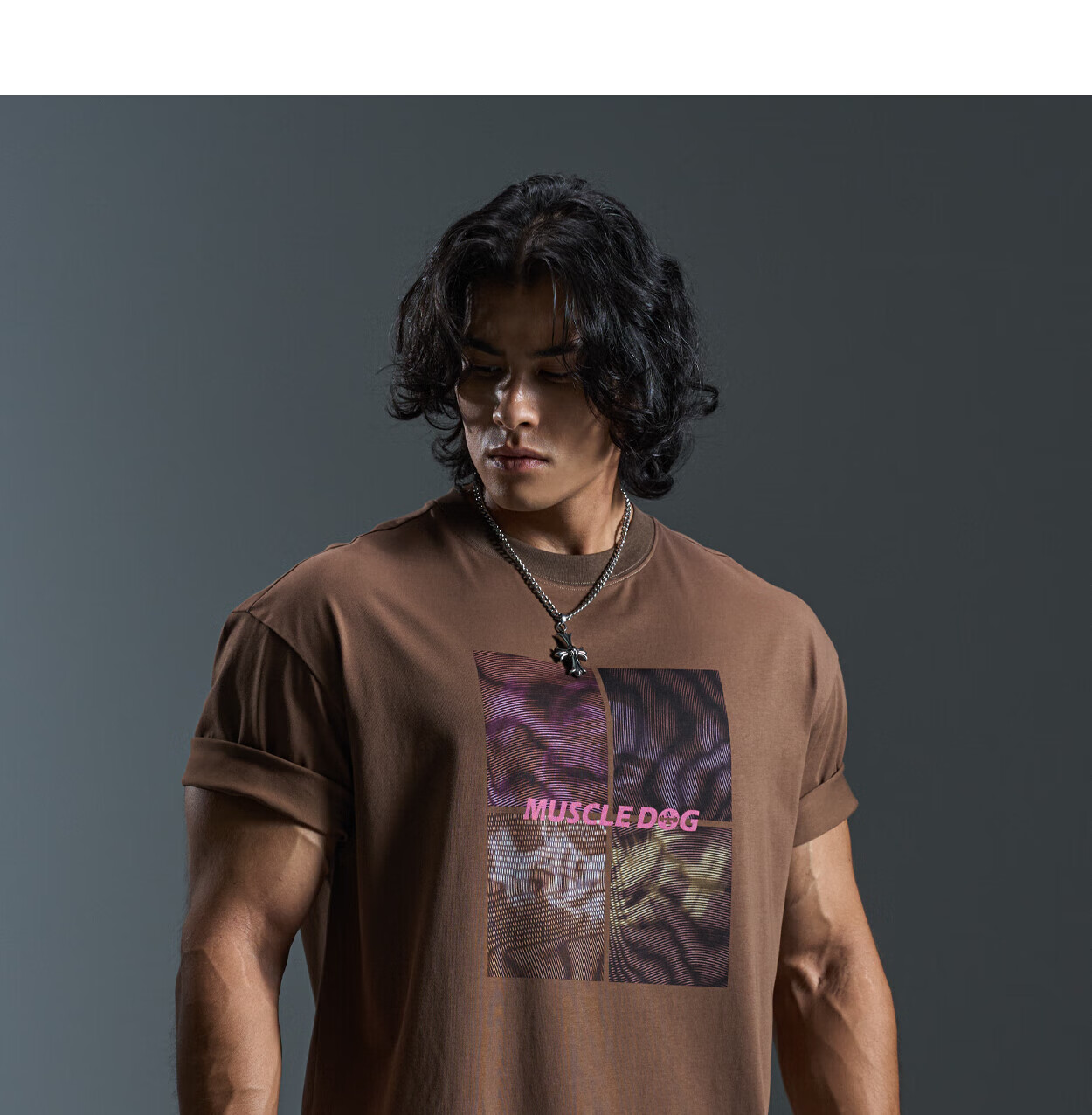 MUSCLE DOG肌肉狗 短袖T恤男2025新款波普LOGO印花圆领宽松运动训练健身上衣 咖色 3XL
