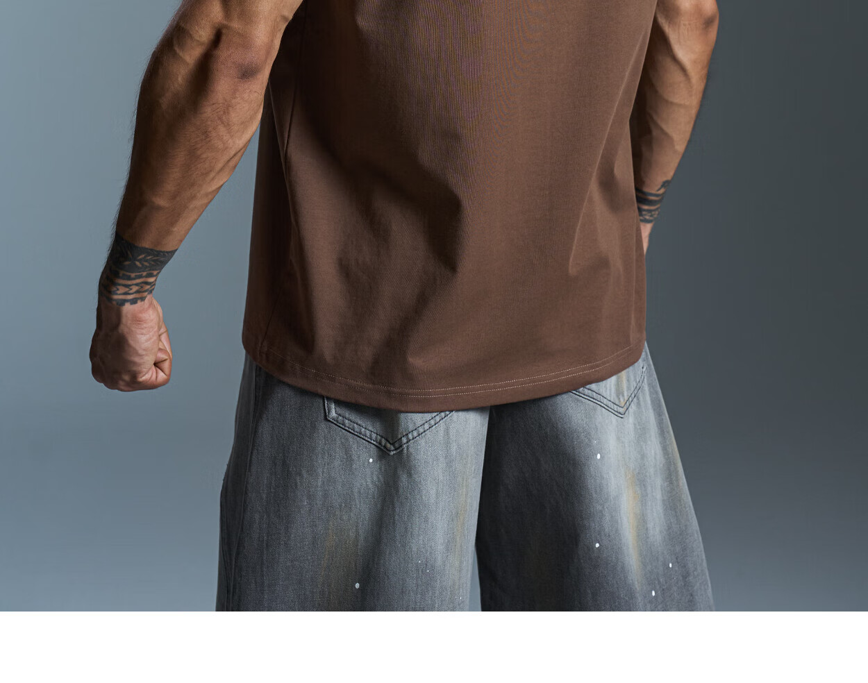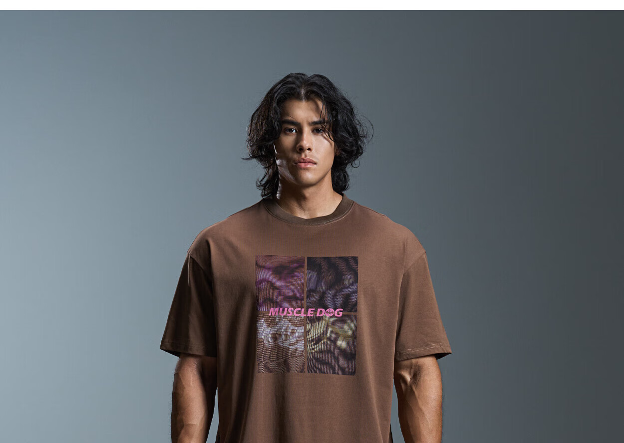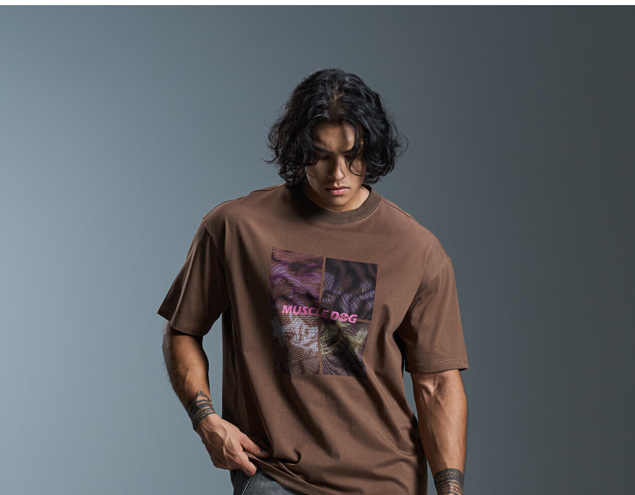 MUSCLE DOG肌肉狗 短袖T恤男2025新款波普LOGO印花圆领宽松运动训练健身上衣 咖色 3XL