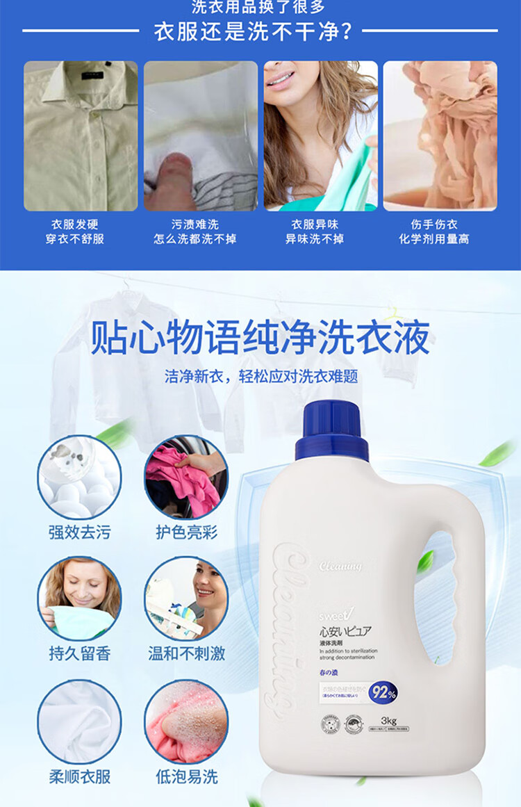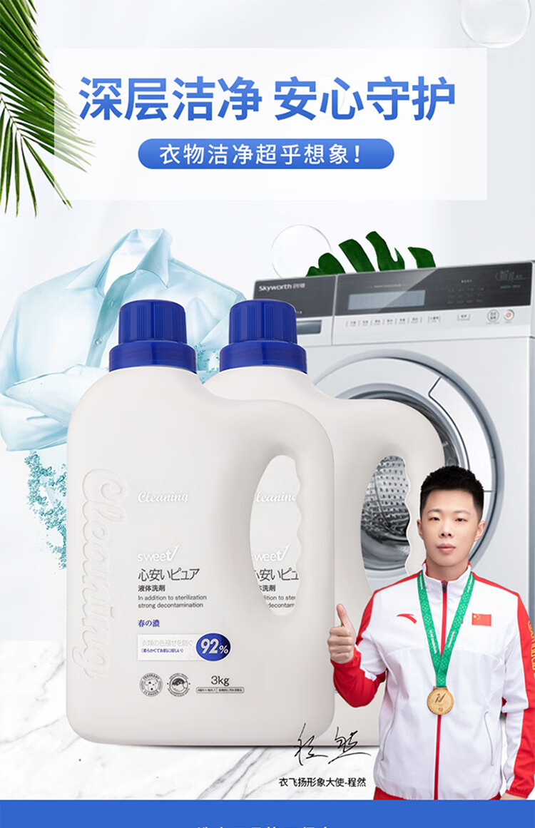 衣飞扬小林洗衣液套装12斤进口配方2桶去污机手洗中性低泡内衣内裤 贴心物语3kg*2瓶 除螨抑菌