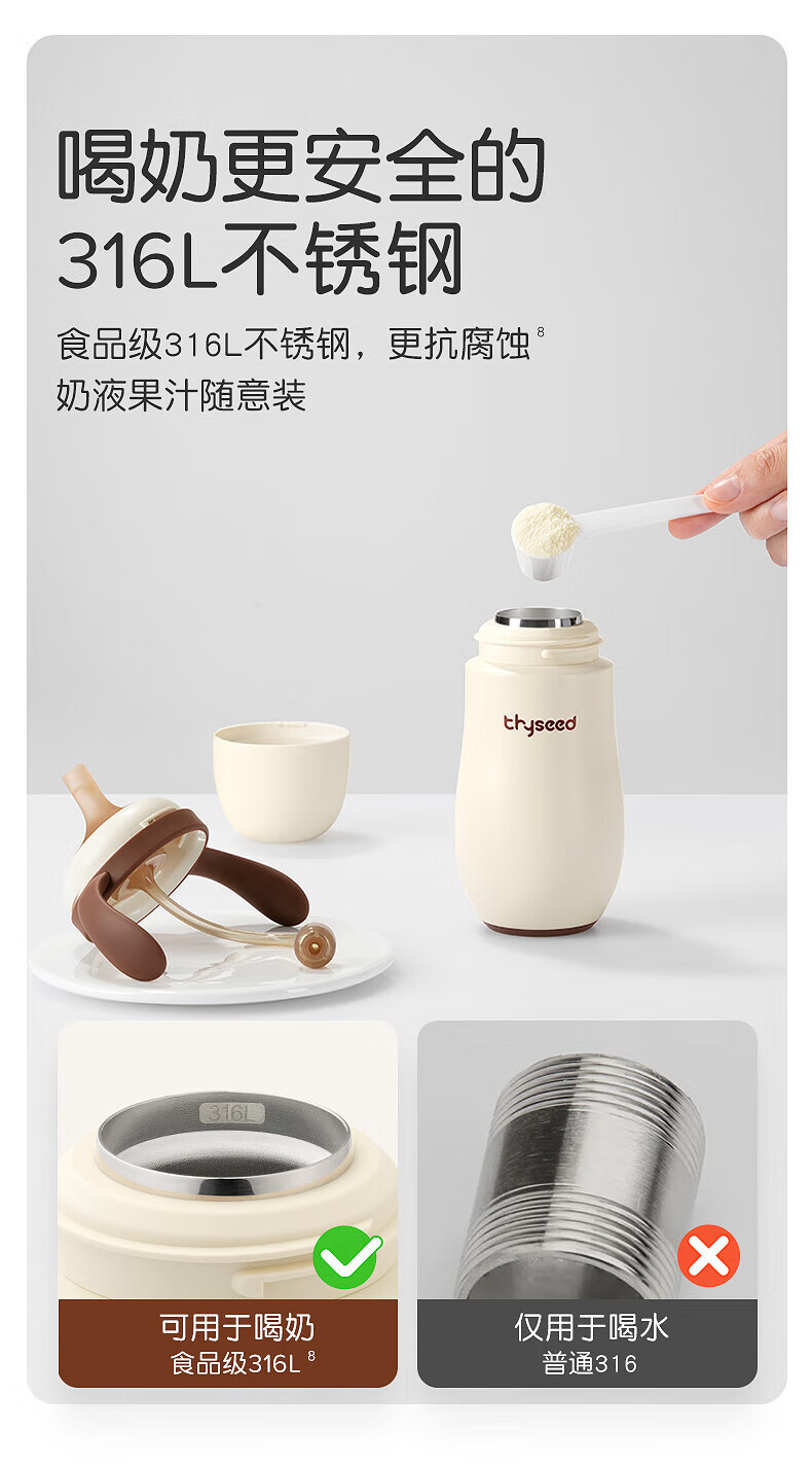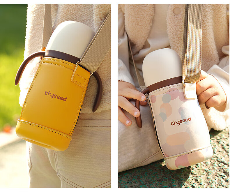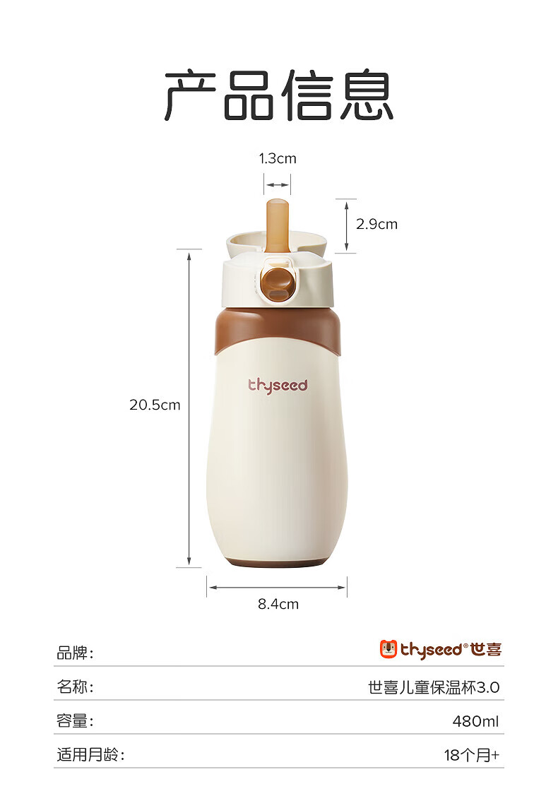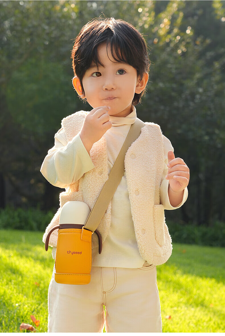 世喜婴儿小月龄保温杯奶瓶6个月以上宝宝316不锈钢食品级吸管水杯 儿童保温杯黄杯套 480ml 儿童保温