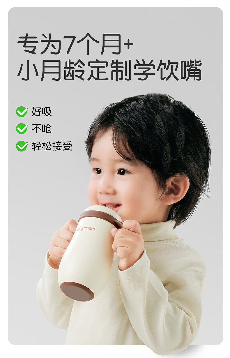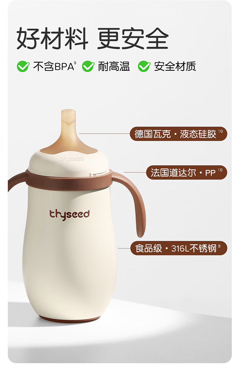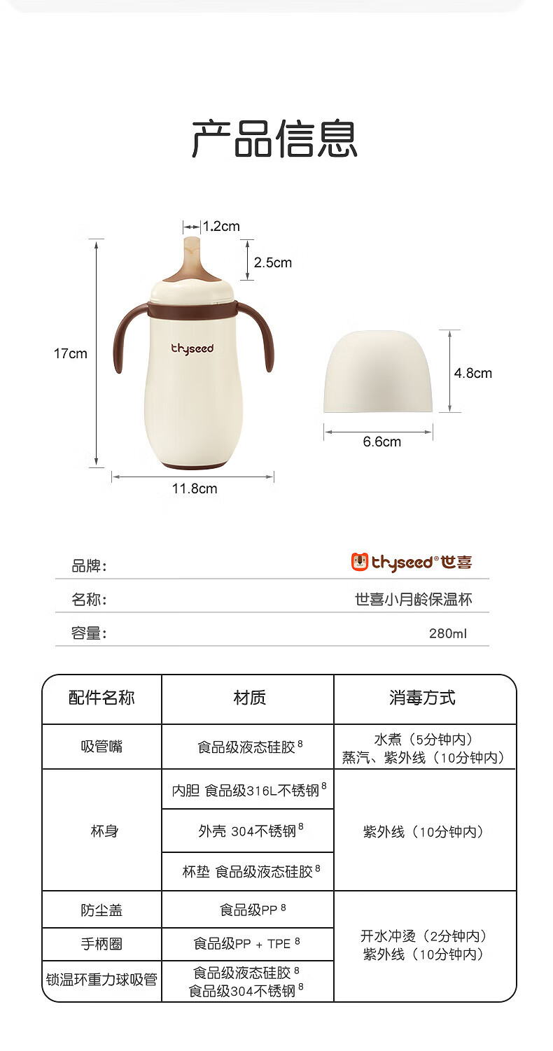 世喜婴儿小月龄保温杯奶瓶6个月以上宝宝316不锈钢食品级吸管水杯 儿童保温杯黄杯套 480ml 儿童保温