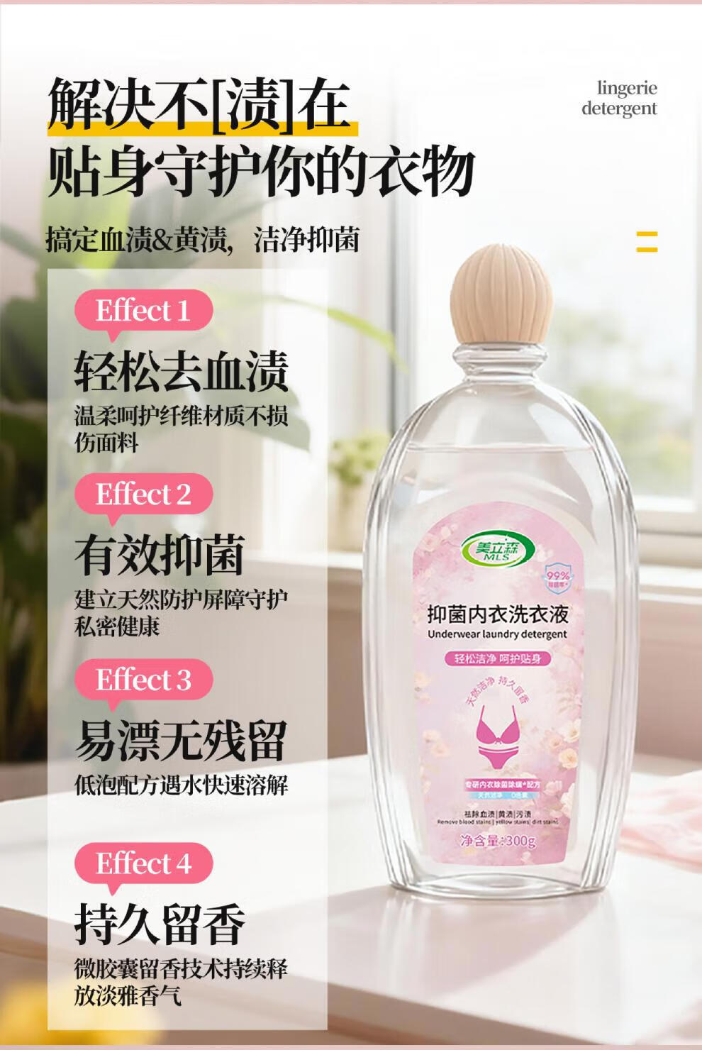 美立森内衣洗衣液去血渍专用可用内衣洗衣液 300ml内衣洗衣液