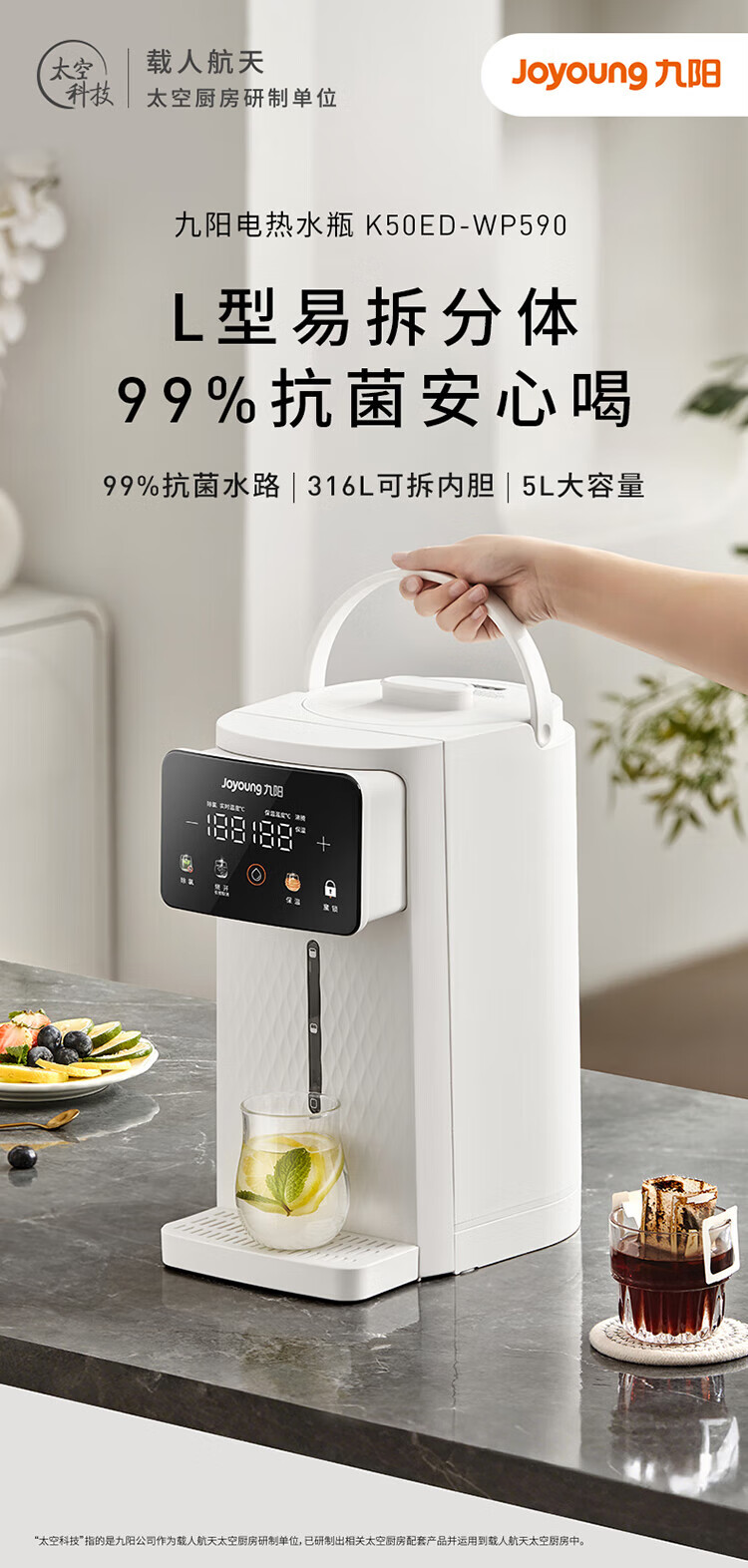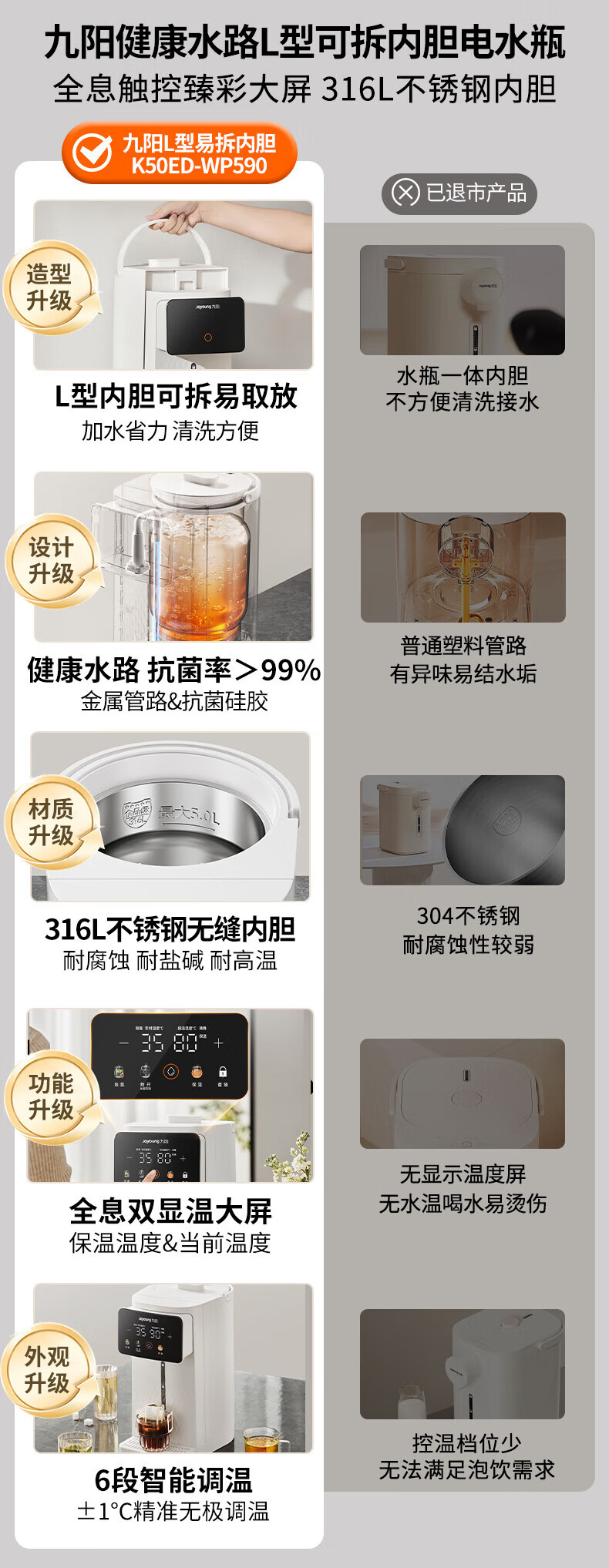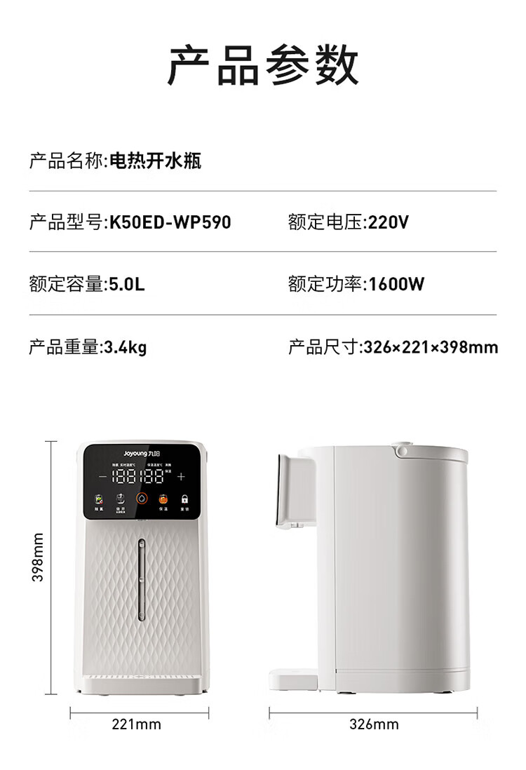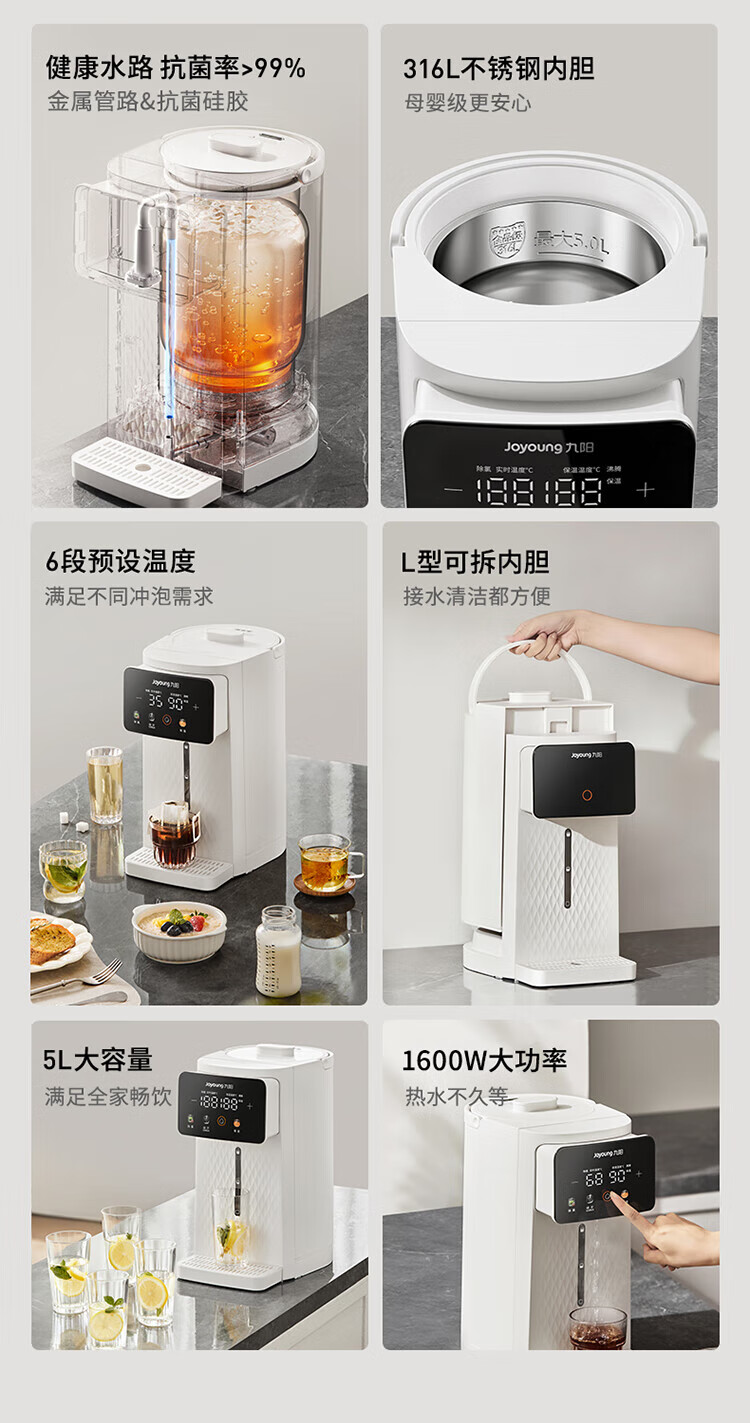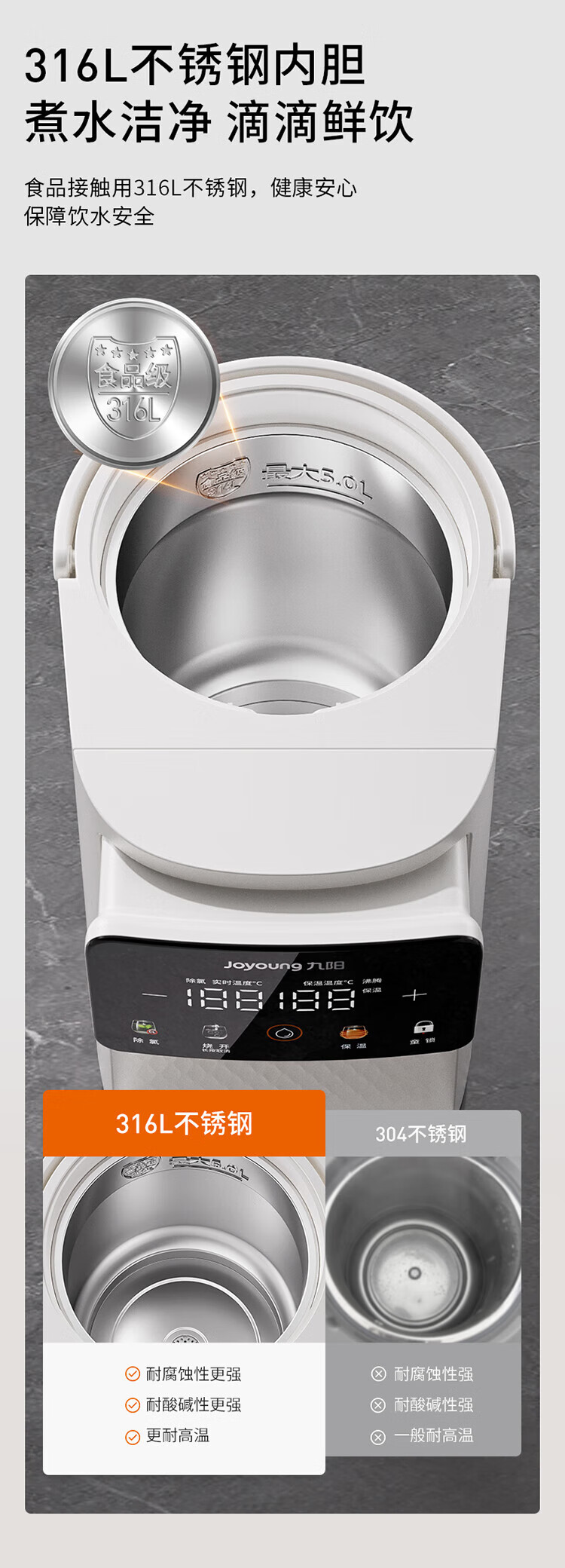 九阳(Joyoung)电热水瓶 316L不锈钢保温恒温 可拆内胆 5L大容量 6段调温恒温电水壶热水壶 5L 【316L母婴级】可拆内胆