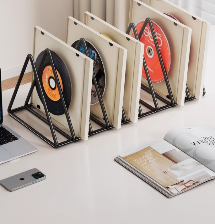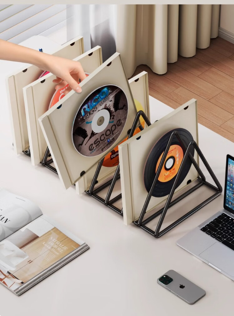 尔思家桌面收纳置物架cd展示架光碟影片架储物柜收纳盒子光盘黑胶唱片架 黑色-大号