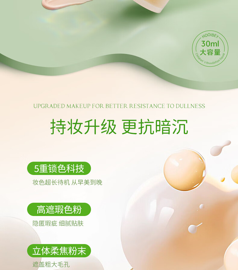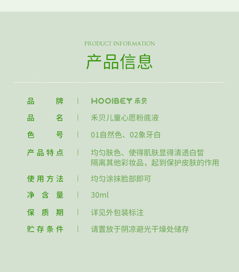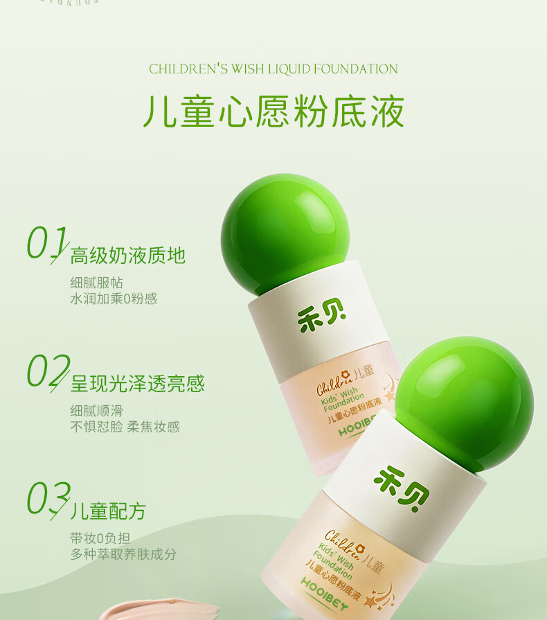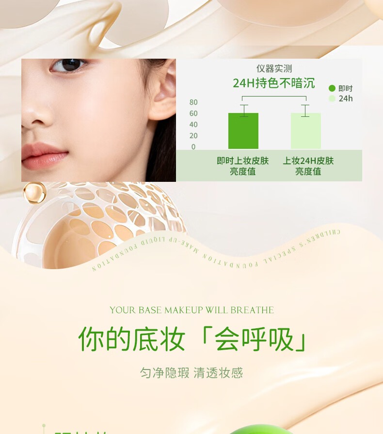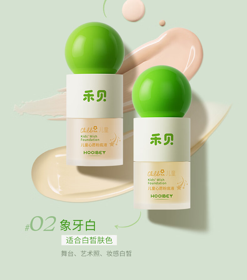 禾贝儿童化妆品粉底液水润遮瑕新年演出舞台妆表演专用彩妆象牙白30ml