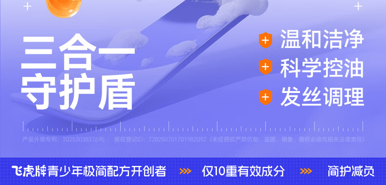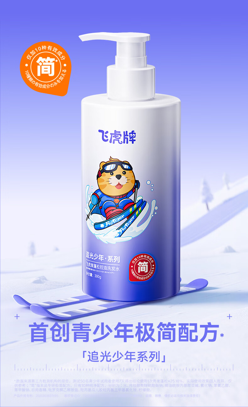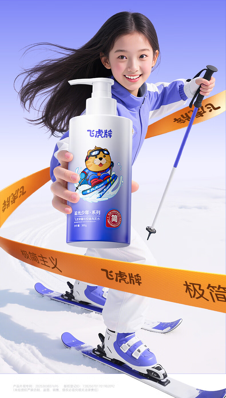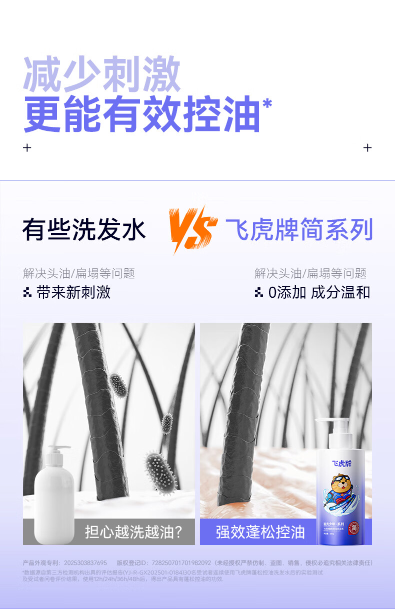 飞虎牌青少年控油蓬松洗发水青春期学生儿童追光少年极简配方洗发露*2瓶