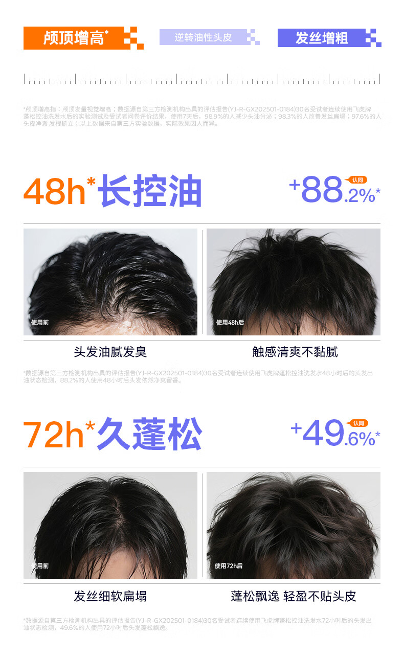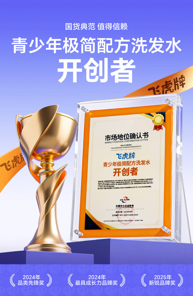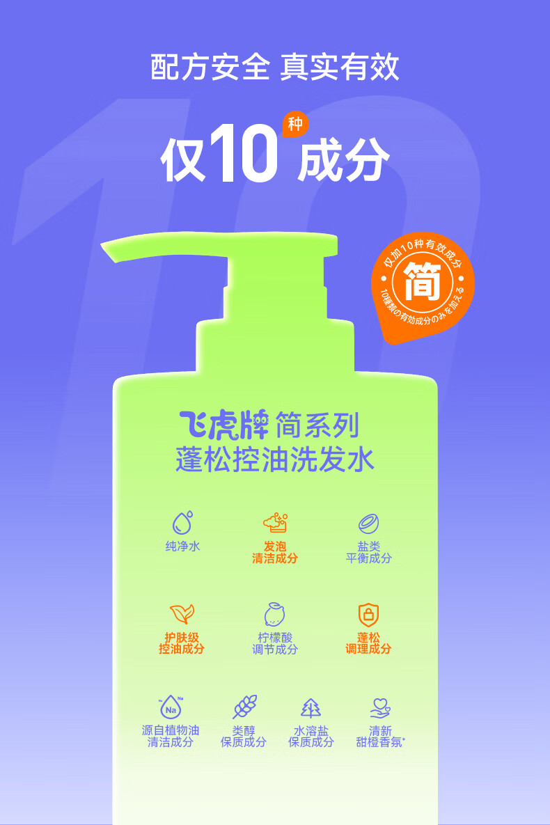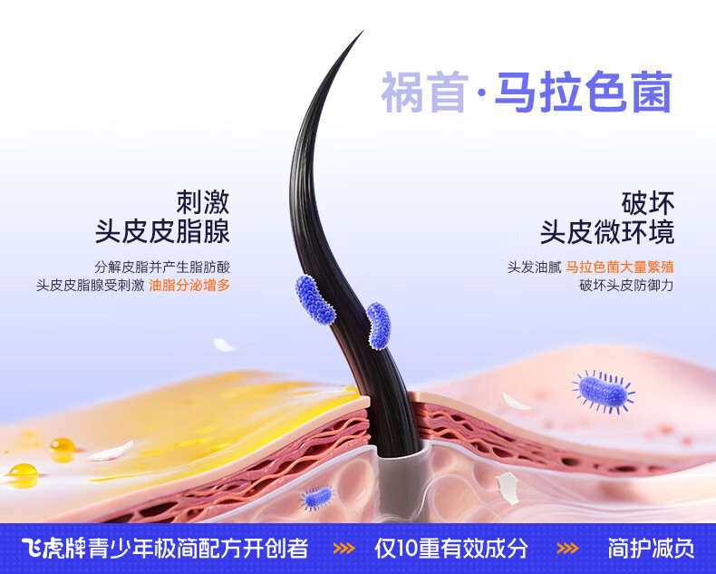 飞虎牌青少年控油蓬松洗发水青春期学生儿童追光少年极简配方洗发露*2瓶