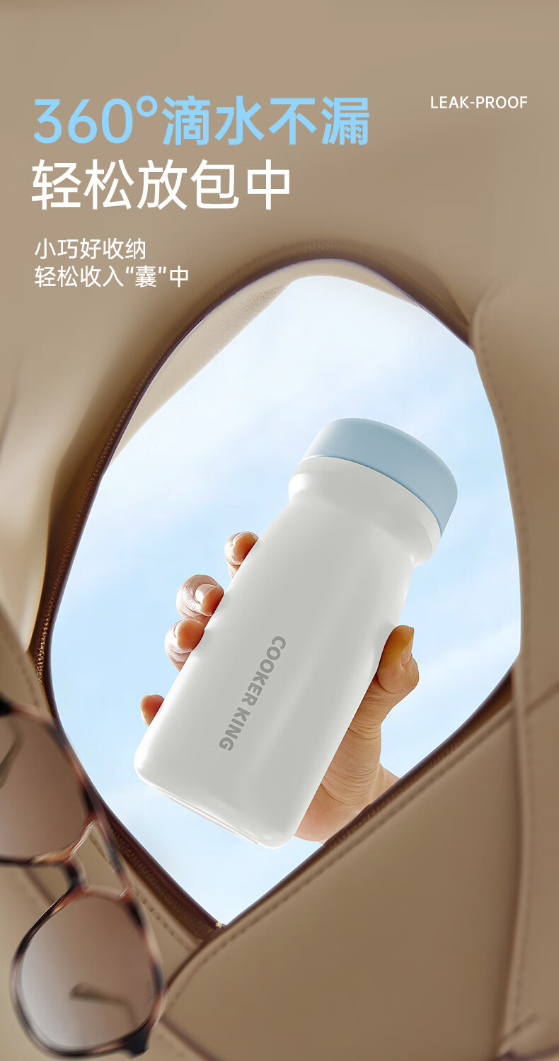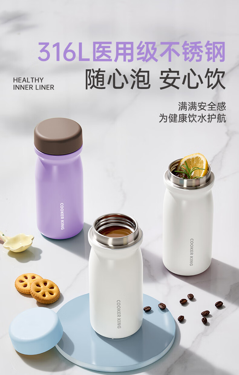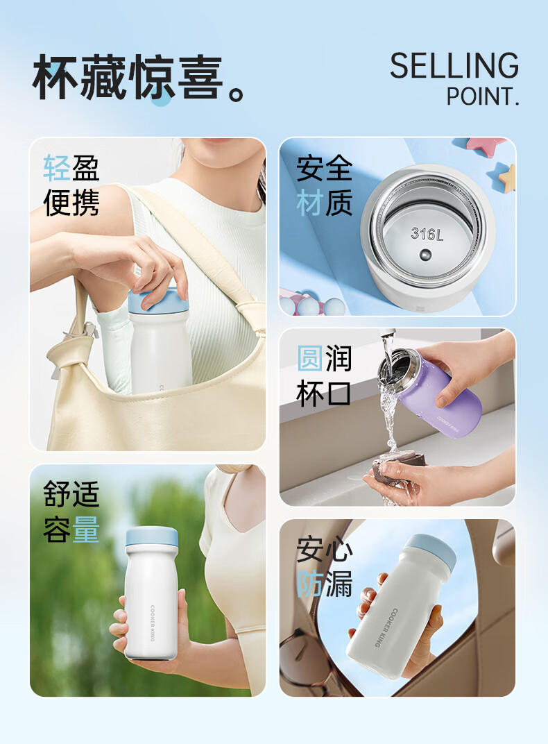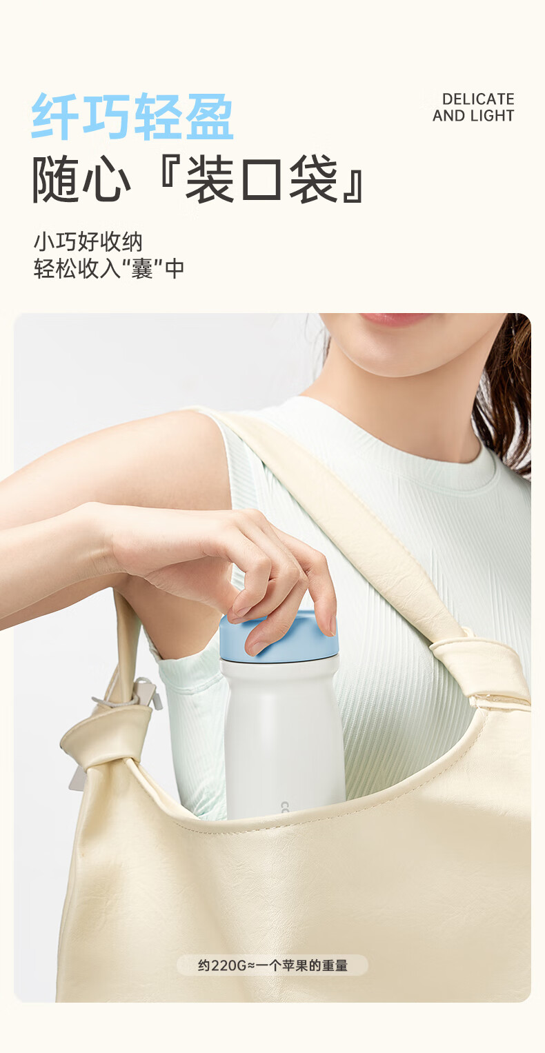 炊大皇316L不锈钢保温杯便携口袋杯子保冷小巧超轻外出350ml(奶蓝色)