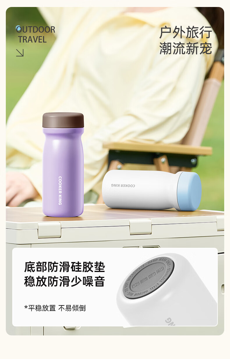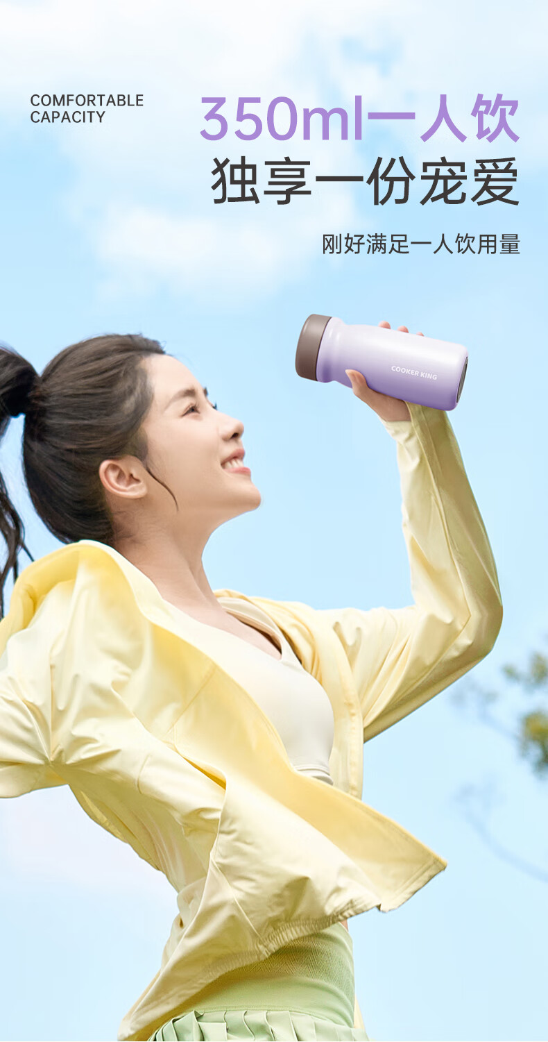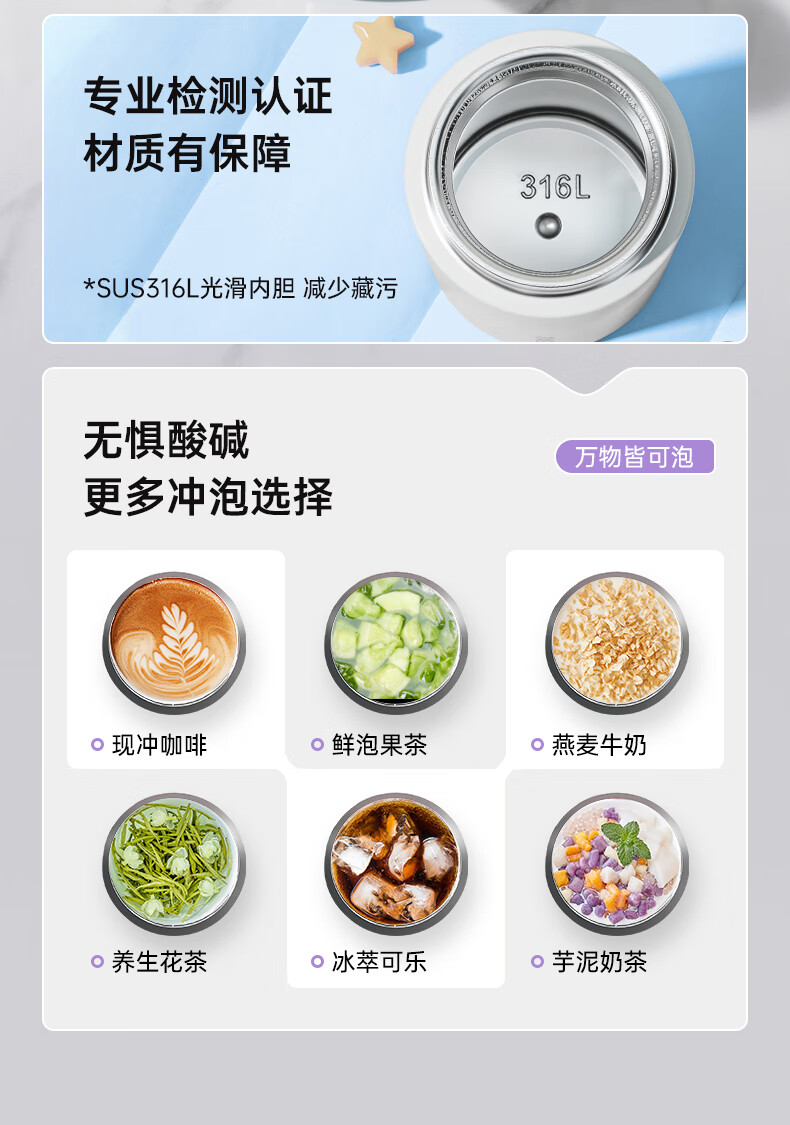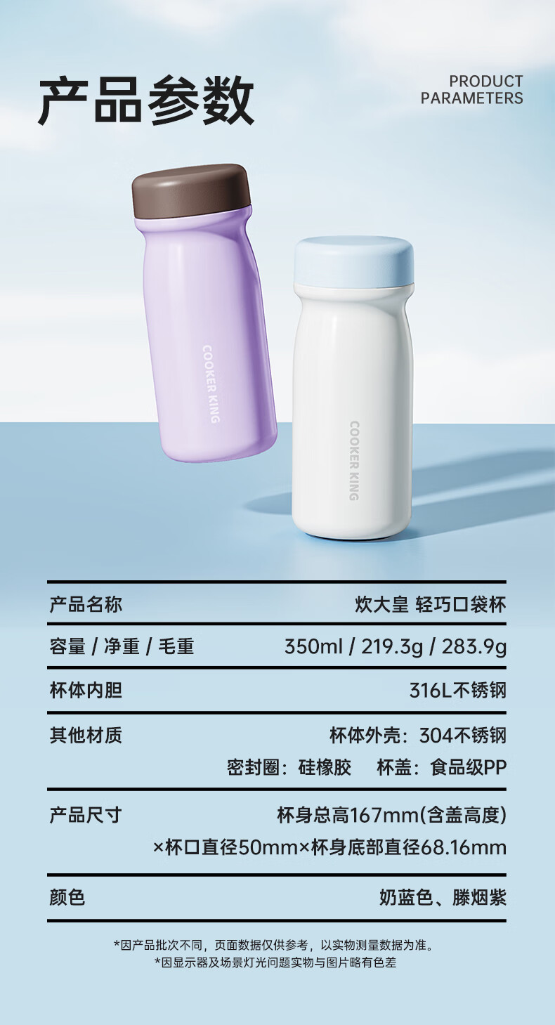 炊大皇316L不锈钢保温杯便携口袋杯子保冷小巧超轻外出350ml(奶蓝色)
