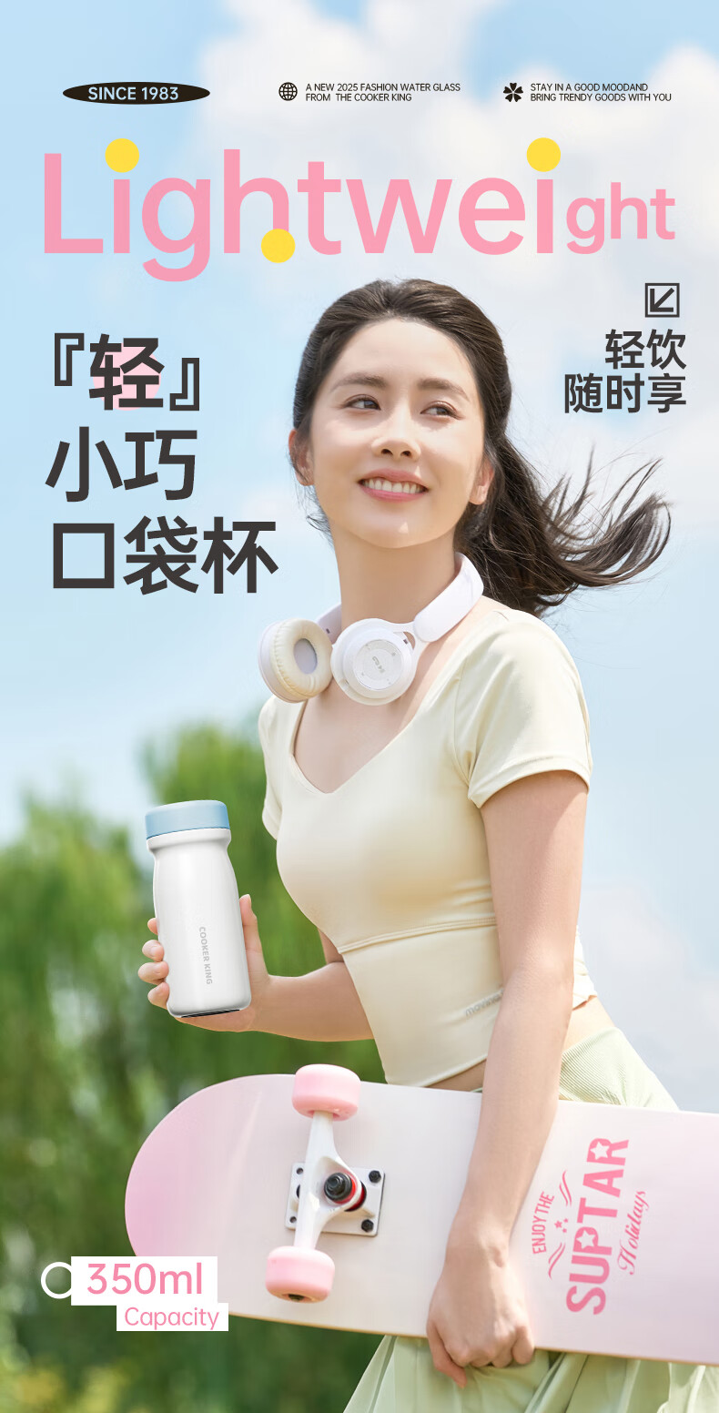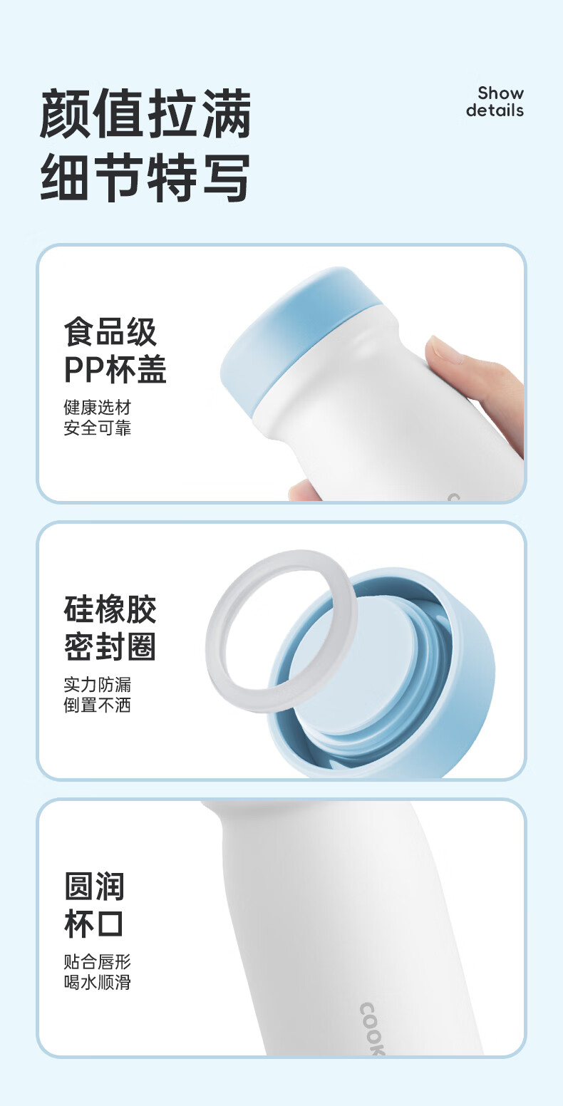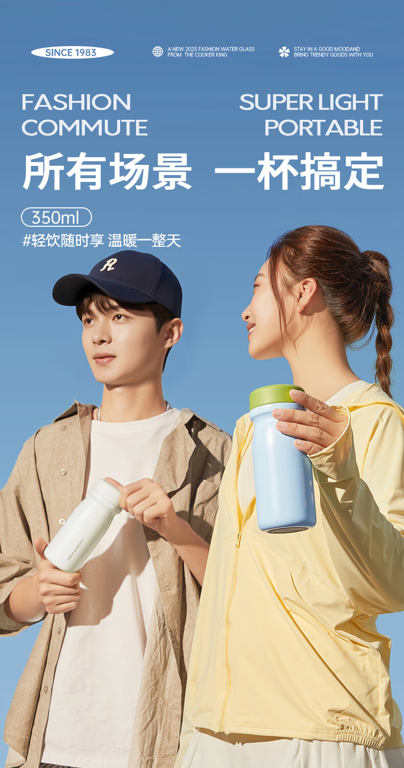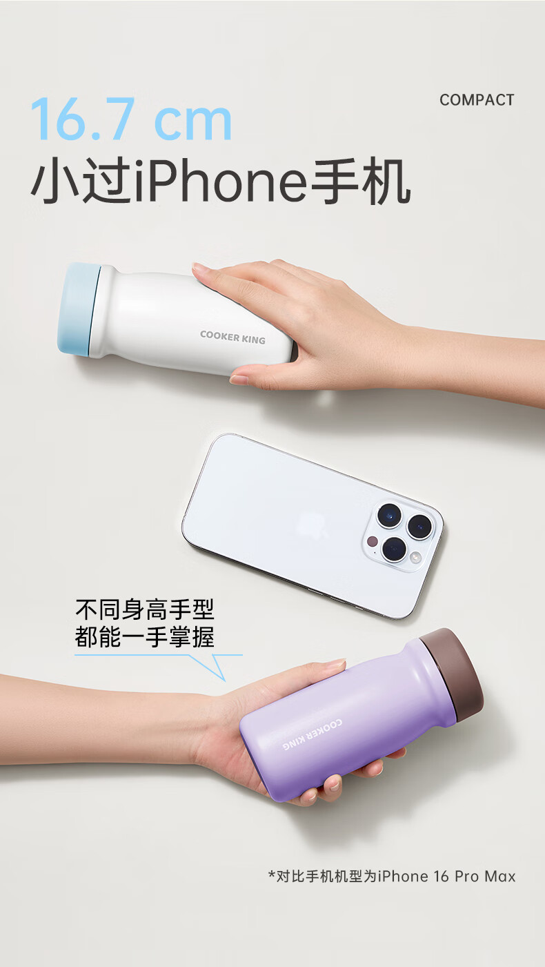 炊大皇316L不锈钢保温杯便携口袋杯子保冷小巧超轻外出350ml(奶蓝色)