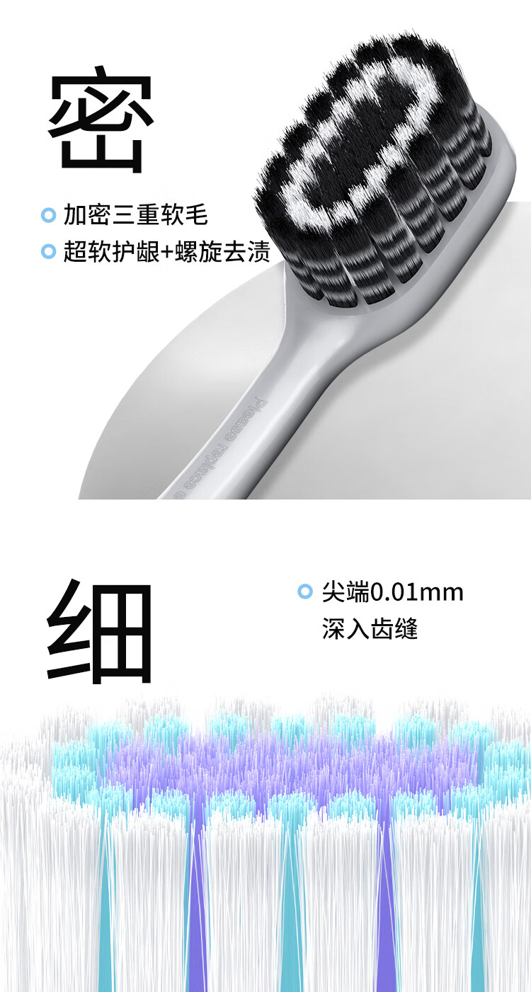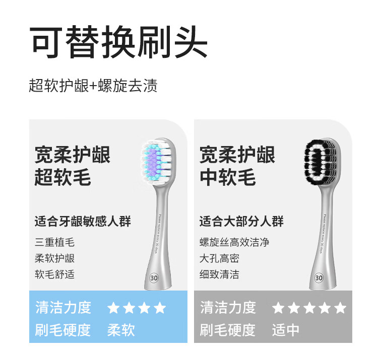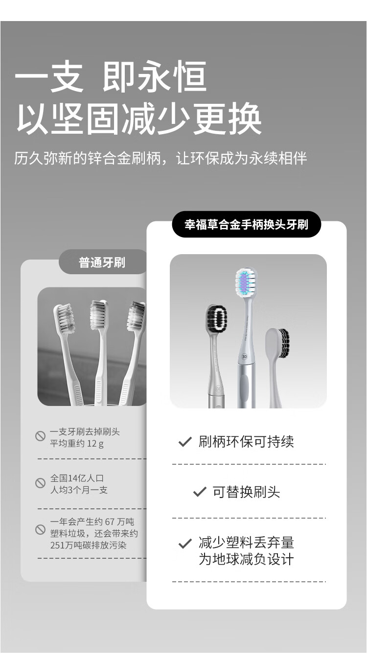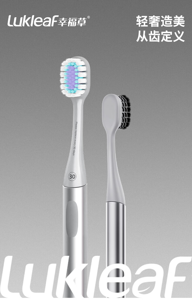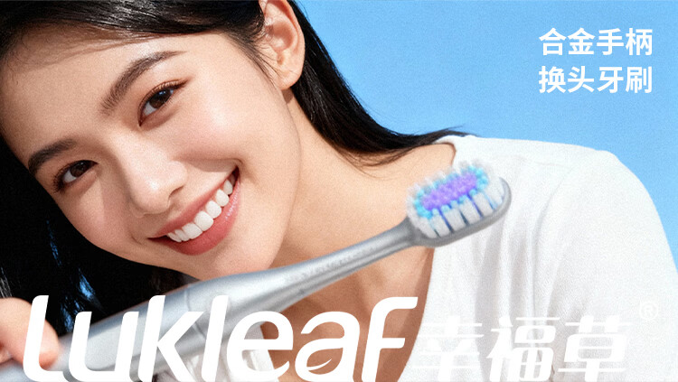 幸福草(Lukleaf)合金手柄换头牙刷刷头 柔护型(寒武雅灰)白色3支装