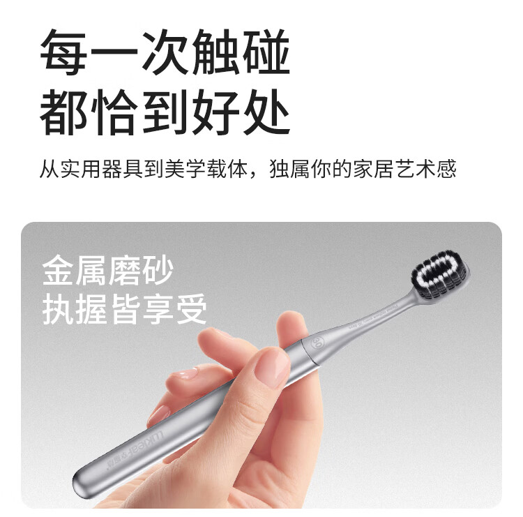 幸福草(Lukleaf) 合金手柄换头手动牙刷 磁吸悬挂底座(寒武雅灰)半年装含6个刷头