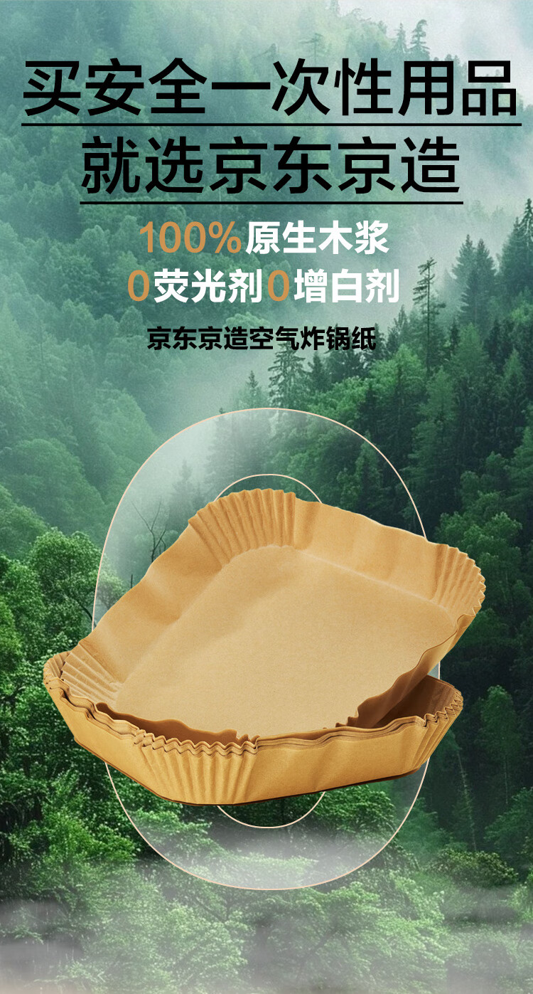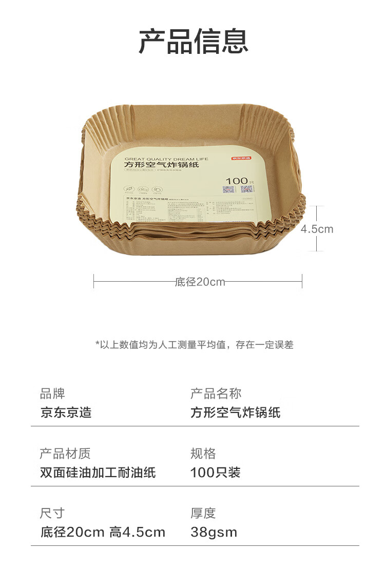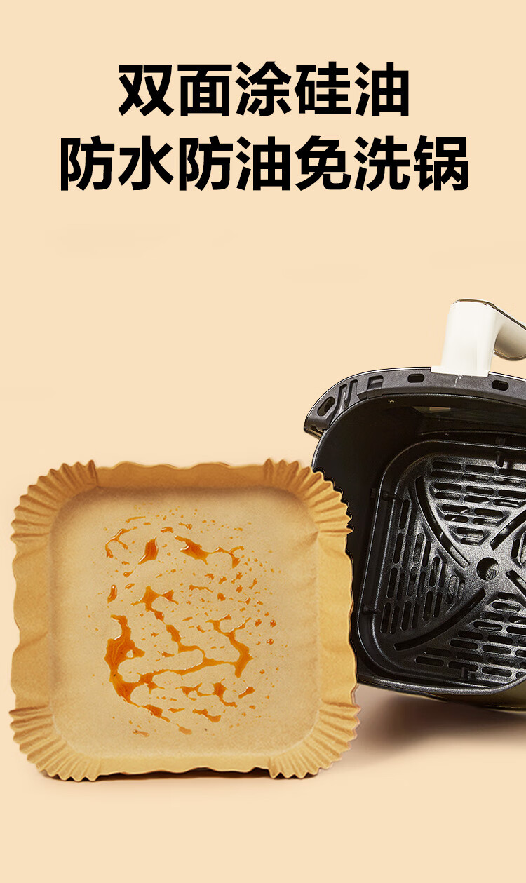 京东京造 空气炸锅专用纸 方形烤箱垫纸硅油纸 适用5L以上炸锅【100只】