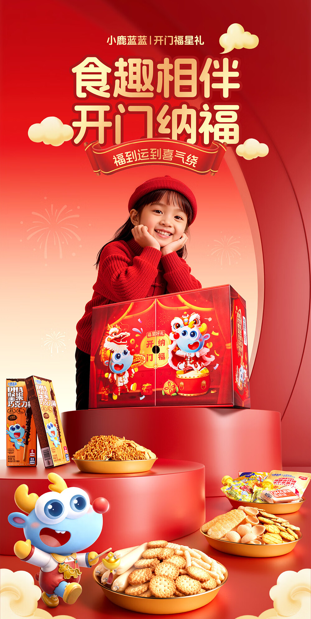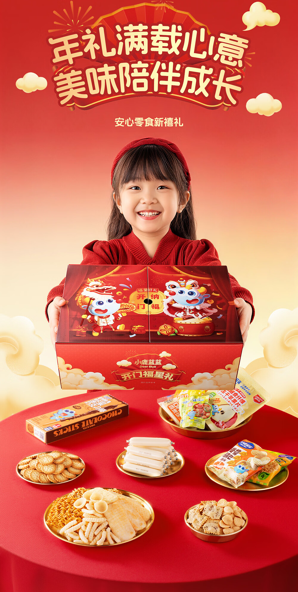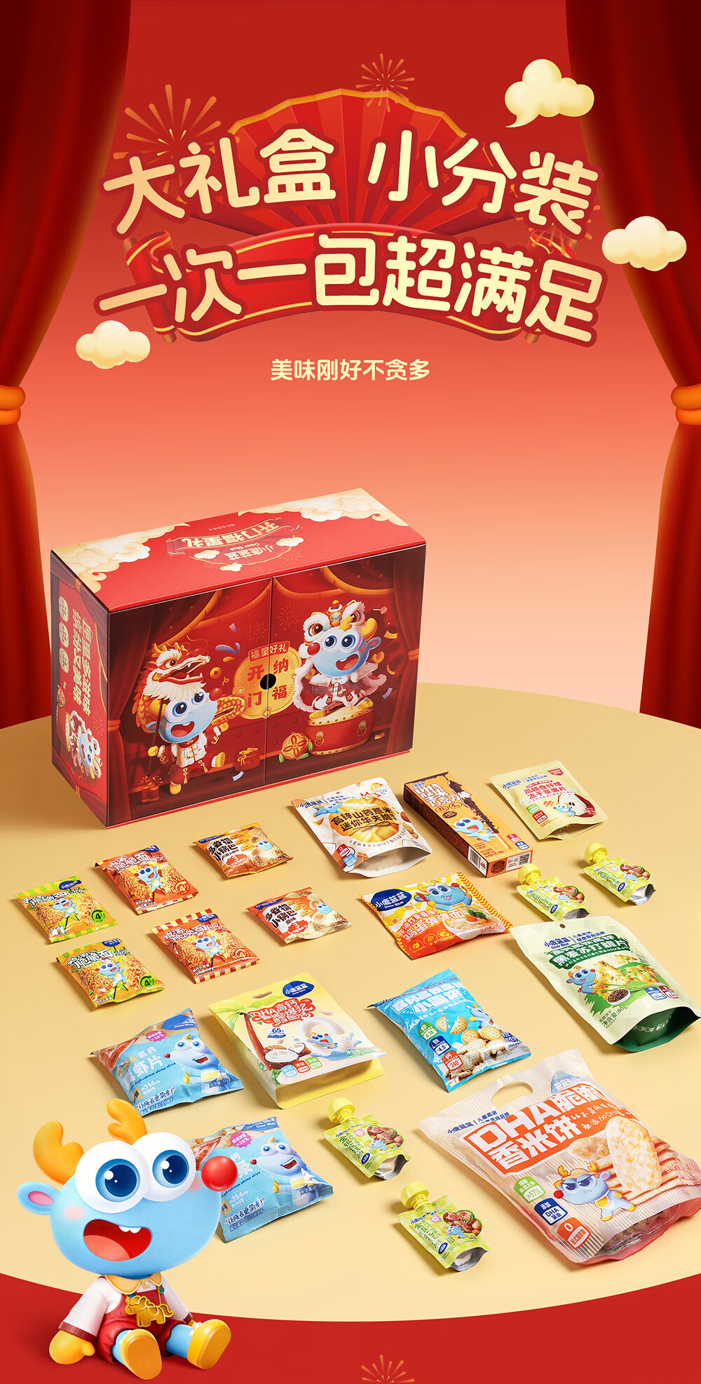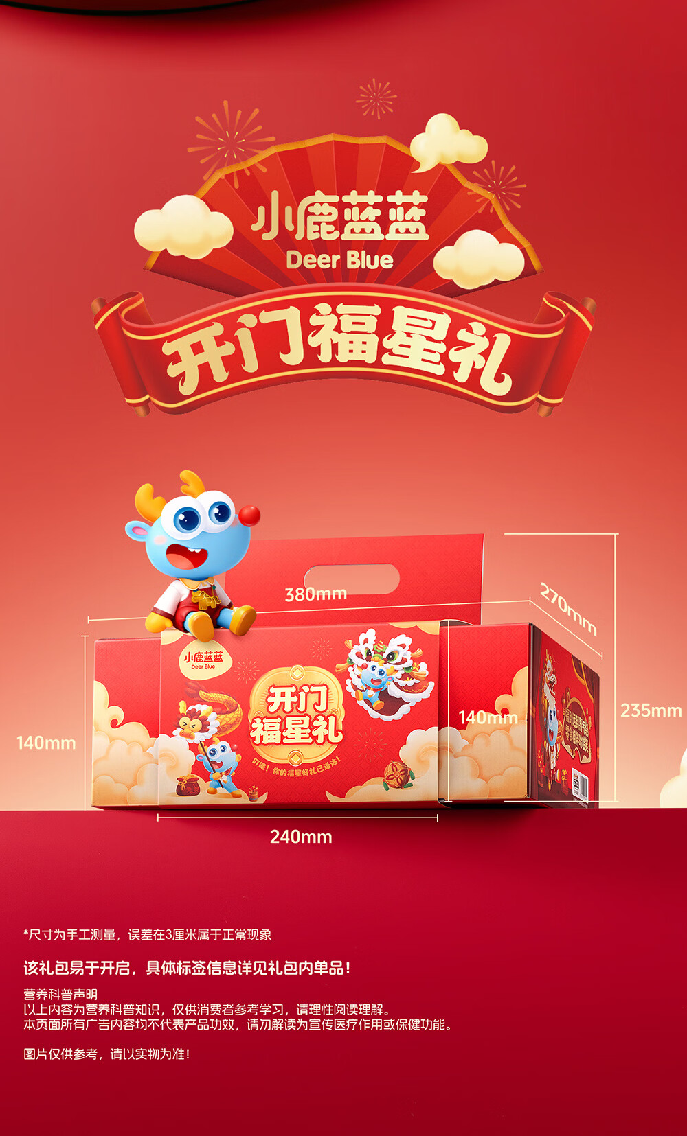 小鹿蓝蓝宝宝儿童零食礼盒新年开门纳福-福星好礼1046g新年送礼必备