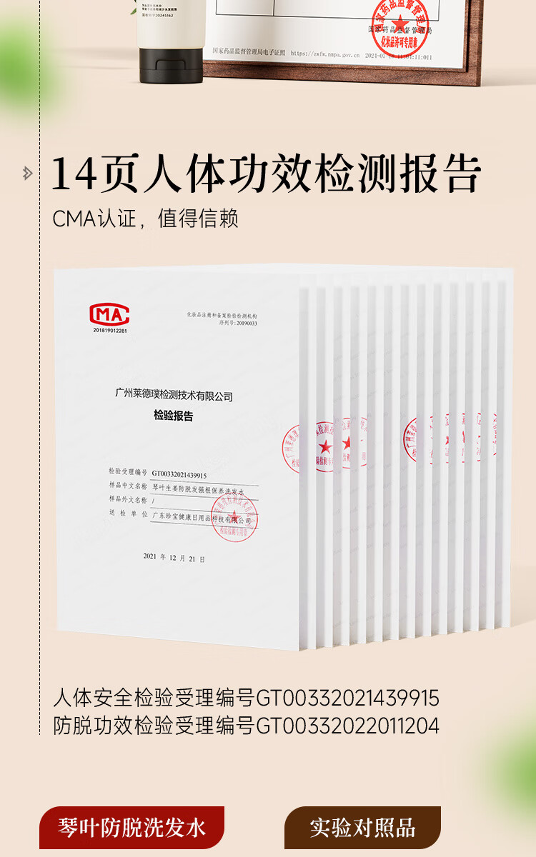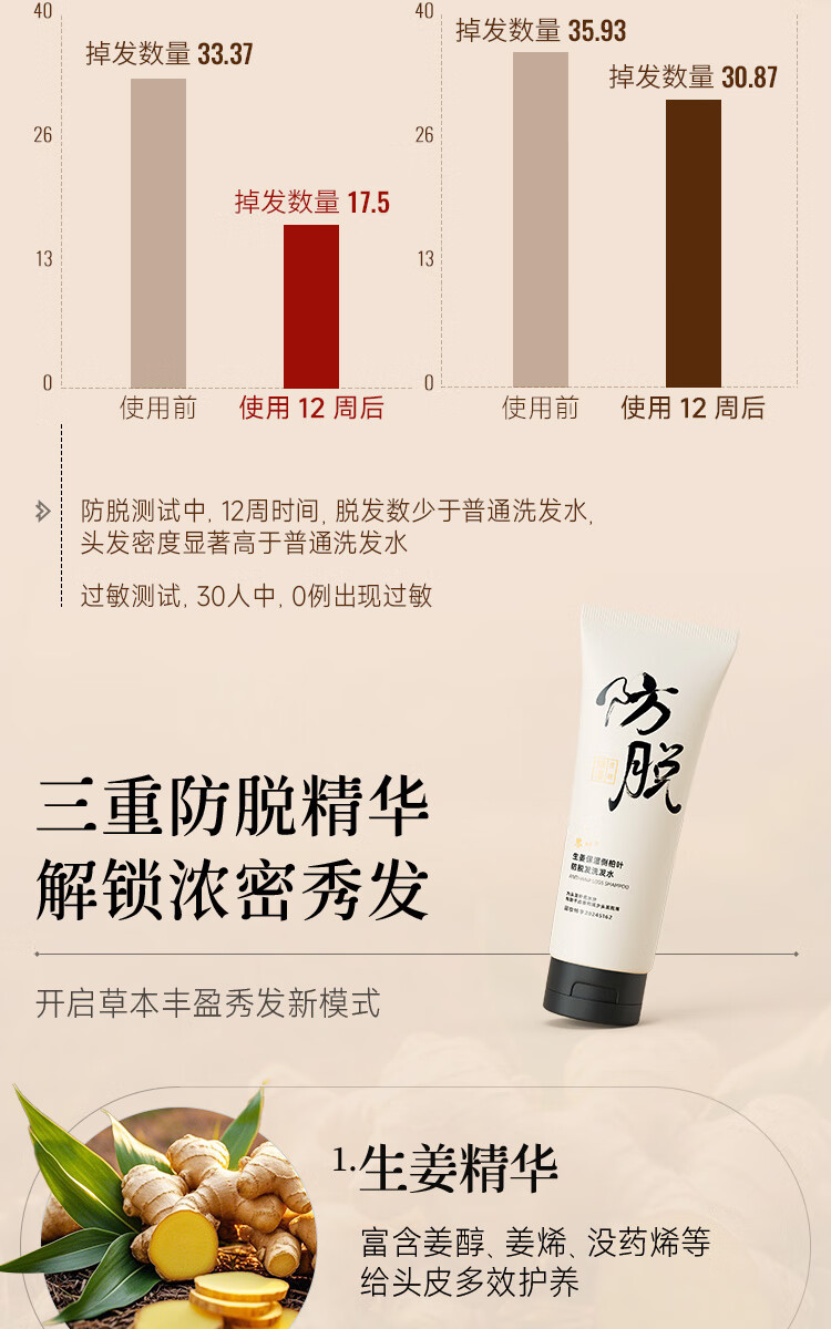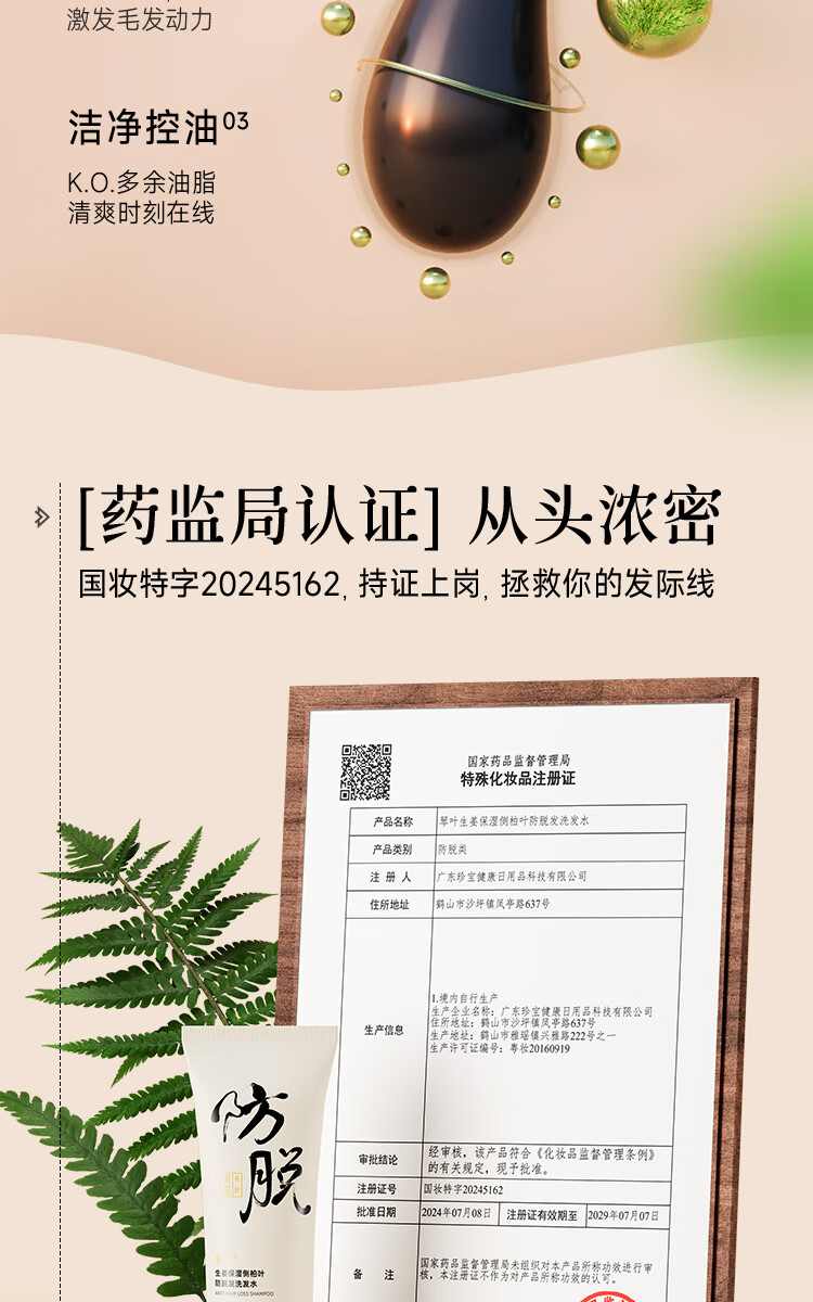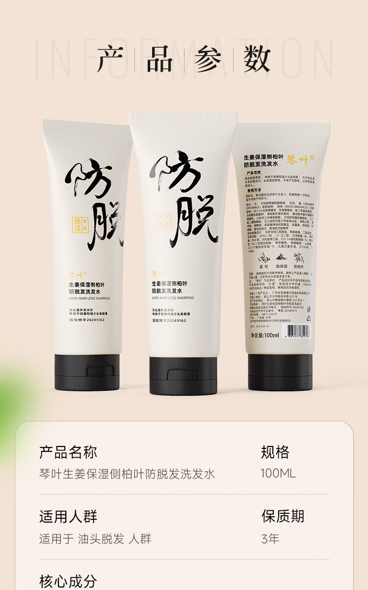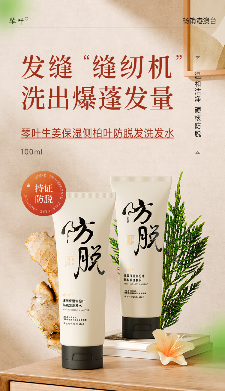 琴叶生姜侧柏叶防脱洗发水100ml男女士柔顺保湿洗头膏洗发露新年礼物